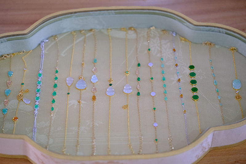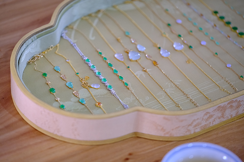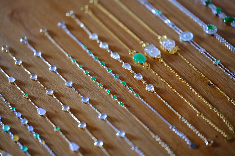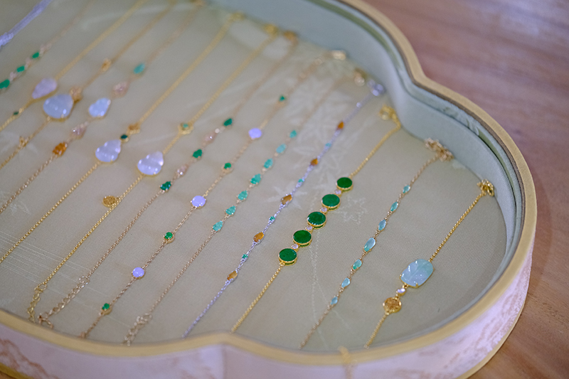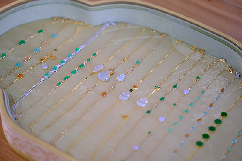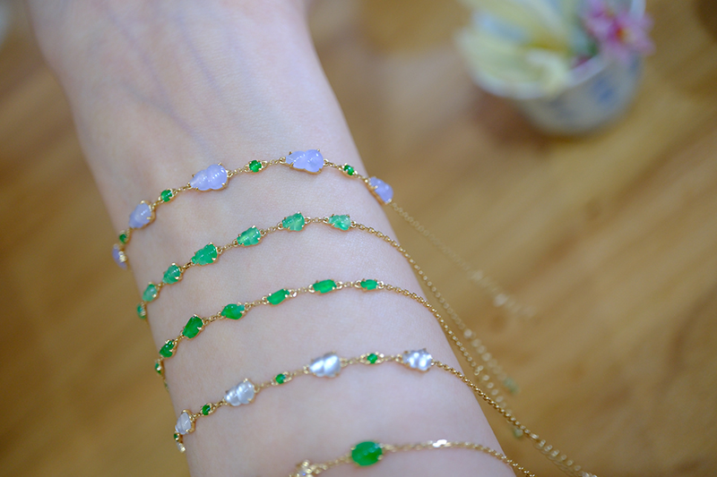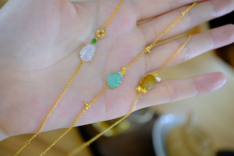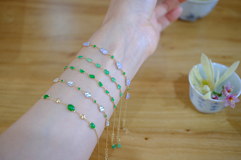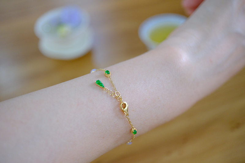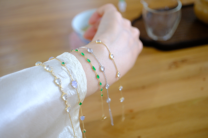 Fulu 18K Gold Inlaid with Burmese Jade Gourd, Ruyi, Ice White, Sun Green, Fairy Purple, Mountain House Bracelet