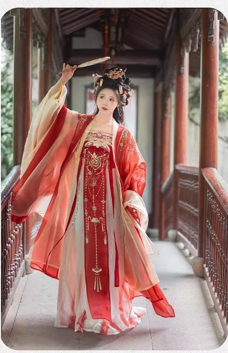 【Xiao Zhongshan】Heavy Embroidery Large-Sleeve Shirt and Chest-Length Skirt, Original Tang-Style Hanfu Women's Hezi Skirt, Super Fairy-Like Ancient Costume