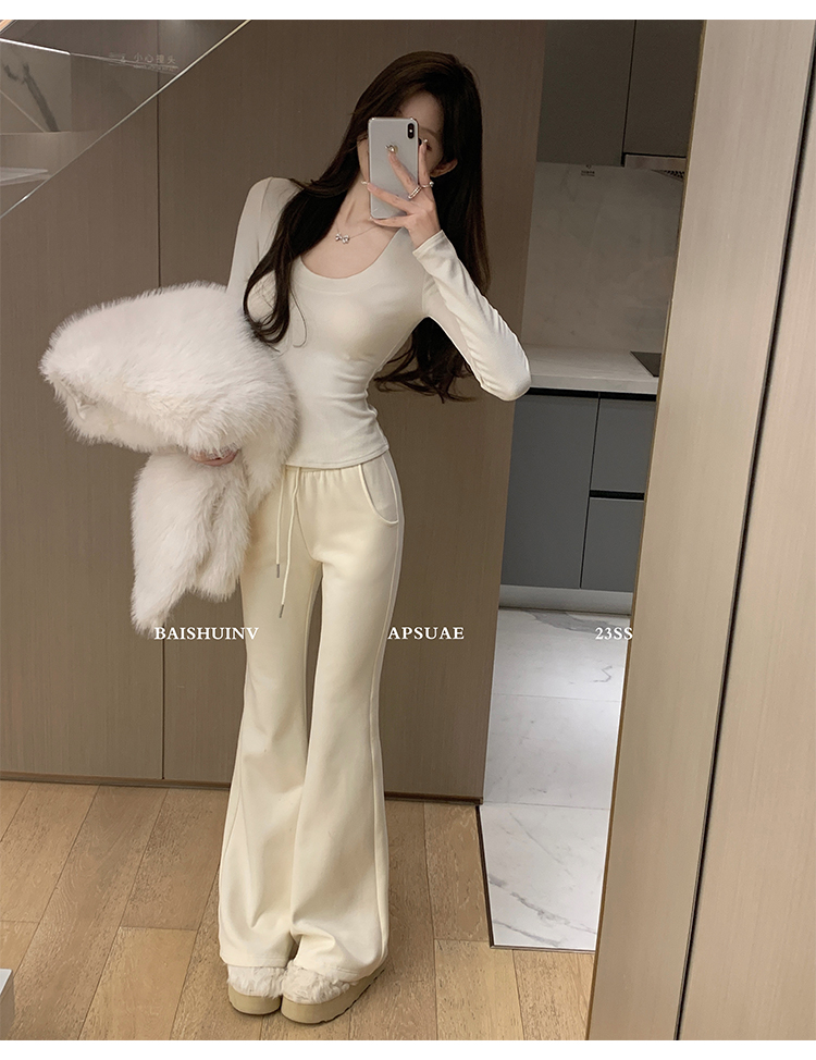 White Water Girl【Bi入!!】 !Slimming Magic Pants 2.0】Flared Casual Pants for Women, Autumn and Winter, Thickened and Warm, White Pants