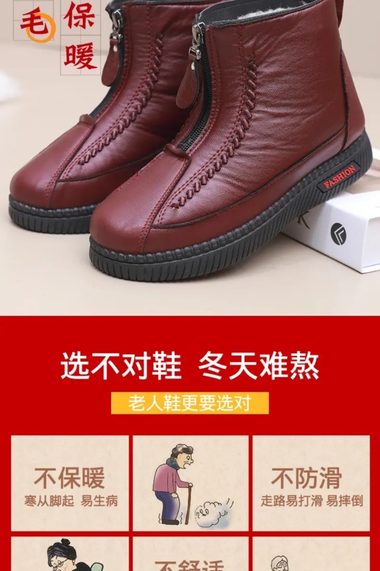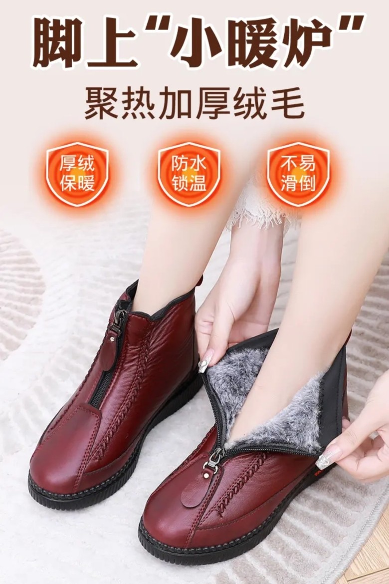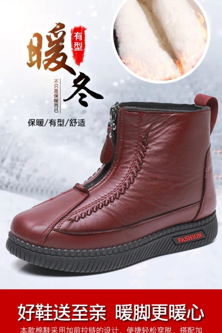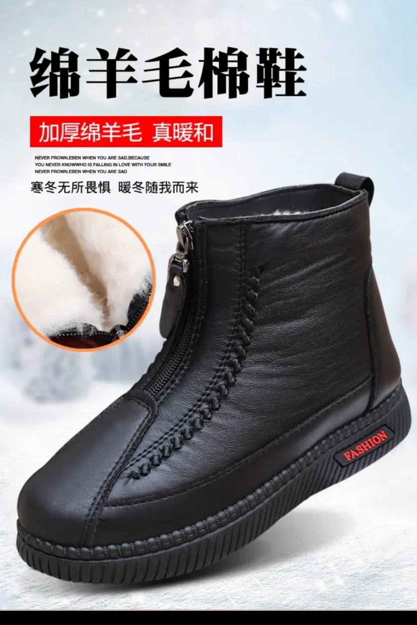 Sheep Wool Mother's Cotton Shoes, Old Beijing Style, New Autumn and Winter Models for Middle-Aged and Elderly, Fleece-Lined, Thick-Soled, Non-Slip, Rabbit Fur, Waterproof Snow Boots