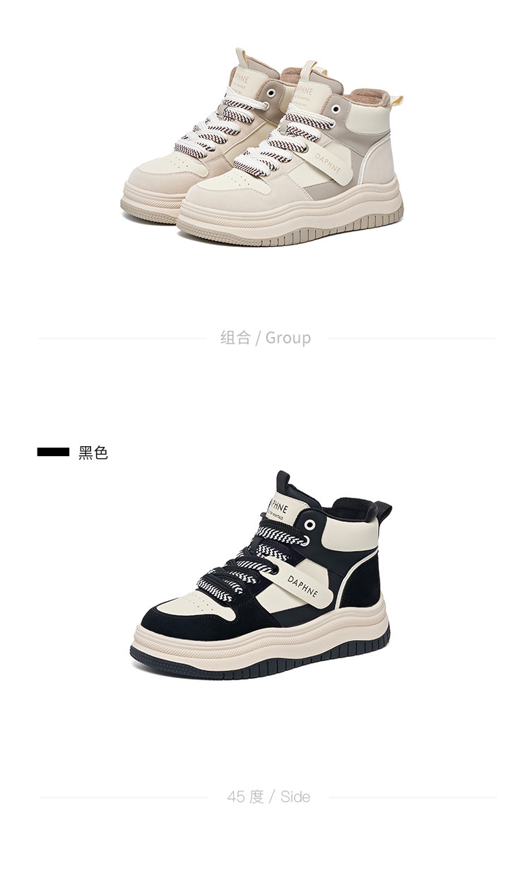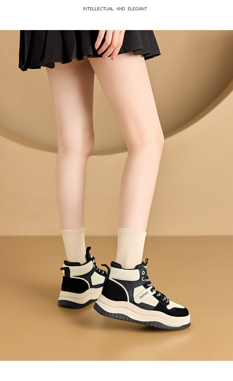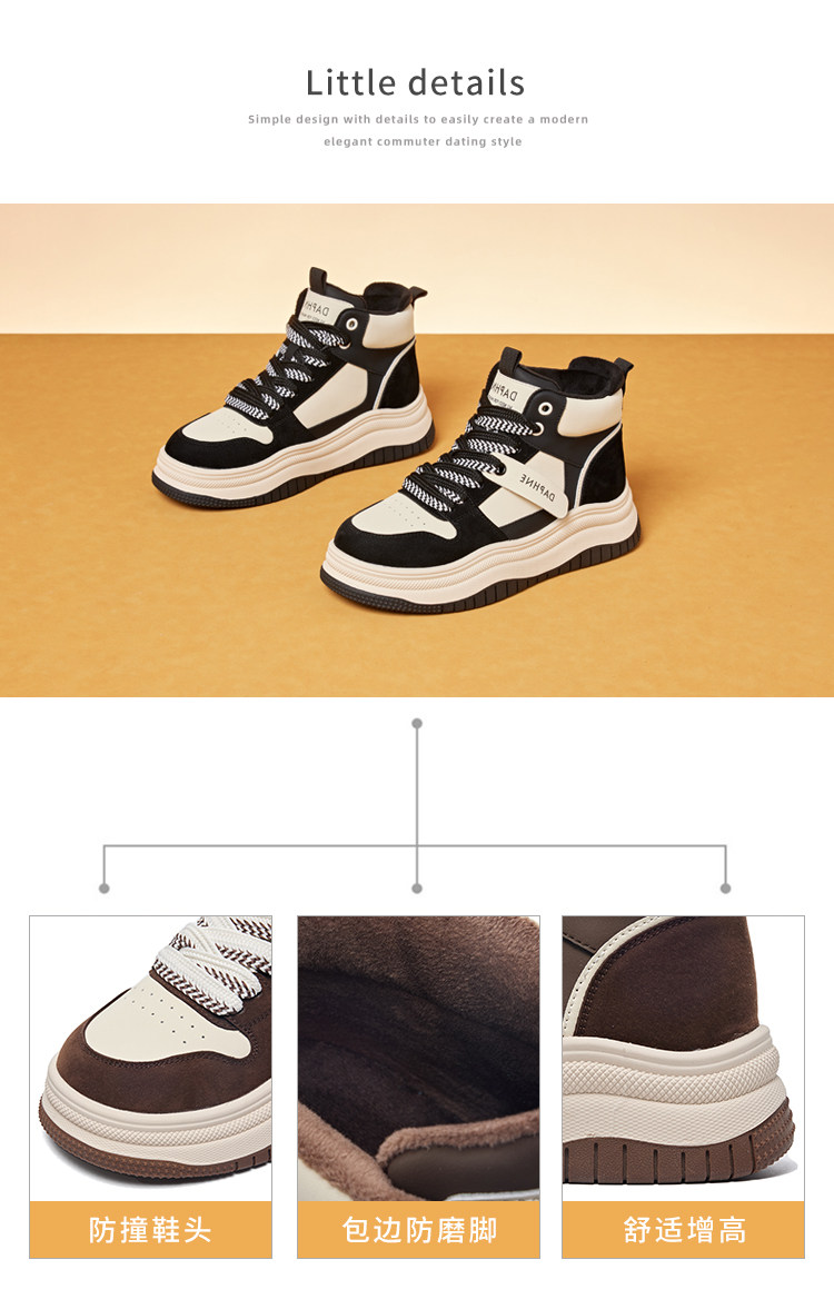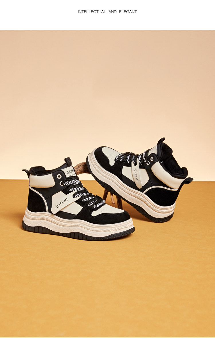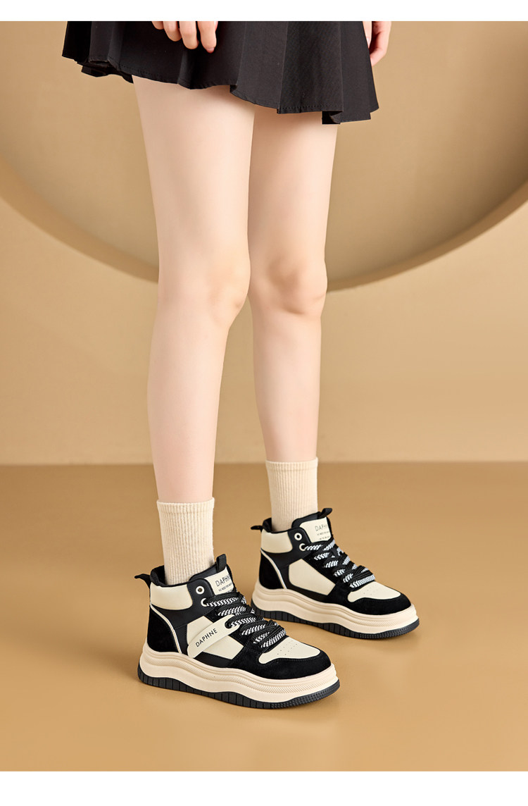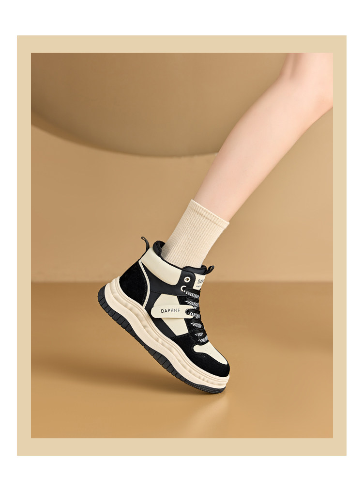 Daphne Thick-Soled High-Top Women's Cotton Shoes New Style Women's Shoes Winter Fleece-Lined Black and White Panda Casual Sports Sneakers