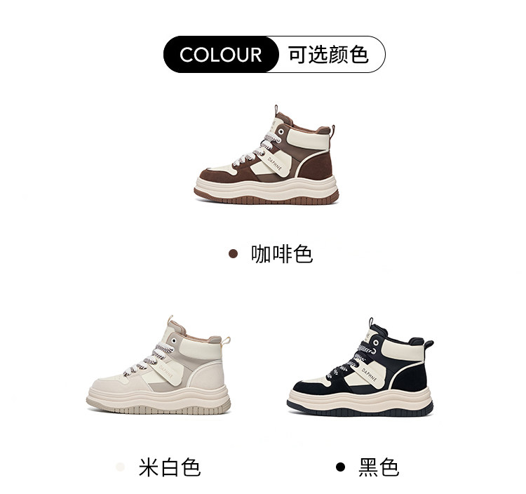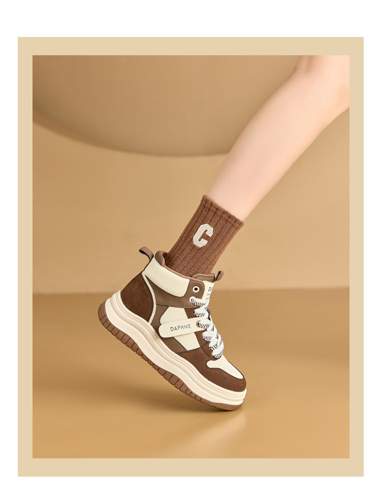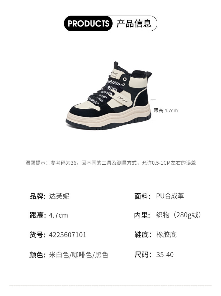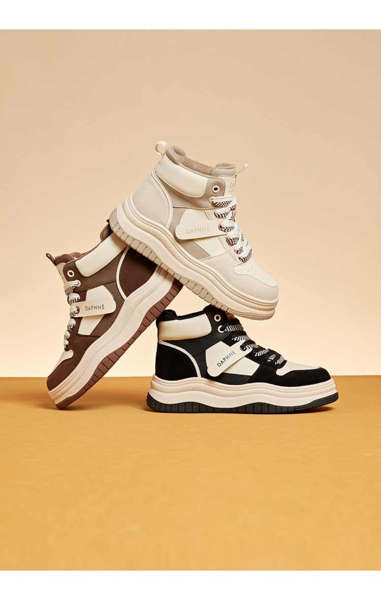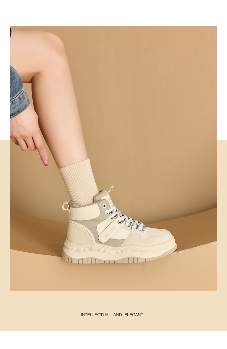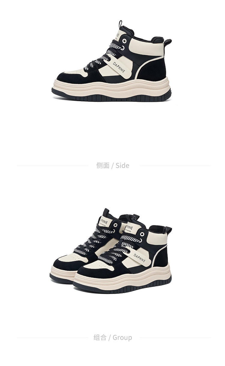 Daphne Thick-Soled High-Top Women's Cotton Shoes New Style Women's Shoes Winter Fleece-Lined Black and White Panda Casual Sports Sneakers