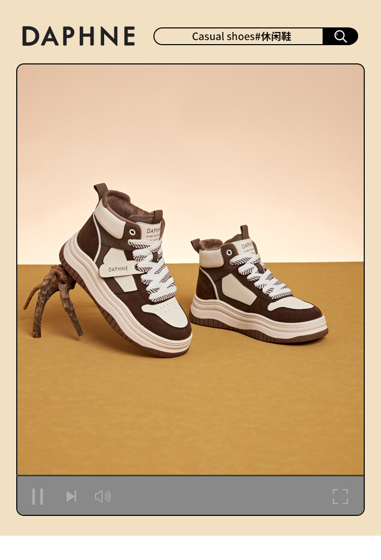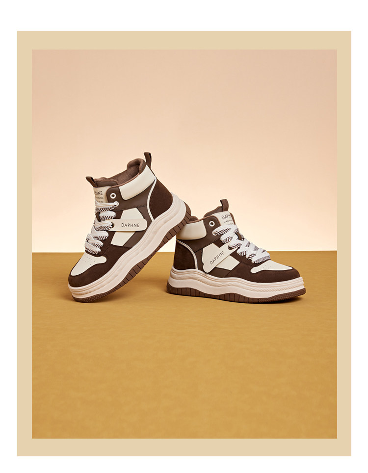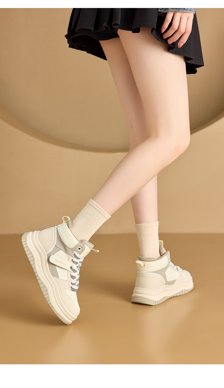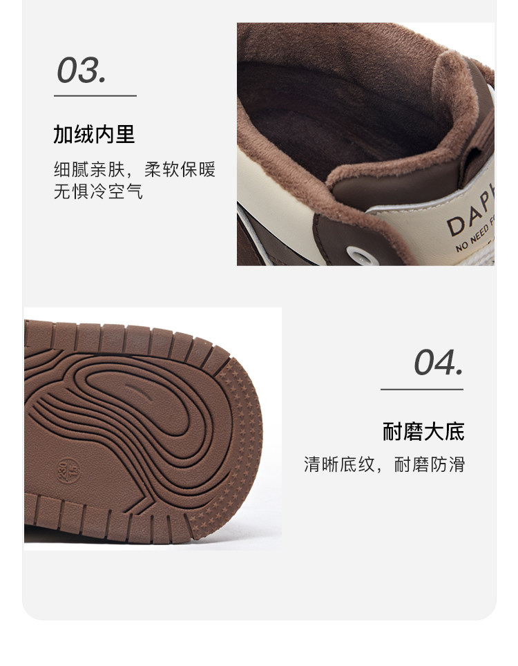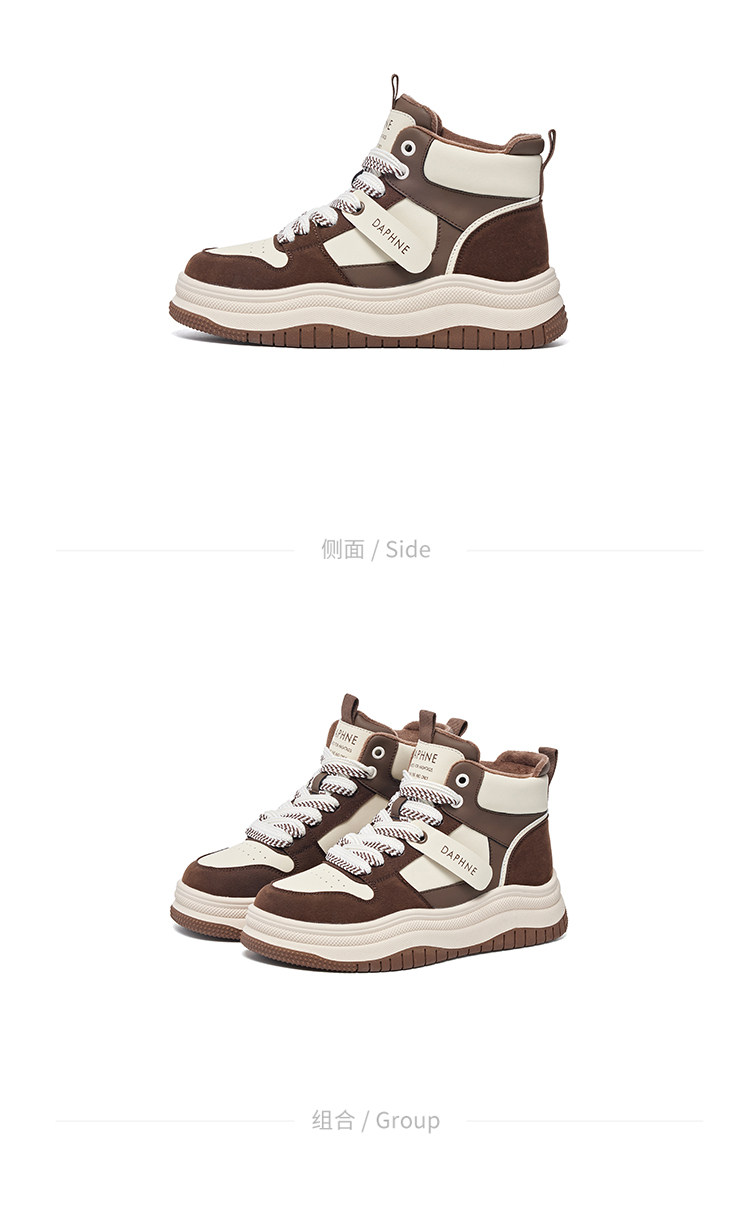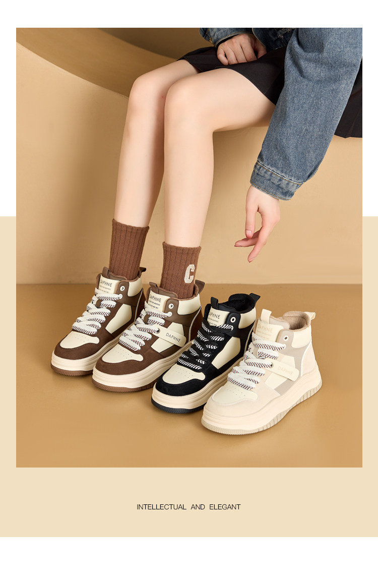 Daphne Thick-Soled High-Top Women's Cotton Shoes New Style Women's Shoes Winter Fleece-Lined Black and White Panda Casual Sports Sneakers