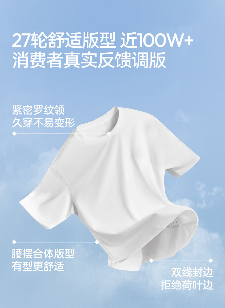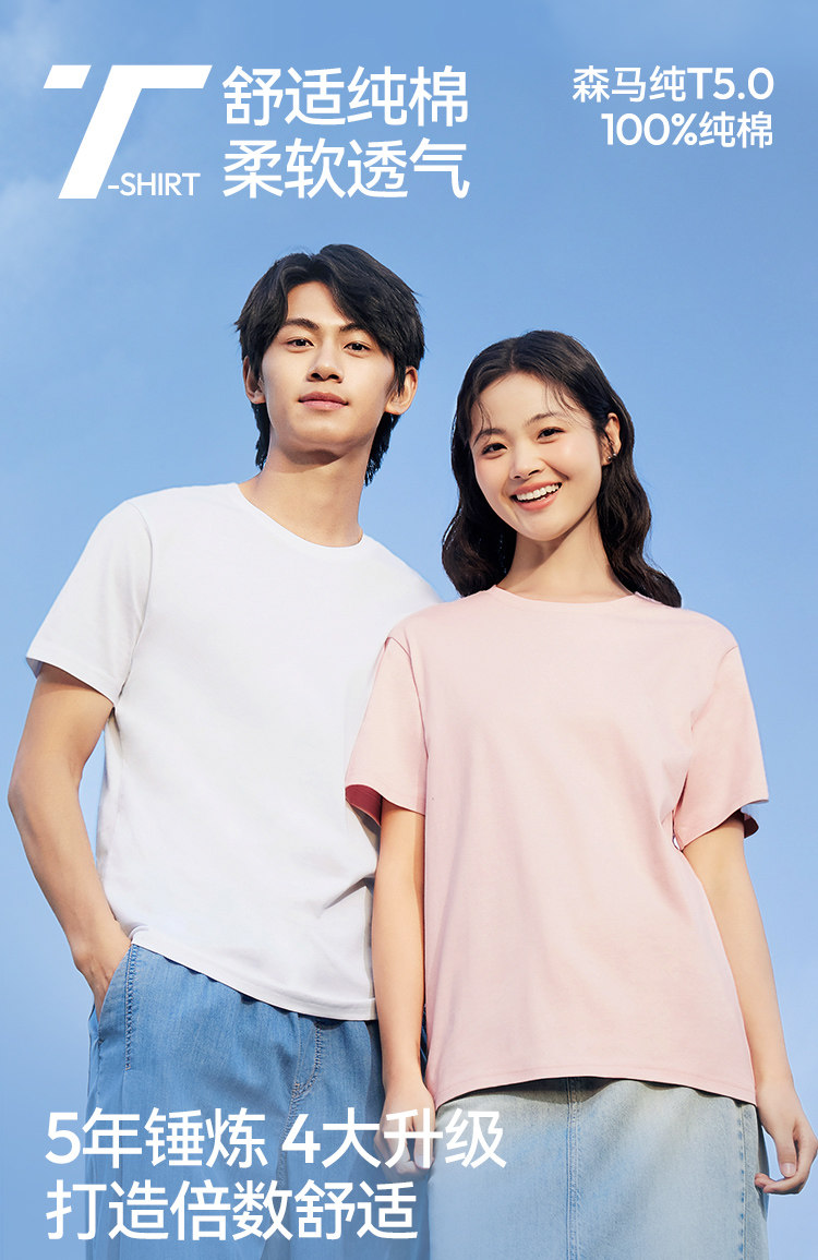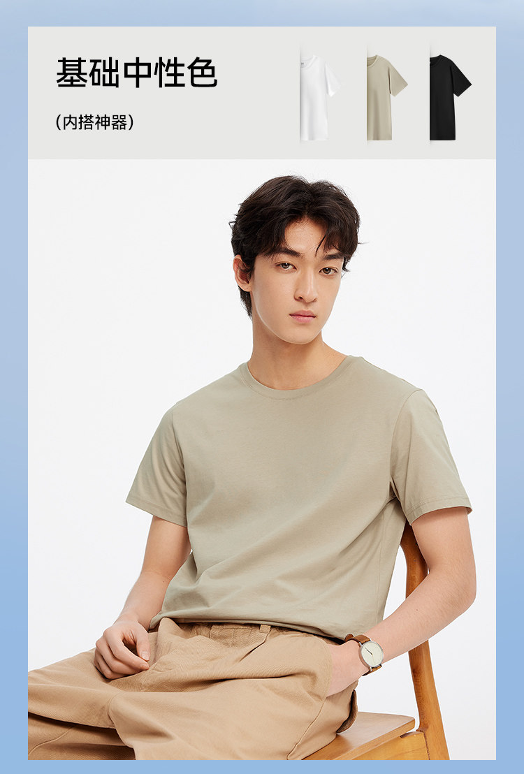 Semir Pure Cotton White T-Shirt Top for Men and Women 2026 Summer New Antibacterial Round Neck Base Shirt Solid Color Short-Sleeve T-Shirt