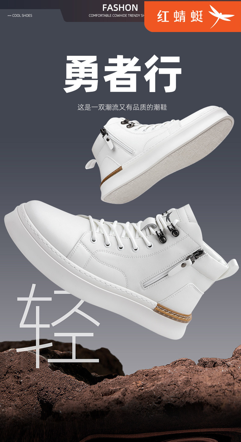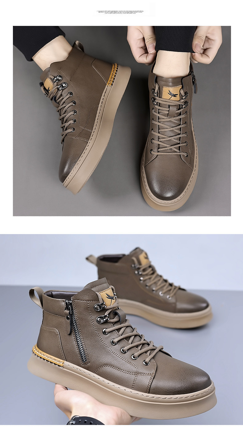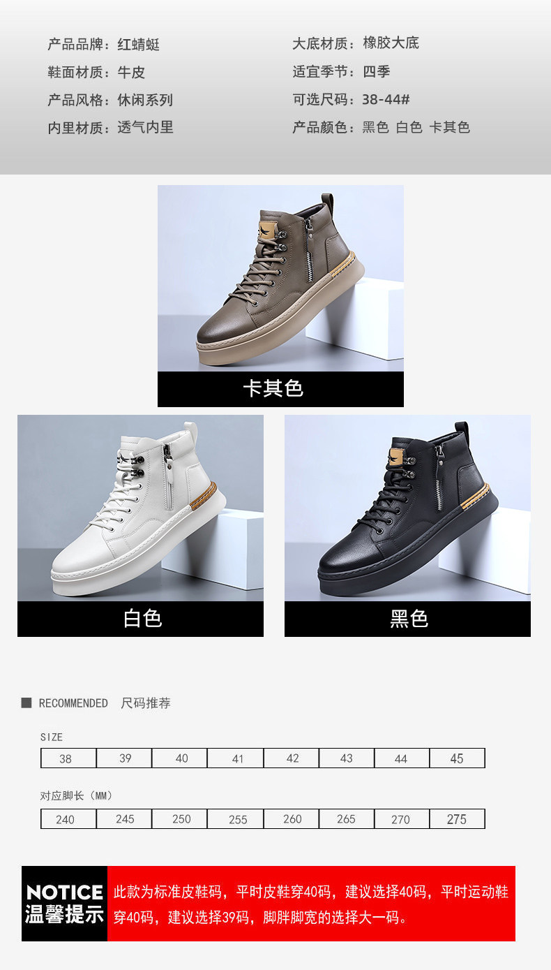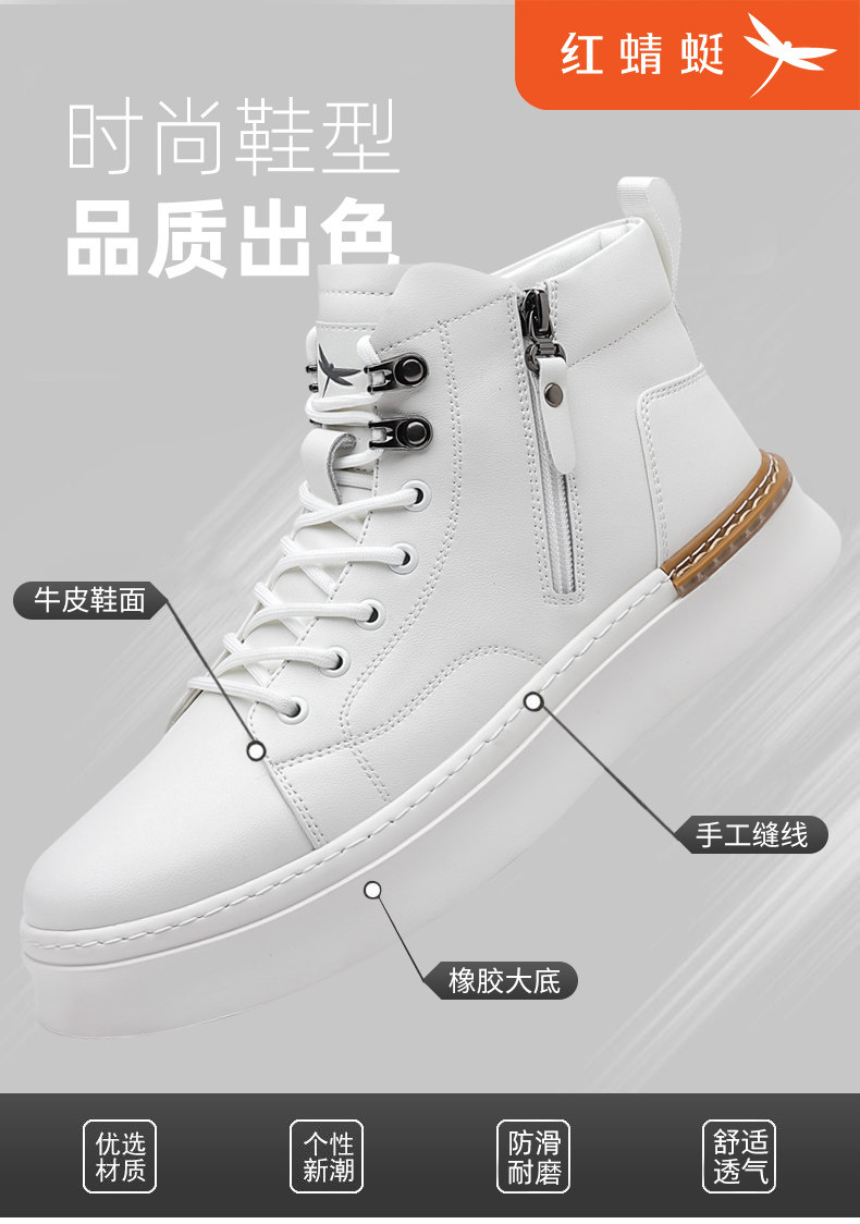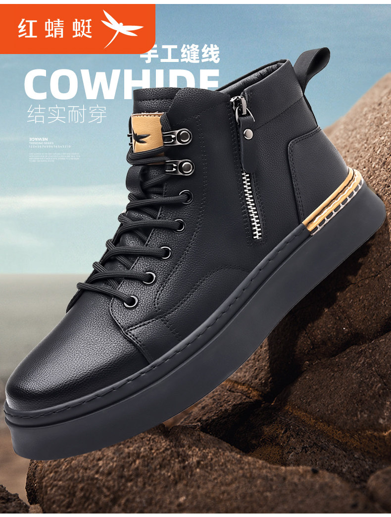 Red Dragonfly Men's Shoes 2025 Autumn and Winter New Genuine Leather Breathable Casual Boots Men's Fashion Versatile Mid-Top Sneakers