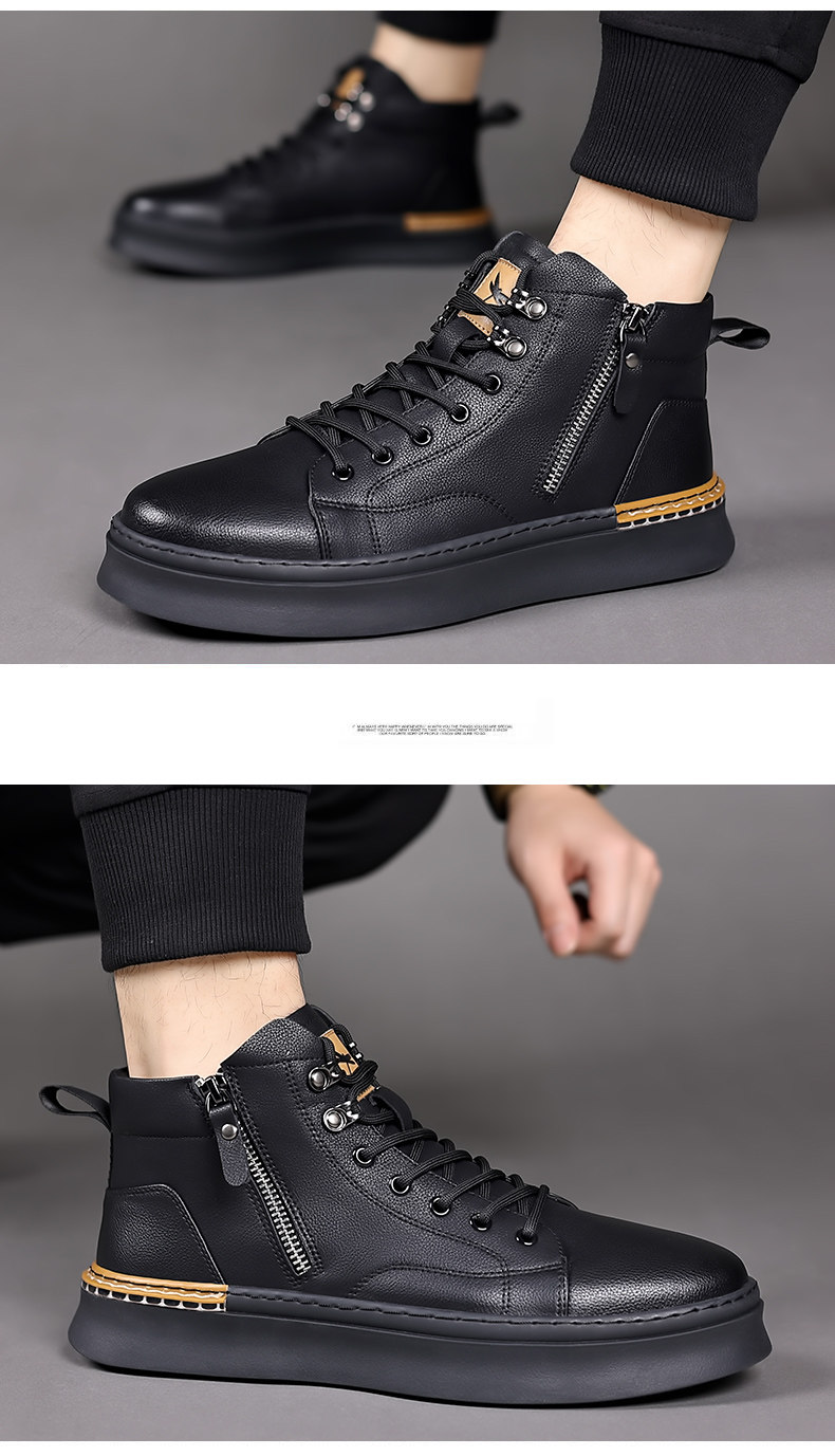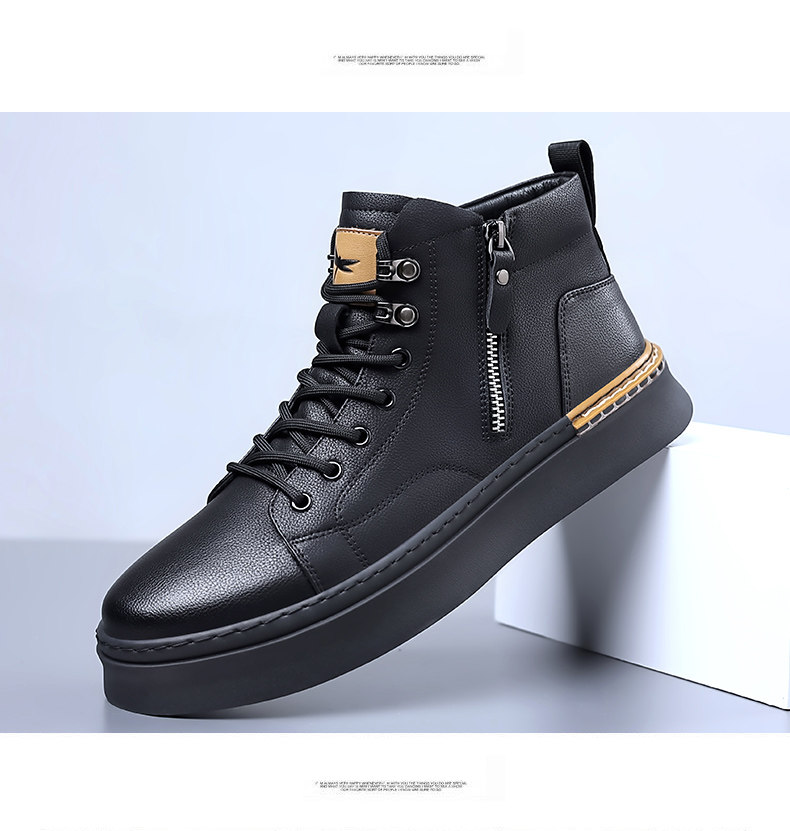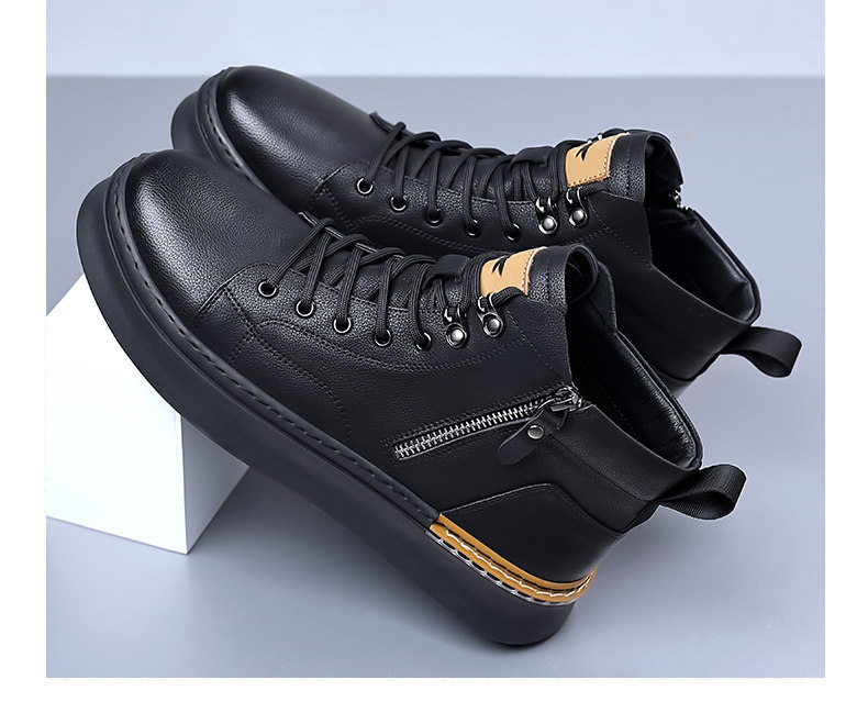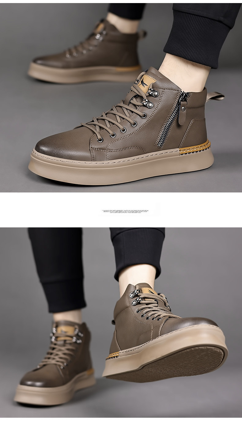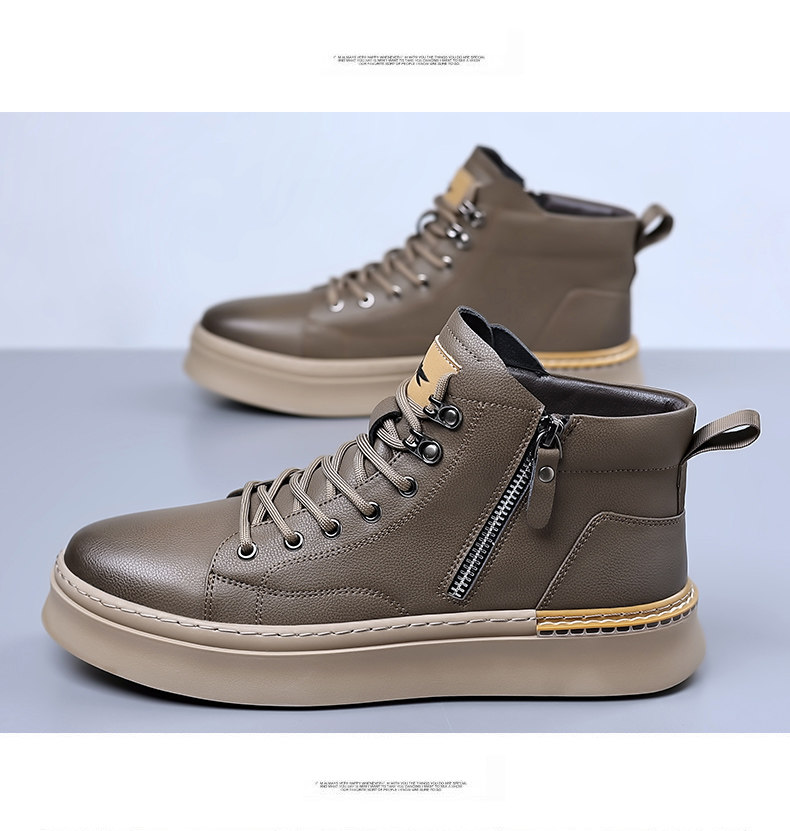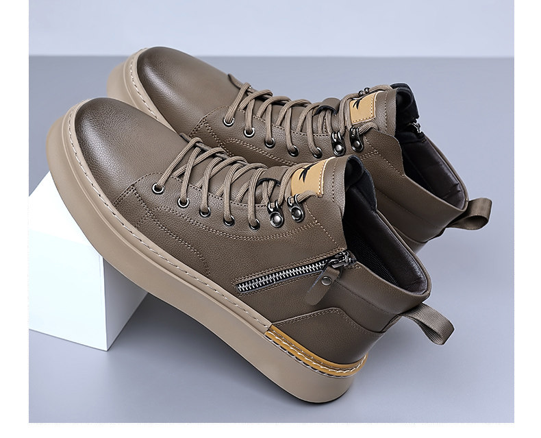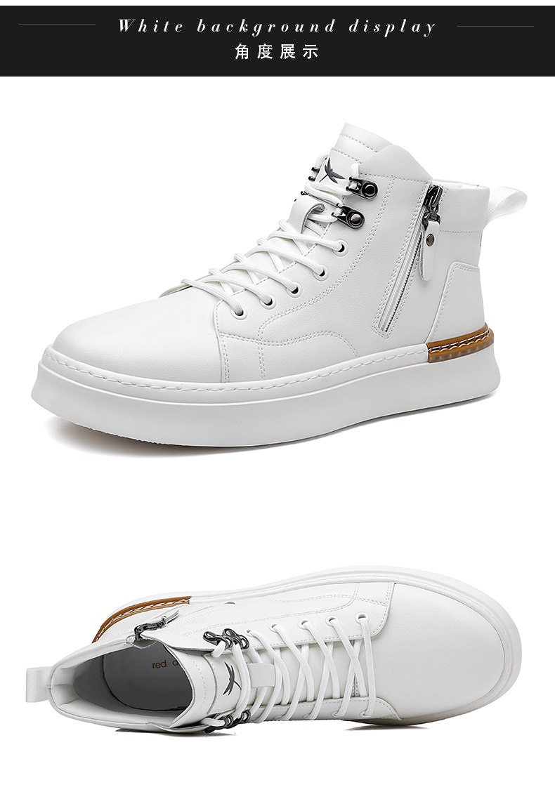 Red Dragonfly Men's Shoes 2025 Autumn and Winter New Genuine Leather Breathable Casual Boots Men's Fashion Versatile Mid-Top Sneakers