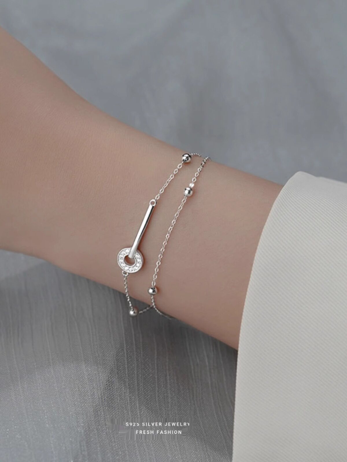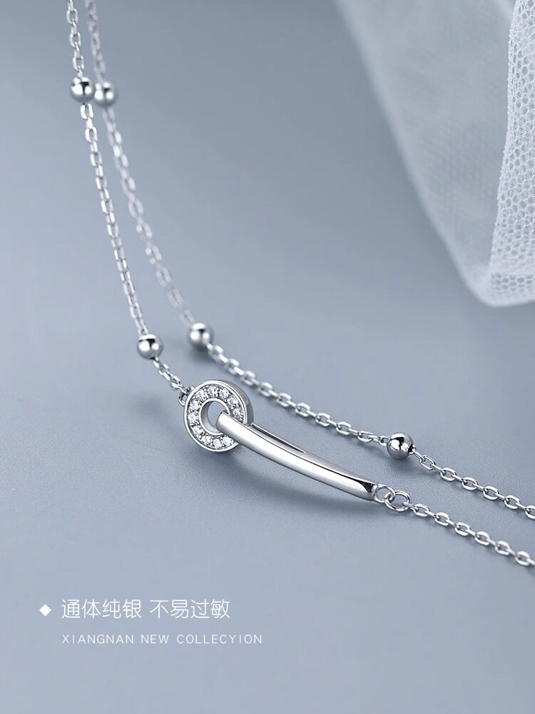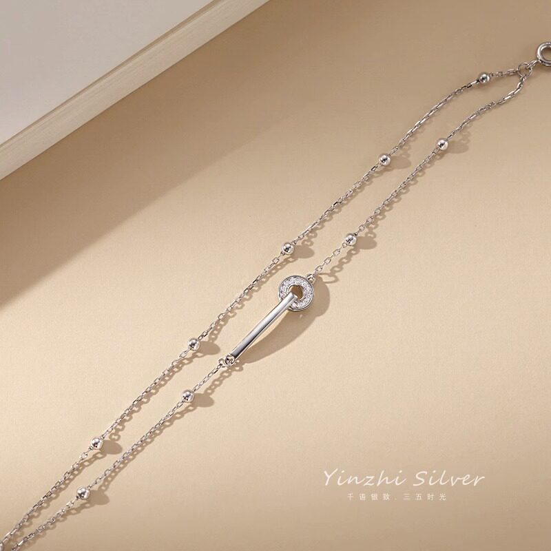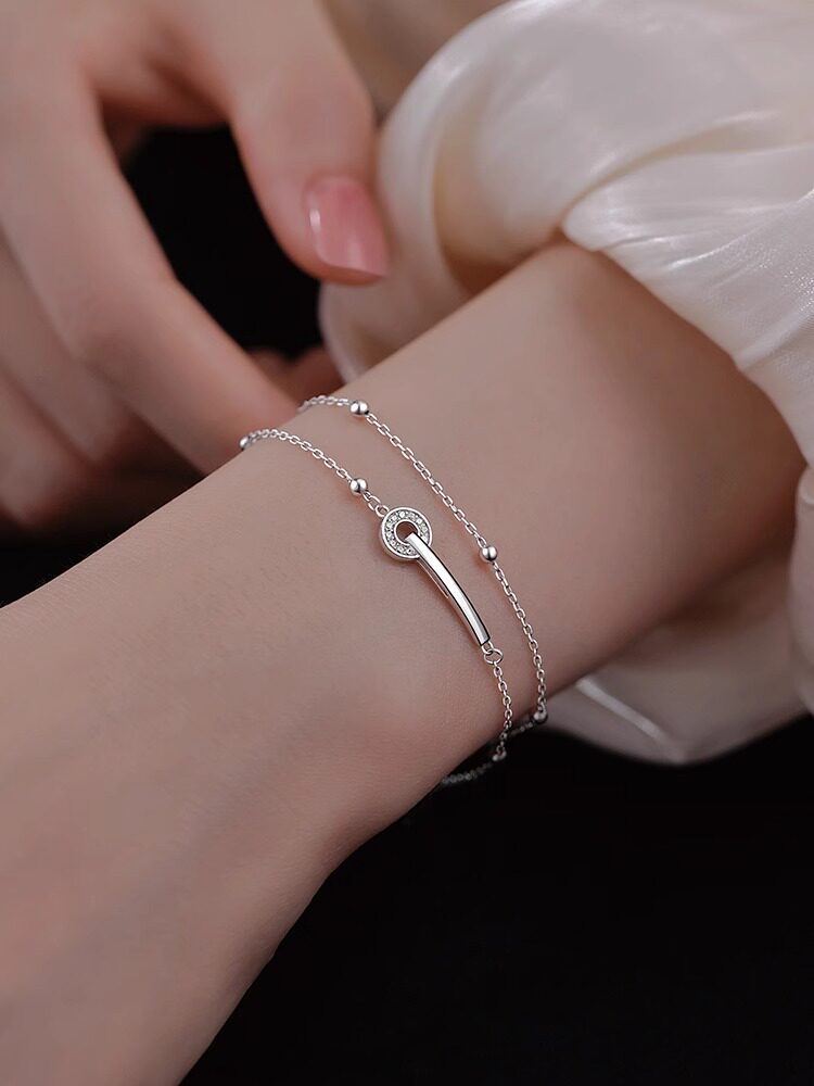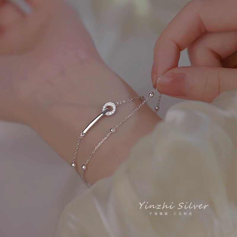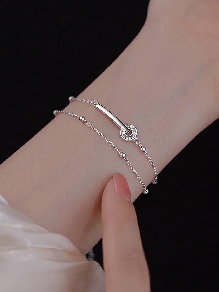 999 Pure Silver Bracelet, Light Luxury, Niche, Exquisite, Double-Layered, Interlocking Rings, Women's Jewelry, Gift for Best Friend or Girlfriend