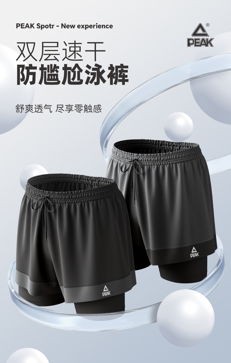 Peak Swimming Trunks Men's Swim Trunks Swim Cap Swimming Goggles Three-Piece Set Anti-Embarrassment Beach Shorts Men's Sports Swimming Gear