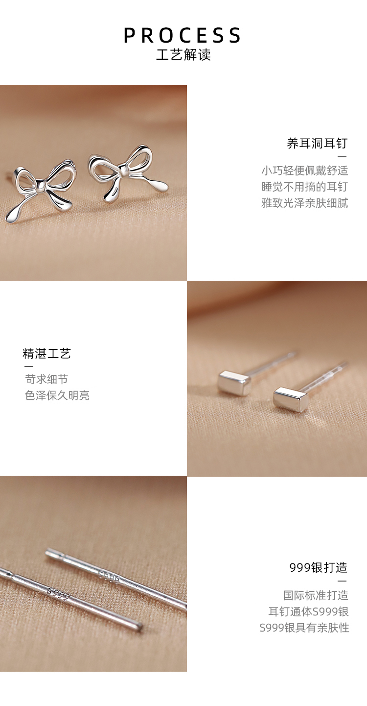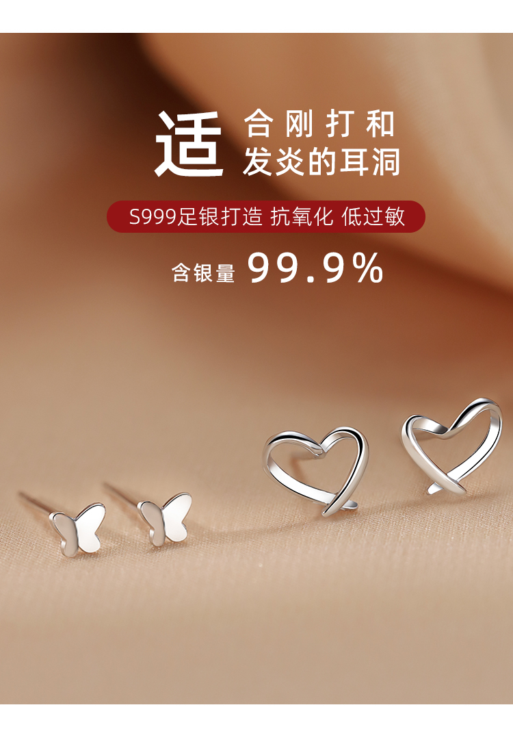 S999 Pure Silver Ear Jewelry for Ear Piercing, No Need to Remove When Sleeping, Small Earrings, New 2025 Hot Style, High-End Earrings