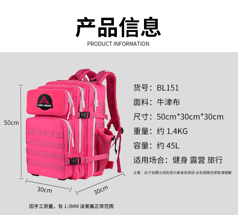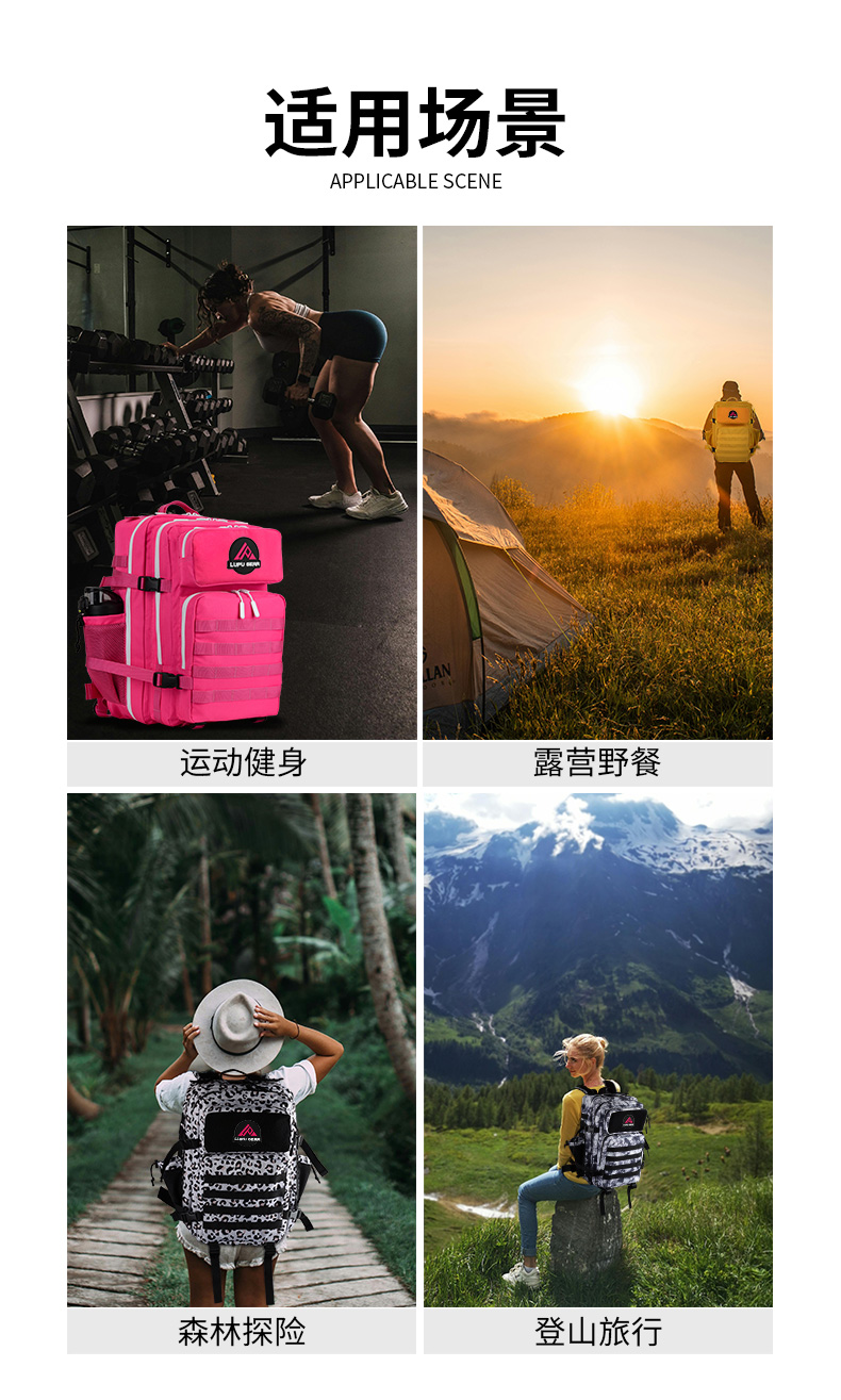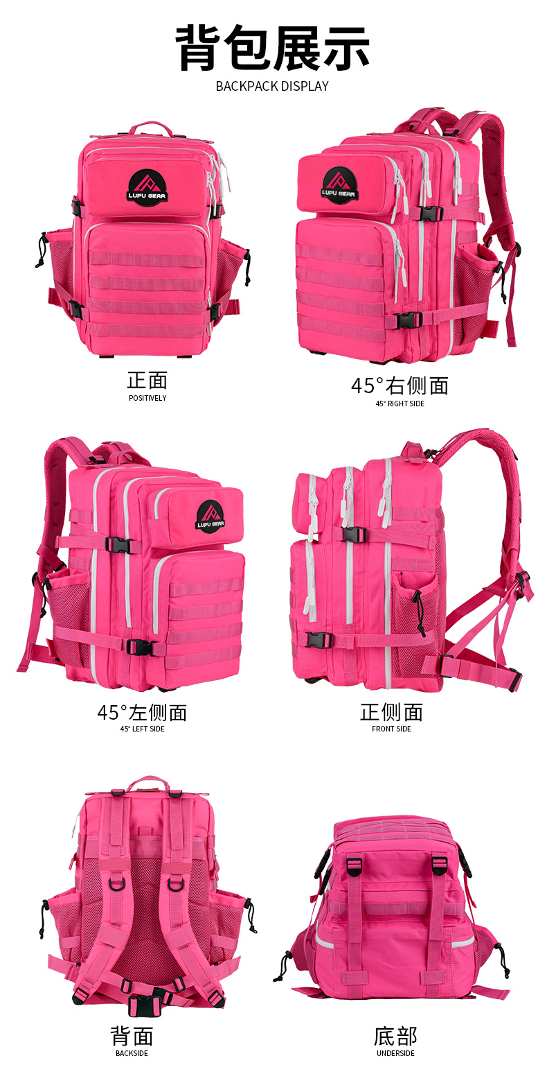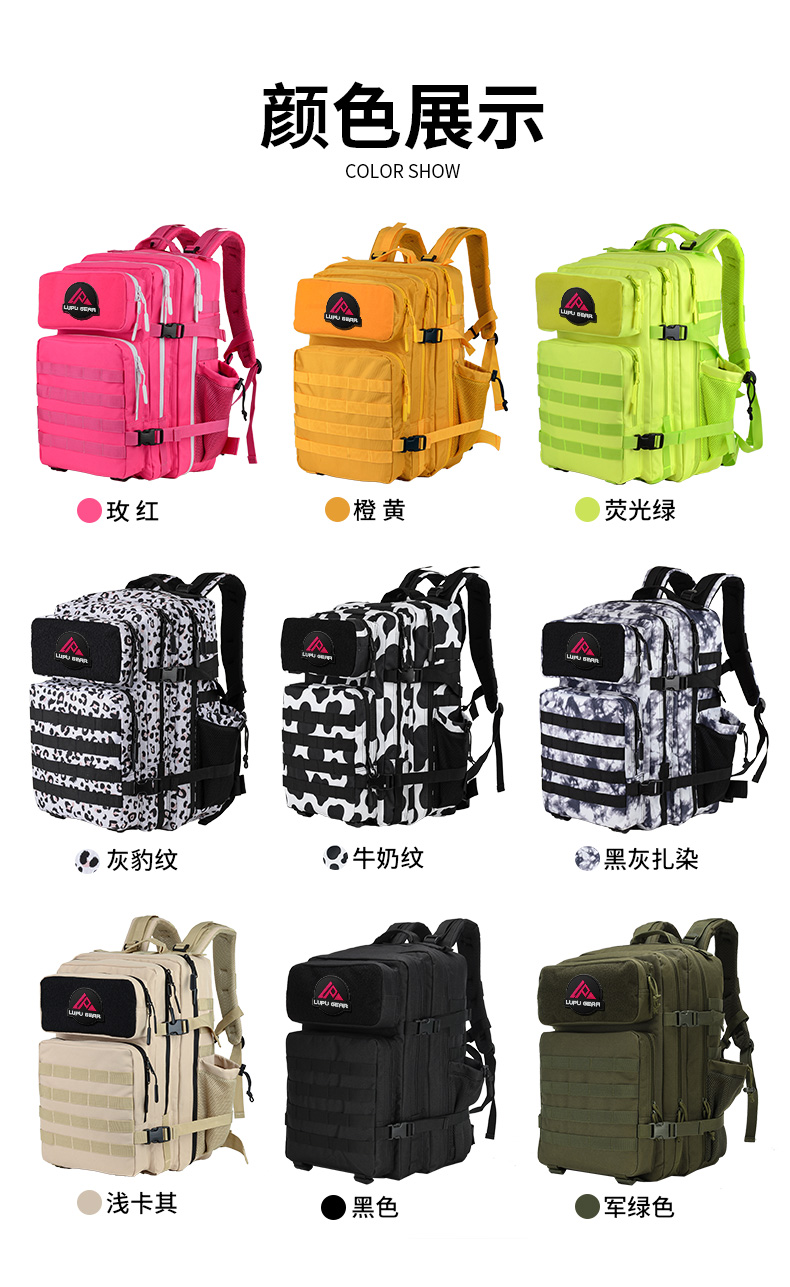 Outdoor Tactical Backpack, Fashionable Sports Mountaineering 45-Liter Camouflage Backpack, 3P Bag for Travel and Hiking, Water-Repellent, Large Capacity