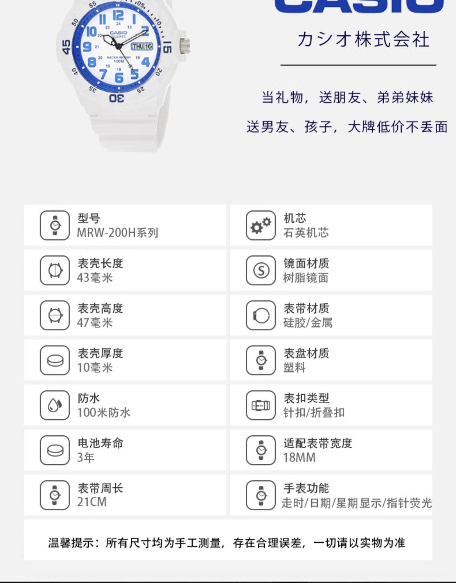 Casio Casio Youth Student Children's Jelly Color Small Black Watch Sports Waterproof Quartz Watch Mrw-200H-3B
