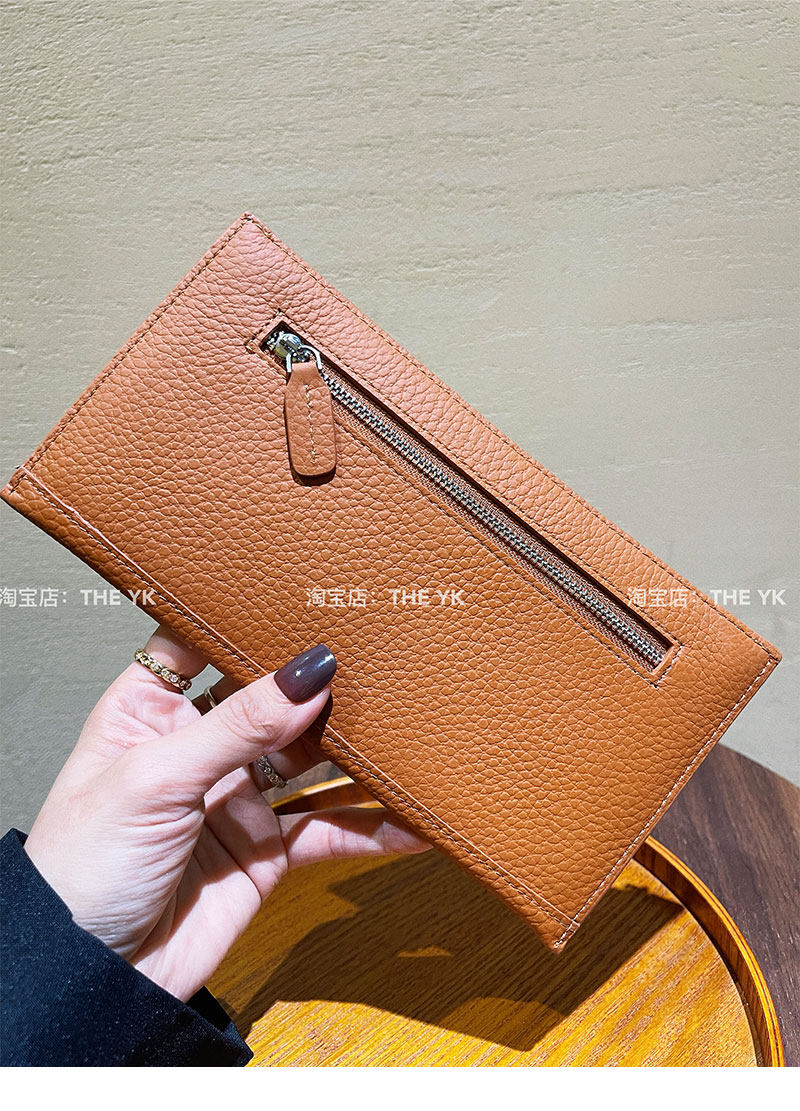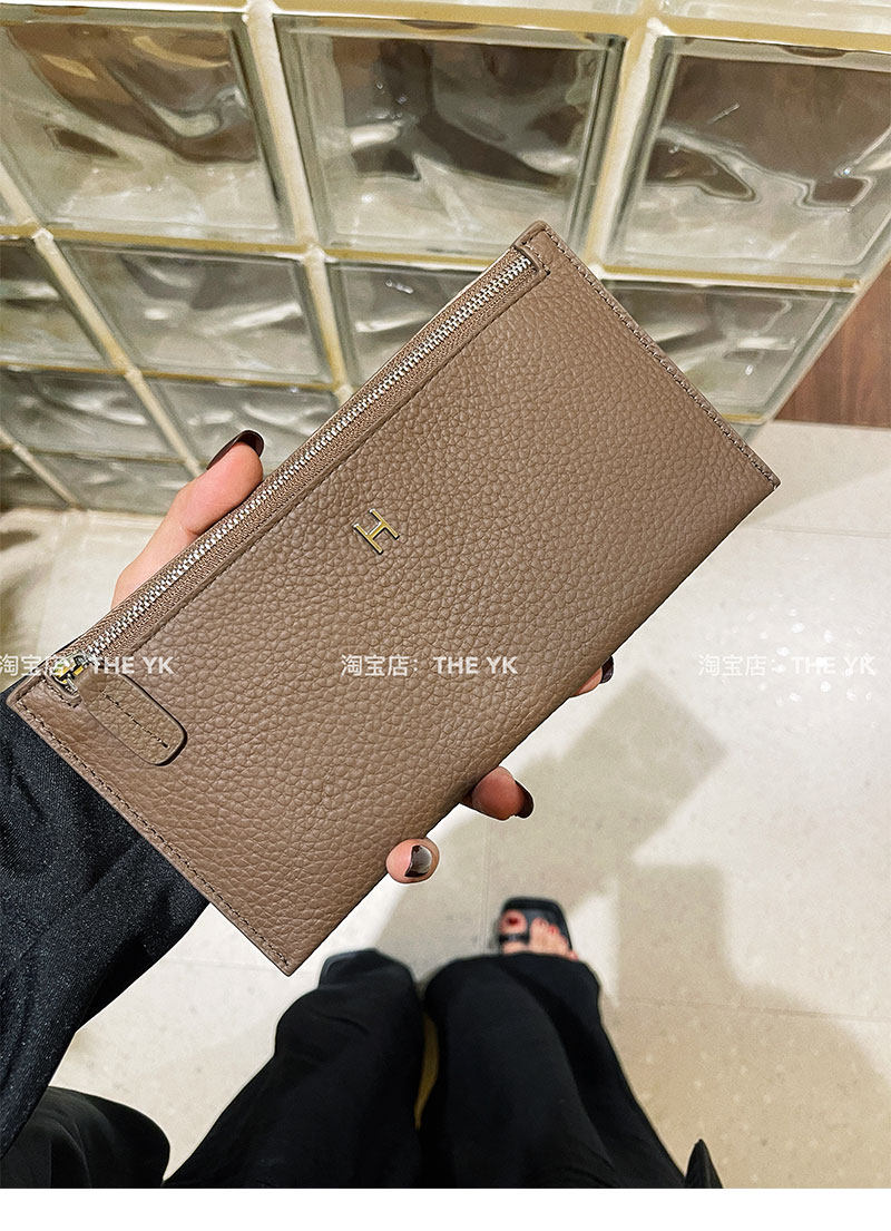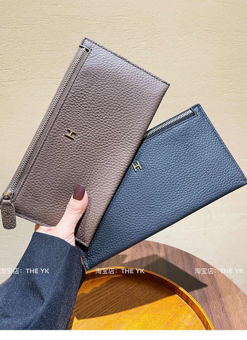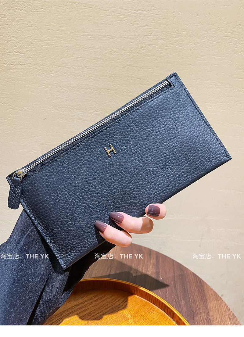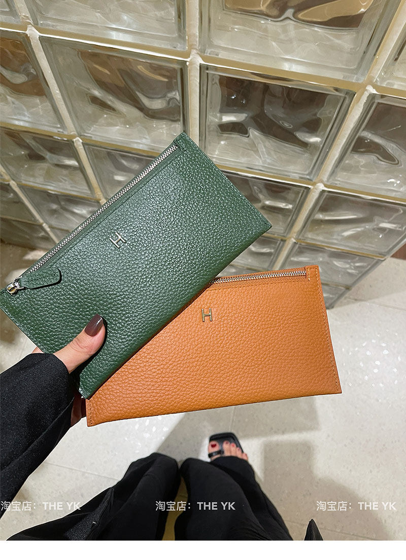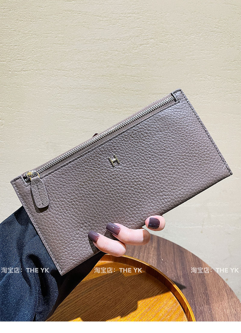 H Buckle Top-Layer Cowhide Clutch Bag, Exquisite Phone Bag for Women, Lychee Pattern Passport Holder, Ultra-Thin Long Wallet for Women