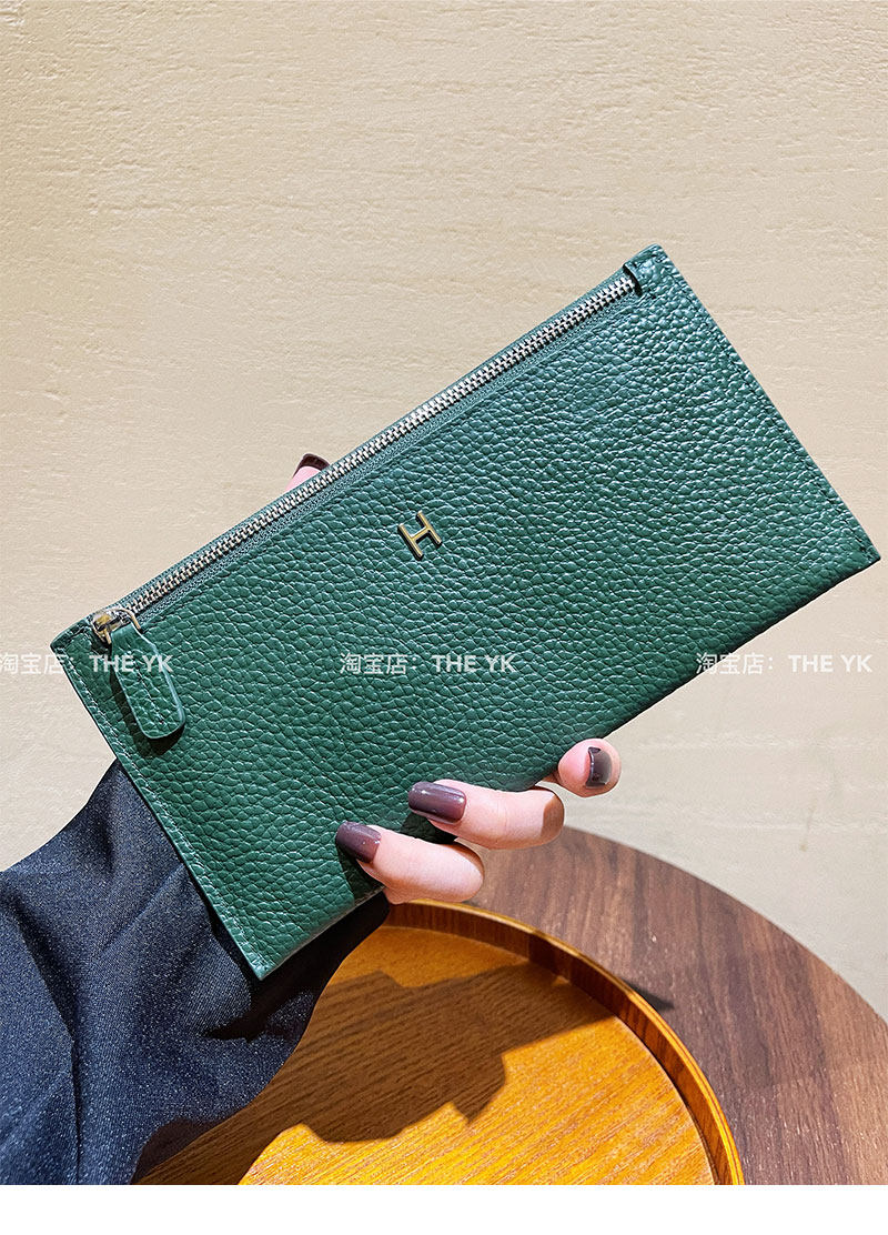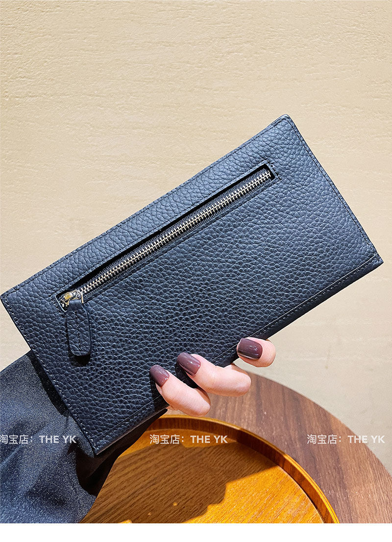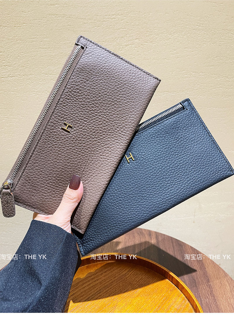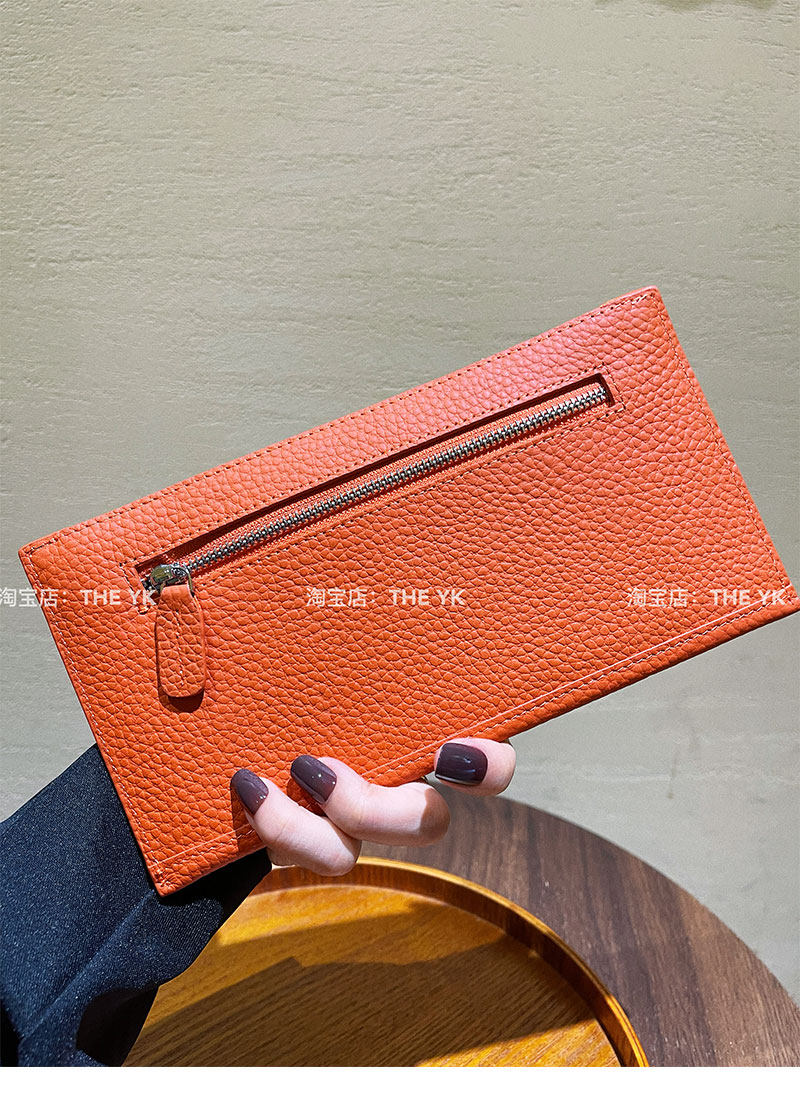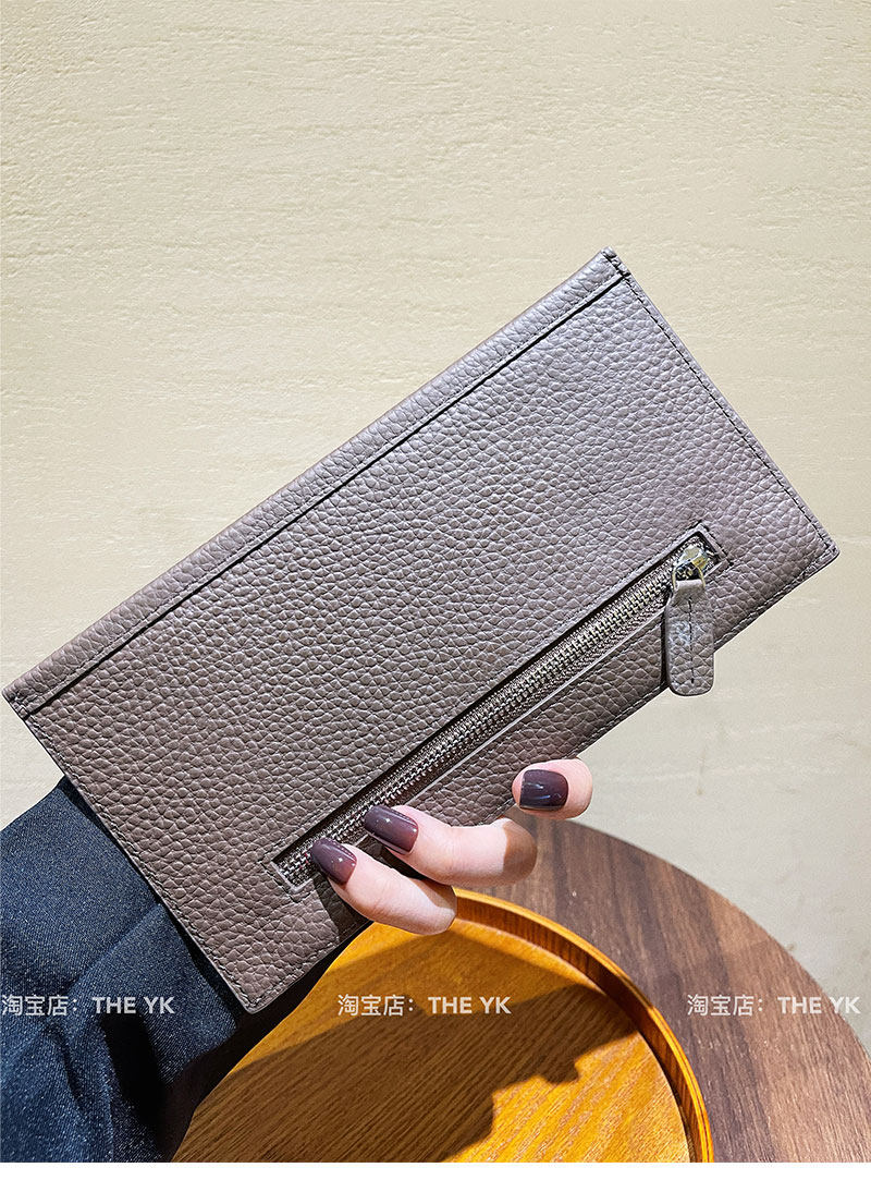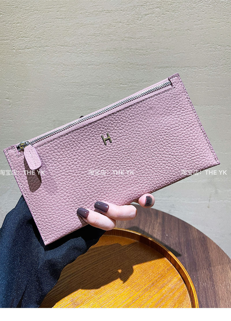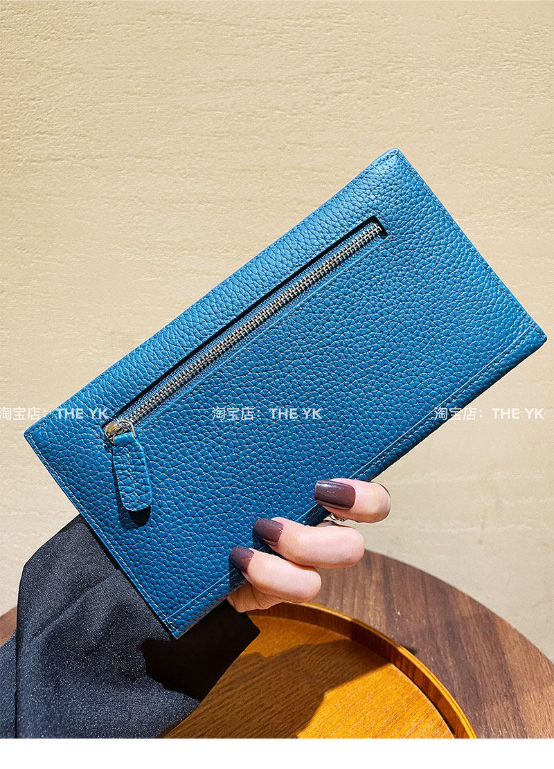 H Buckle Top-Layer Cowhide Clutch Bag, Exquisite Phone Bag for Women, Lychee Pattern Passport Holder, Ultra-Thin Long Wallet for Women