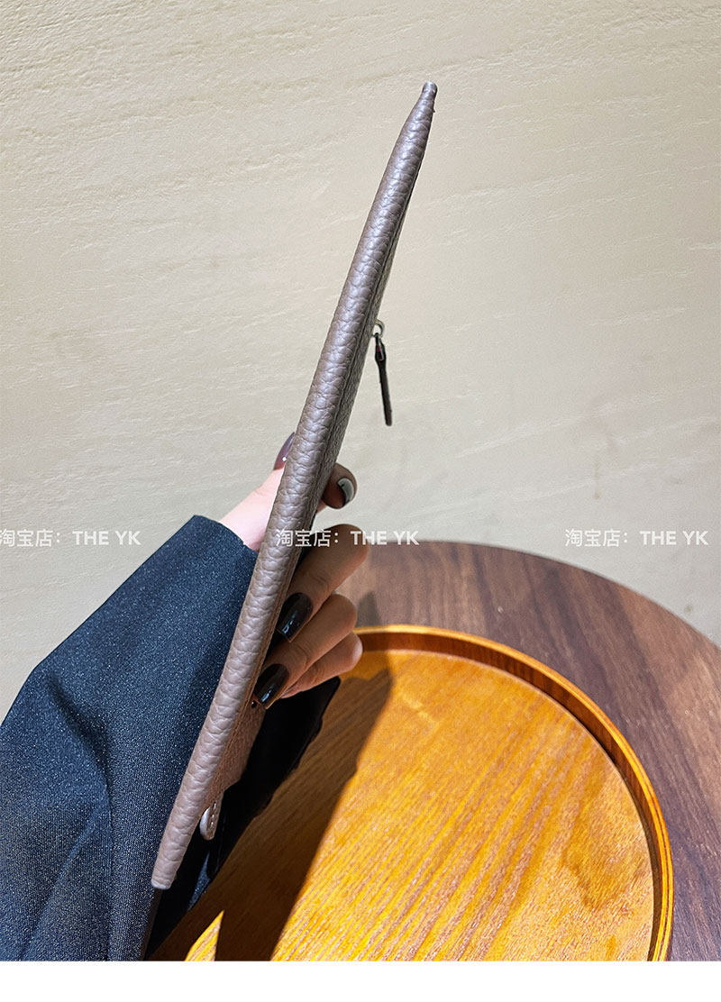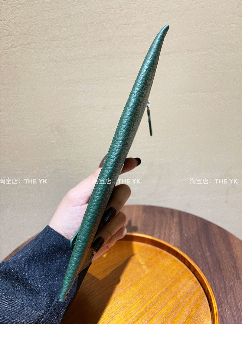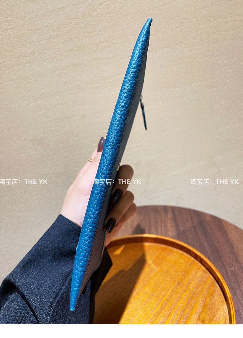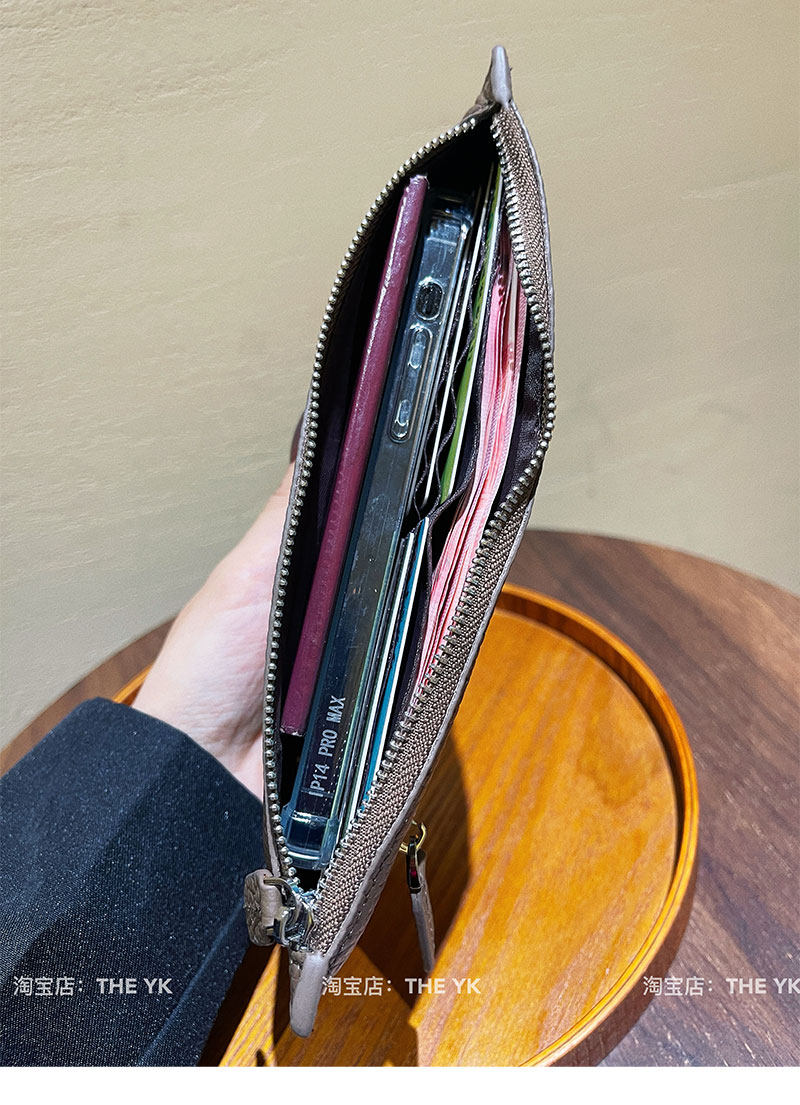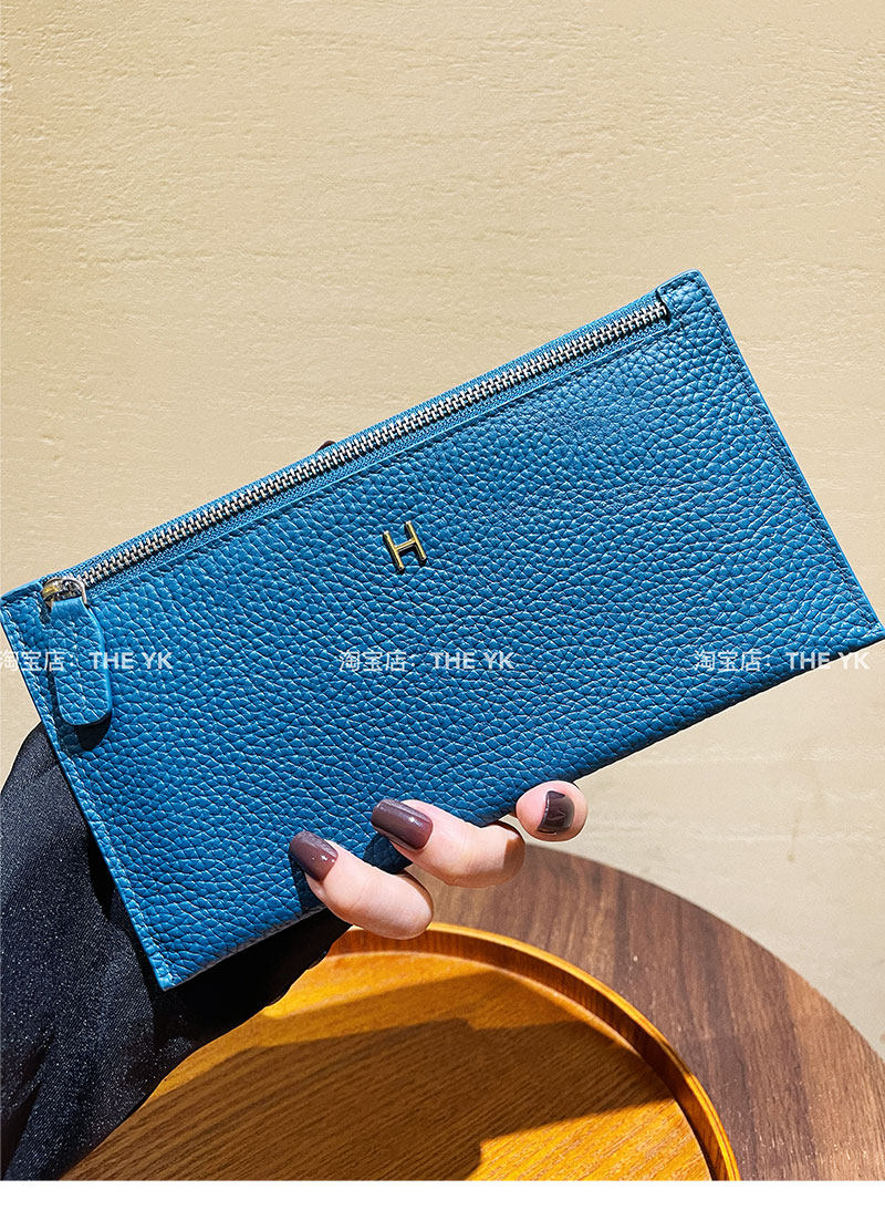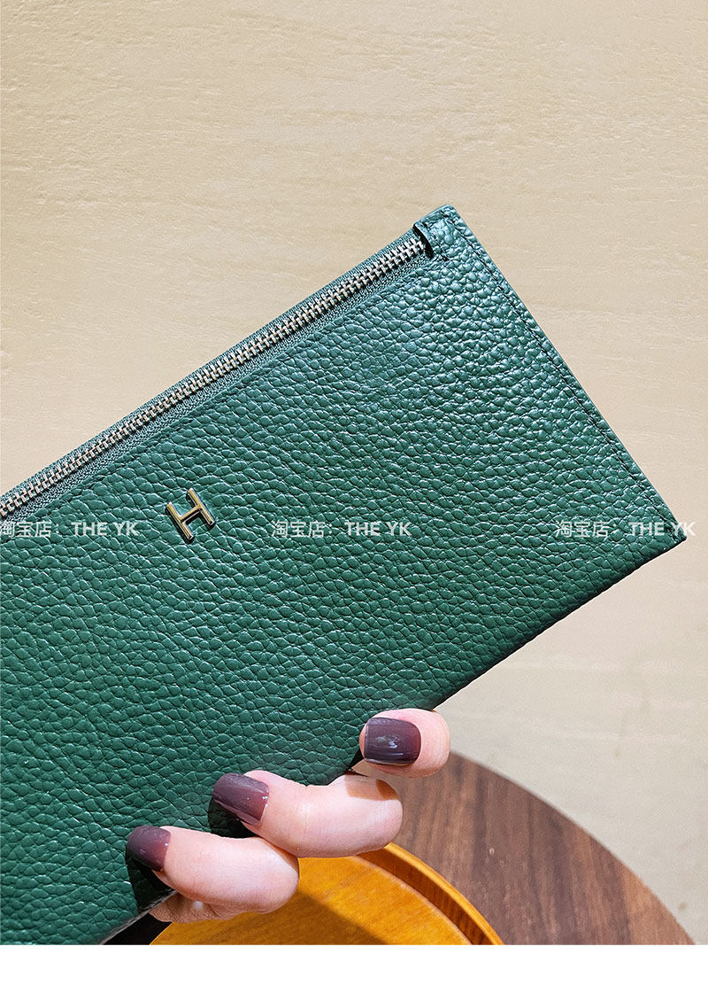 H Buckle Top-Layer Cowhide Clutch Bag, Exquisite Phone Bag for Women, Lychee Pattern Passport Holder, Ultra-Thin Long Wallet for Women