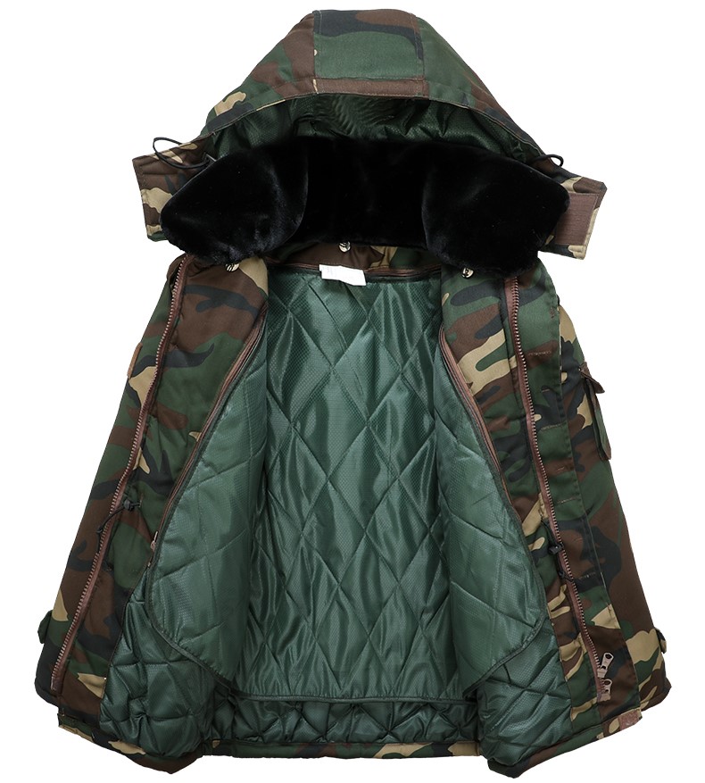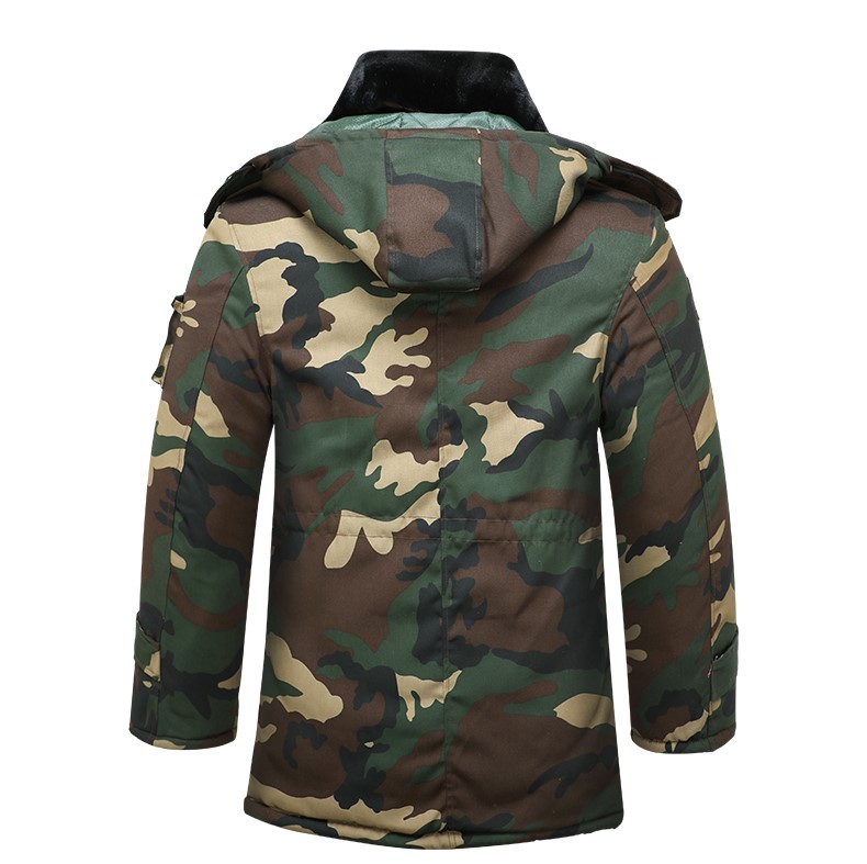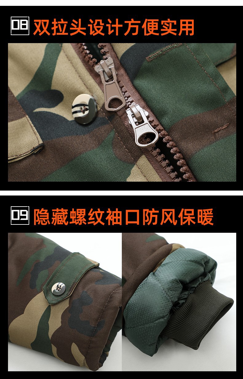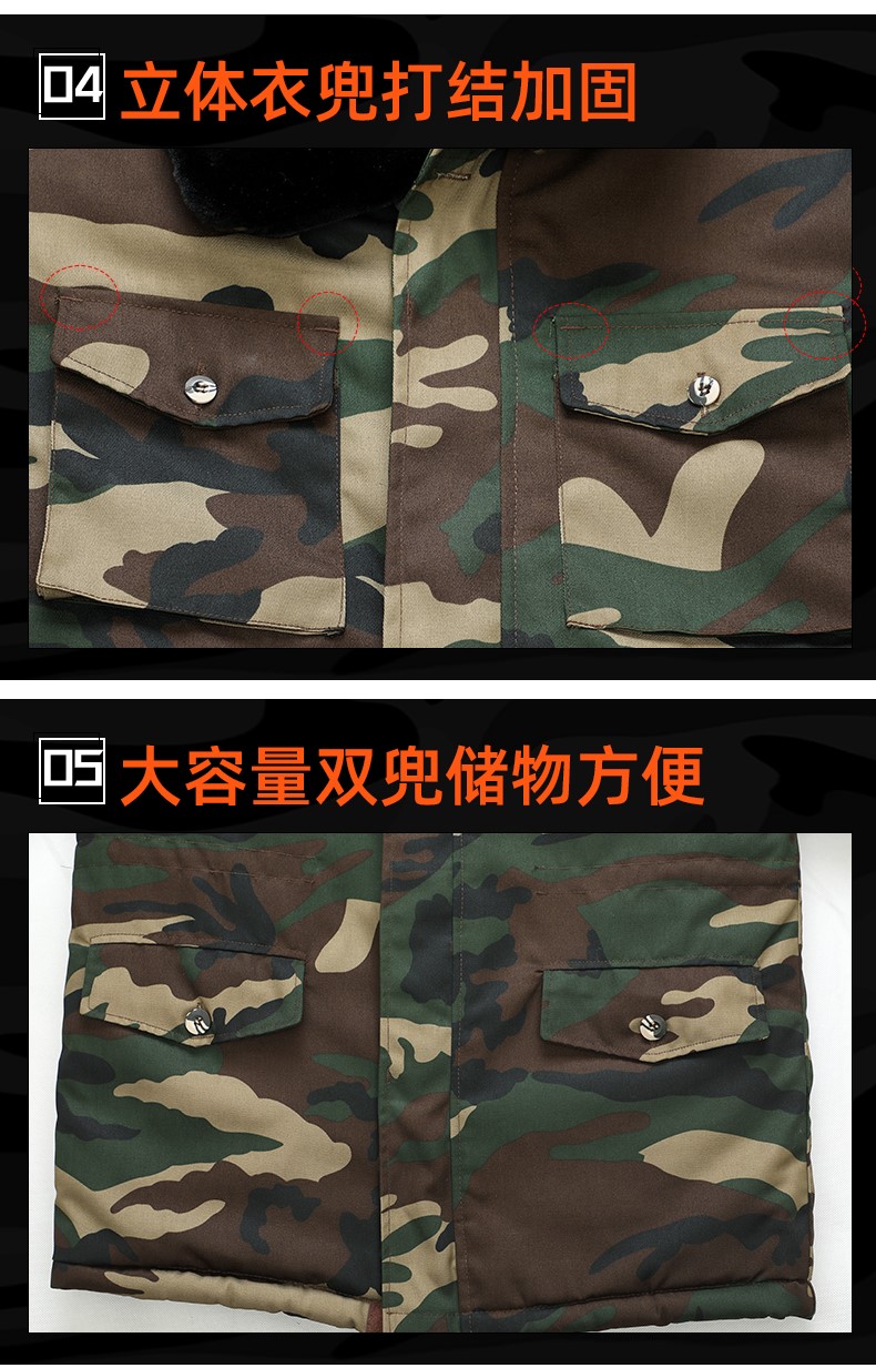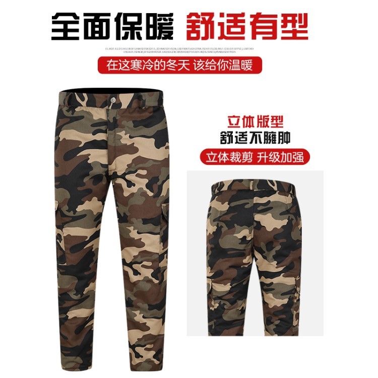 Camouflage Military Coat for Men and Women, Winter Thickened Mid-Length Cotton Jacket and Pants Set, Cold Storage Cold-Proof Clothing, Work Safety Cotton Coat