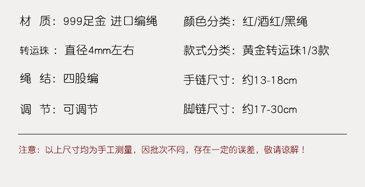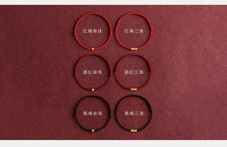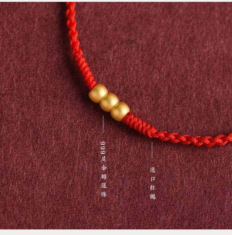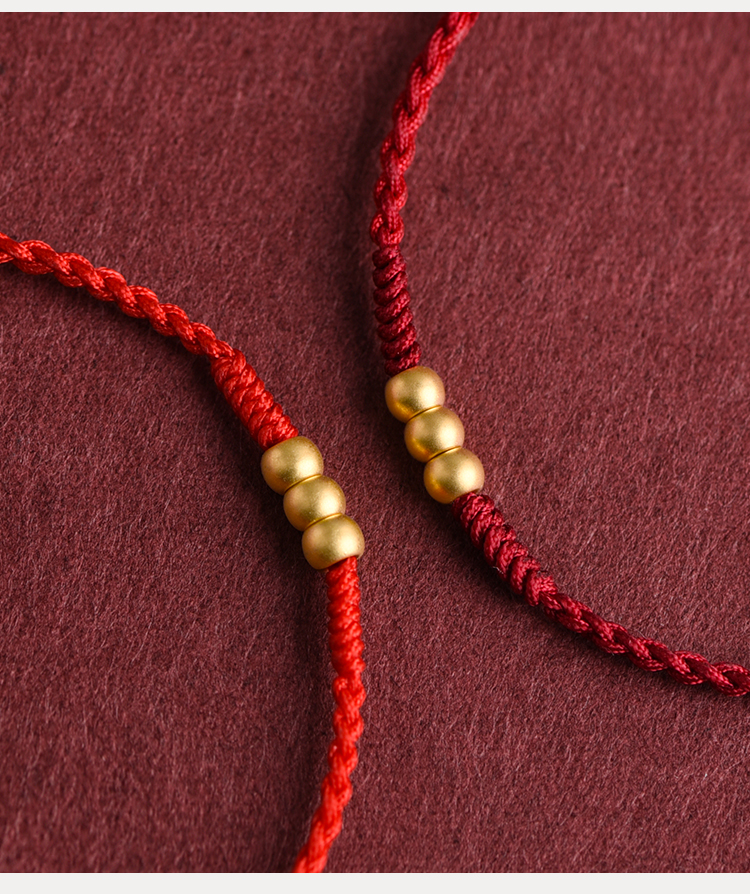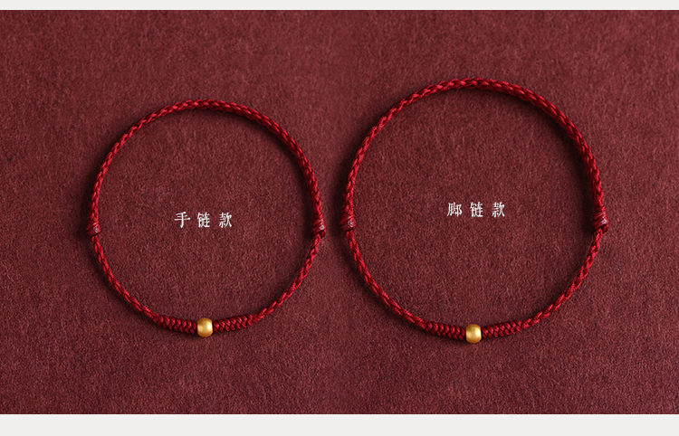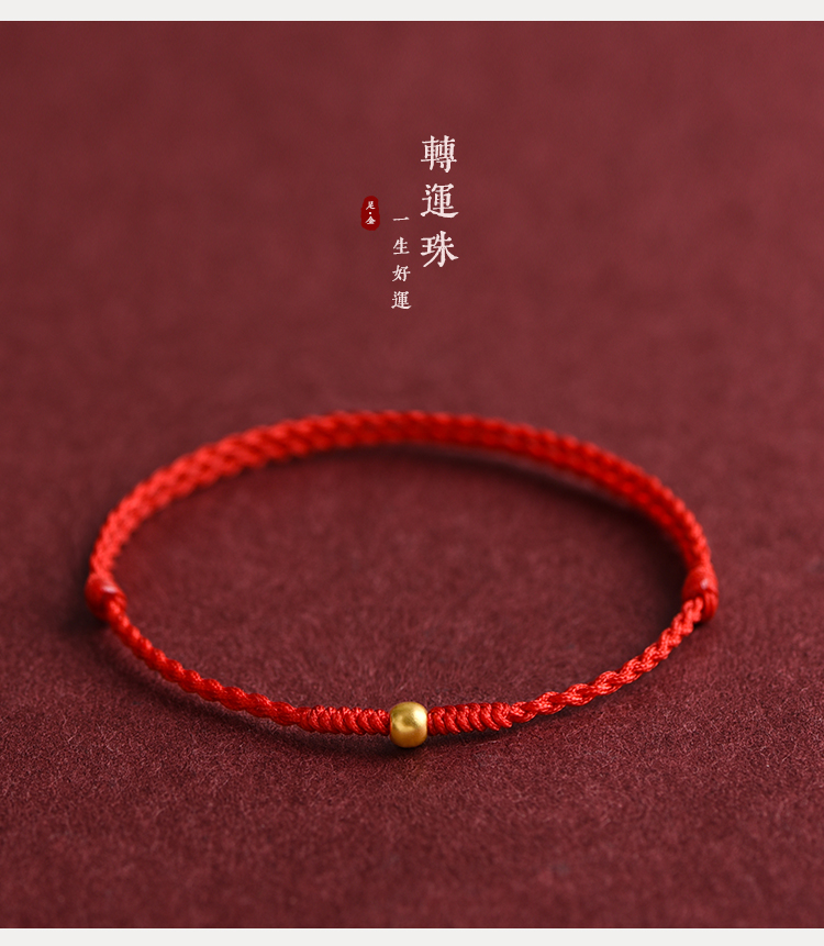 999 Pure Gold Transfer Bead Red String Bracelet Anklet for Men and Women Born in the Year of the Snake, for Peace and Health in Their Zodiac Year, Woven Bracelet
