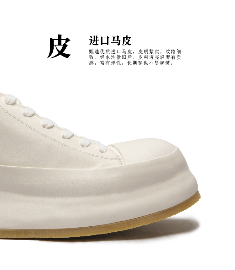 [Same Style as Huang Zihongfan] Viplander Washed Horse Leather Shoes, White Low-Top Casual Sneakers for Men A1-5