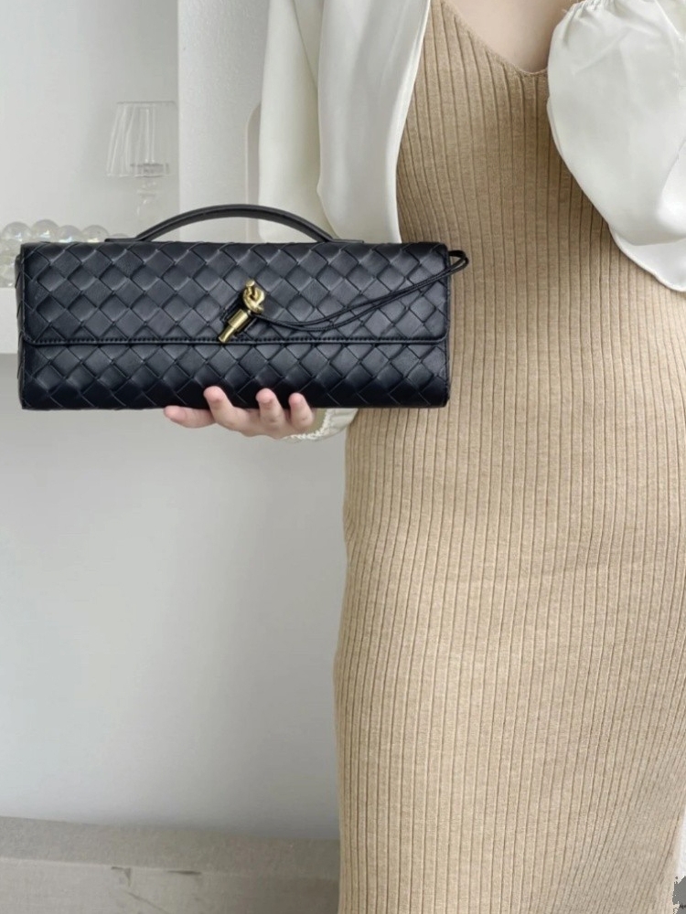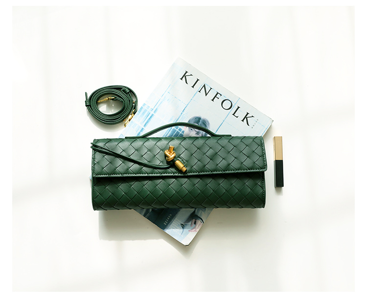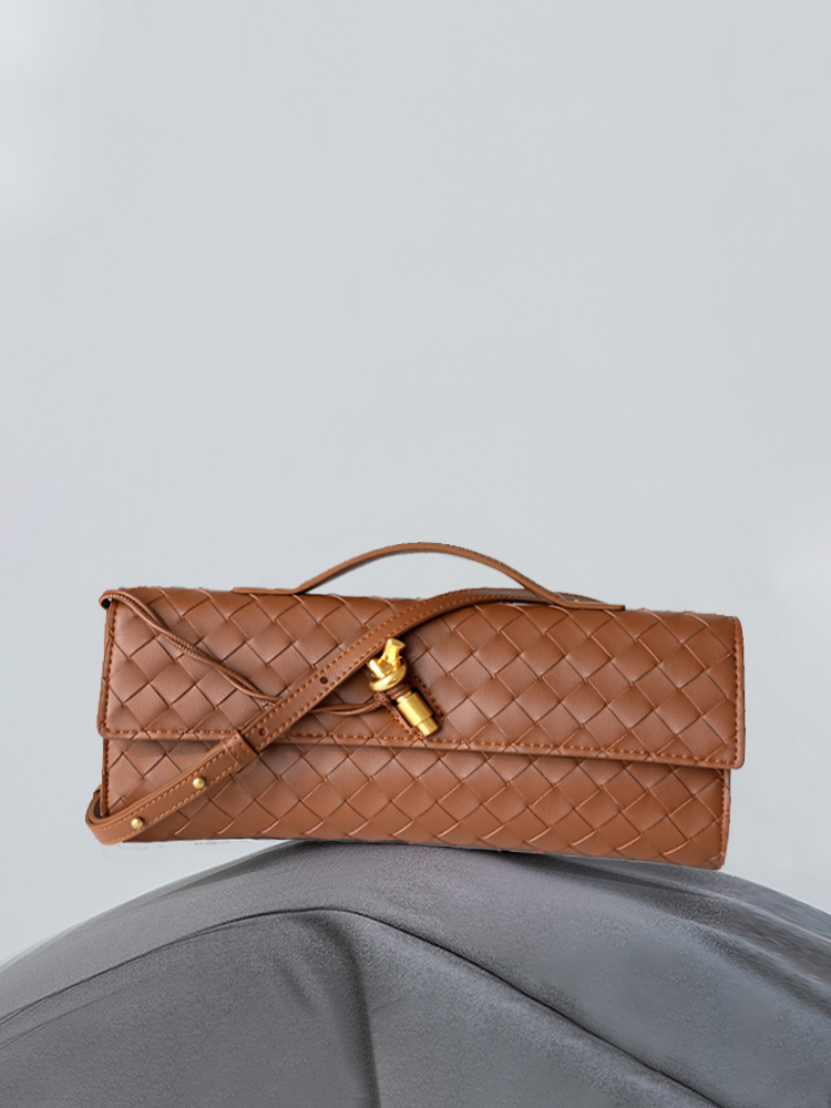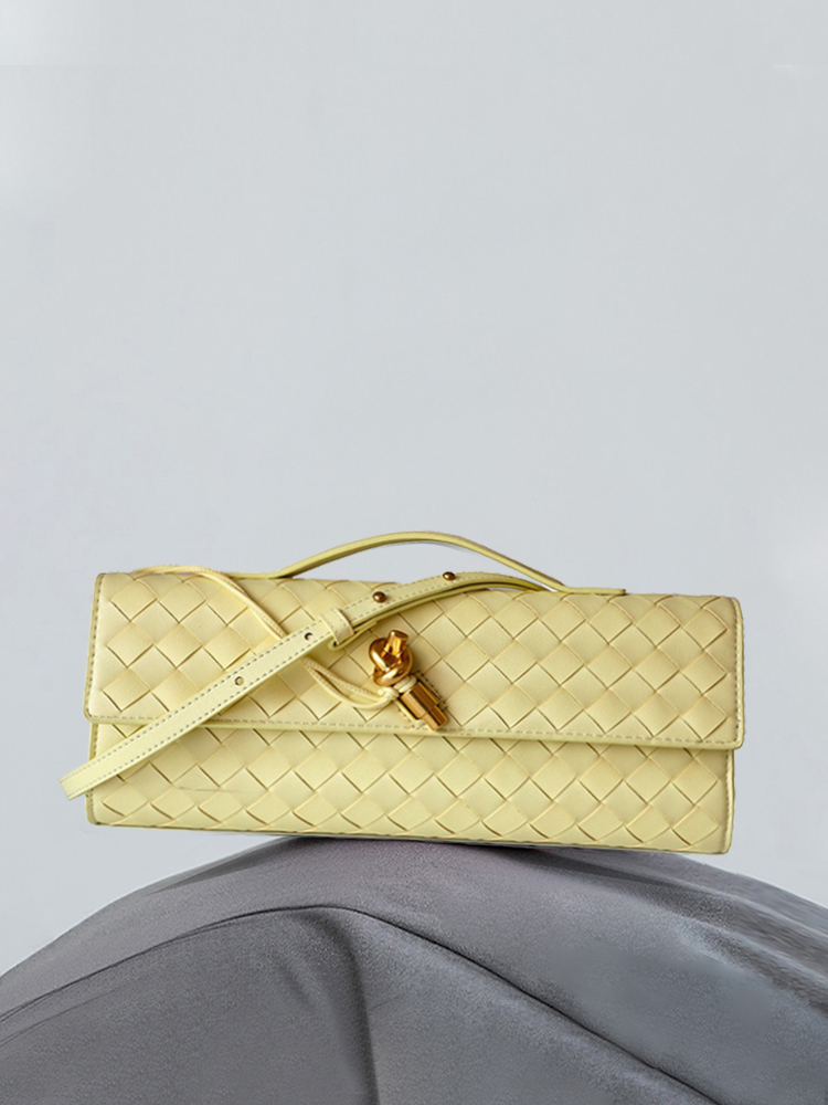 L.sqini 2025 New arrival Clutch woven cowhide evening bag baguette lock horizontal Satchel messenger bag for women