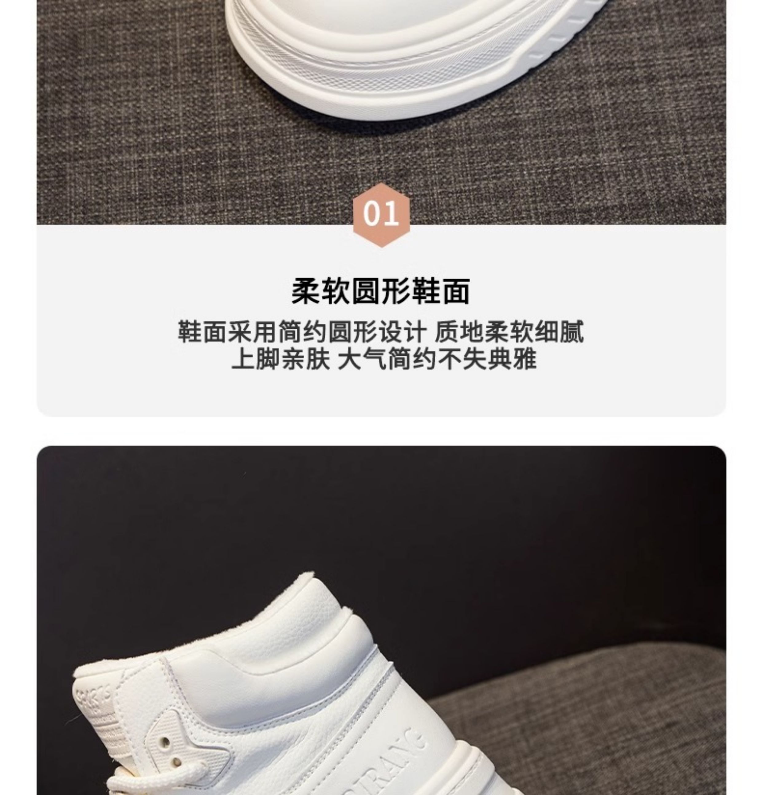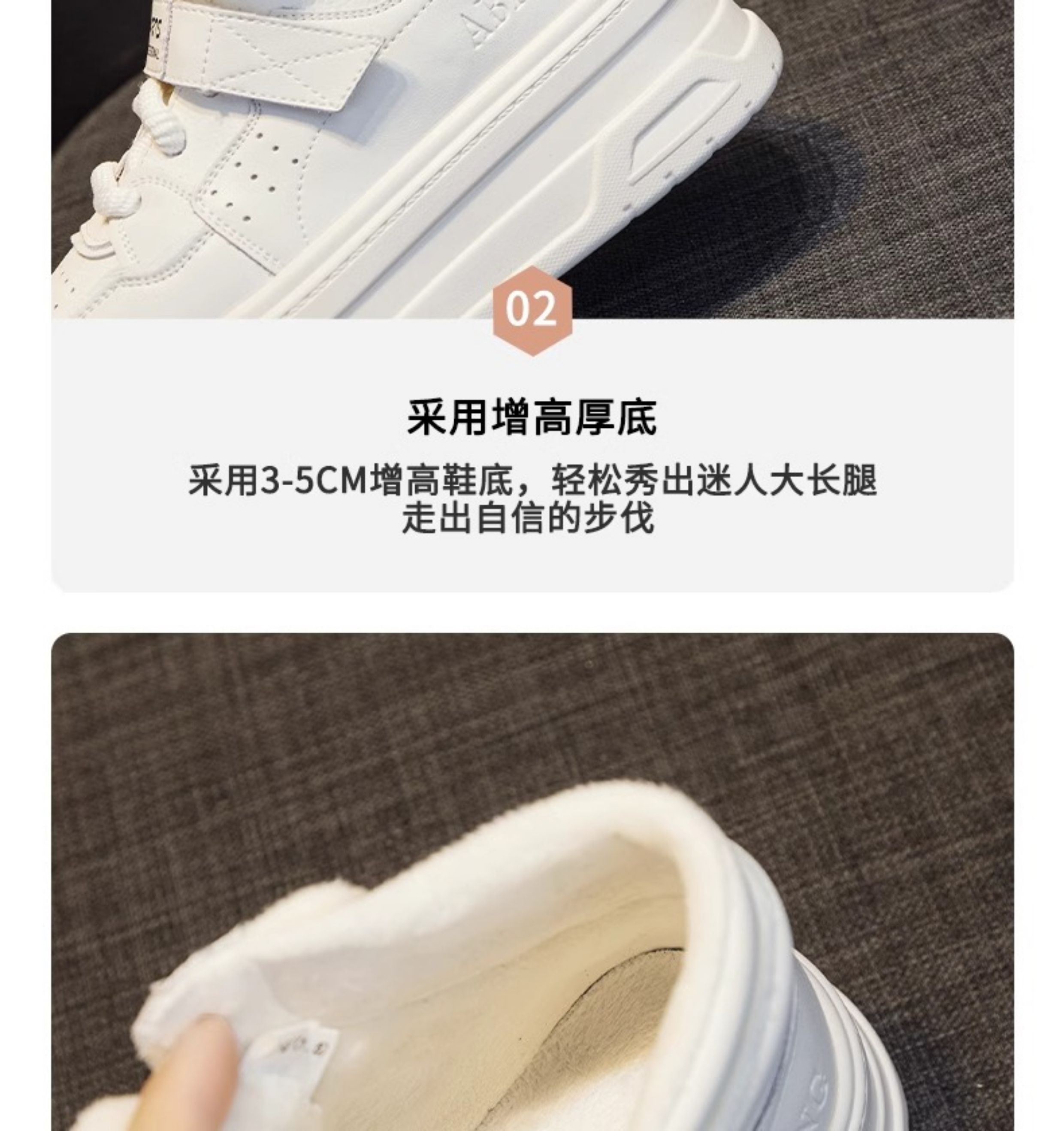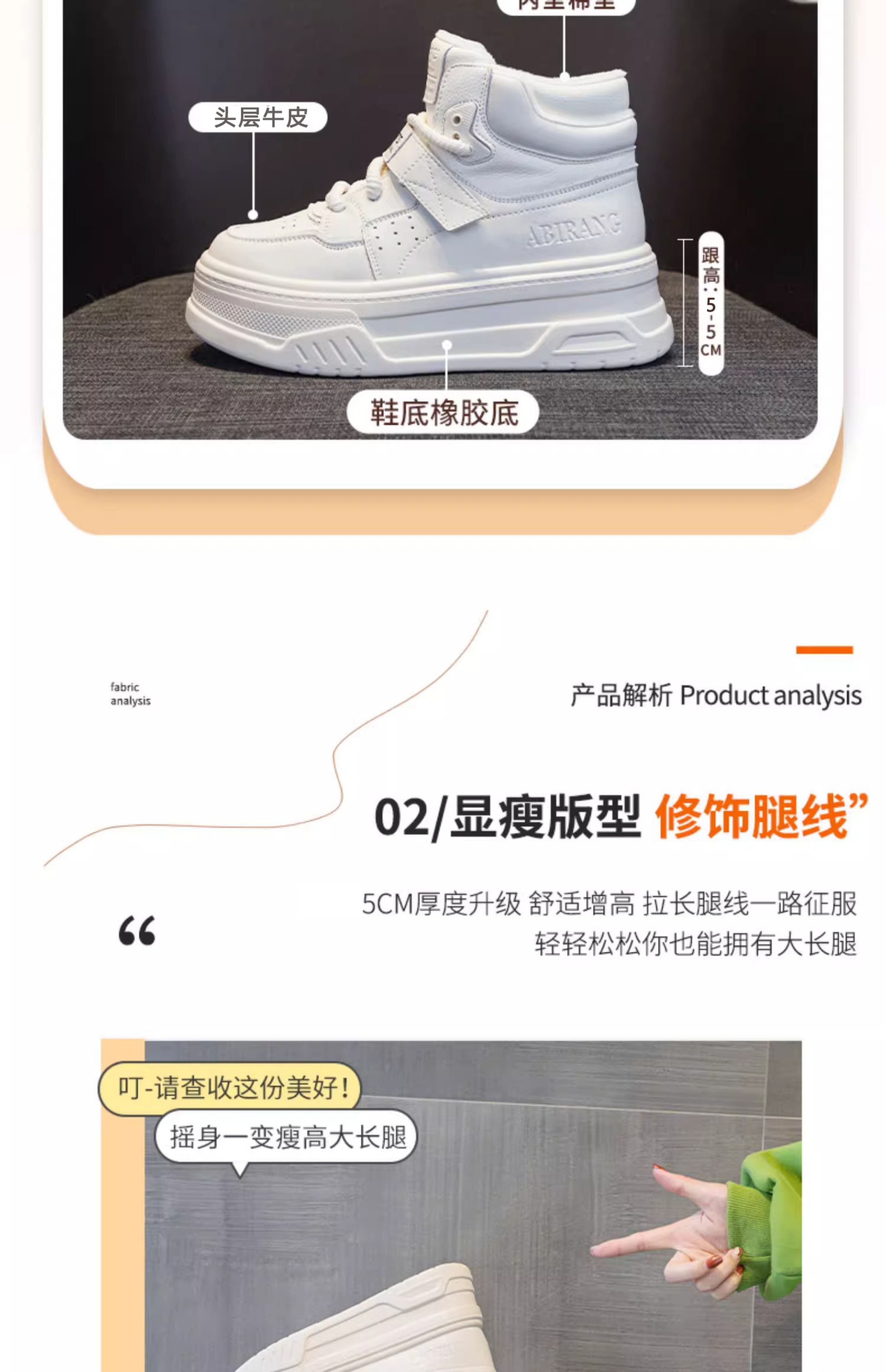 Hong Kong Genuine Leather White High-Top Shoes for Women 2025 New Spring Thick-Soled Versatile Velcro Sports Casual Sneakers