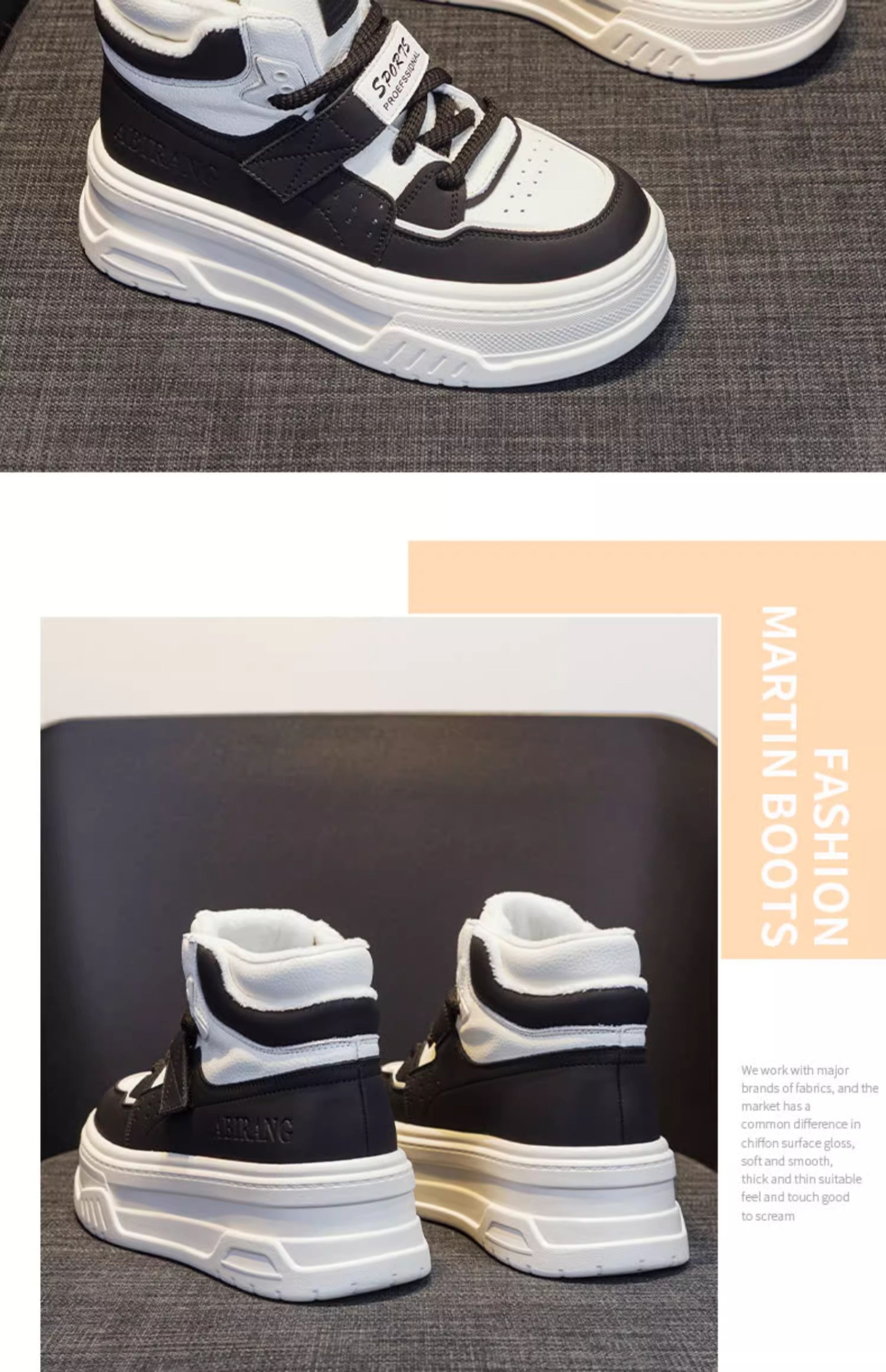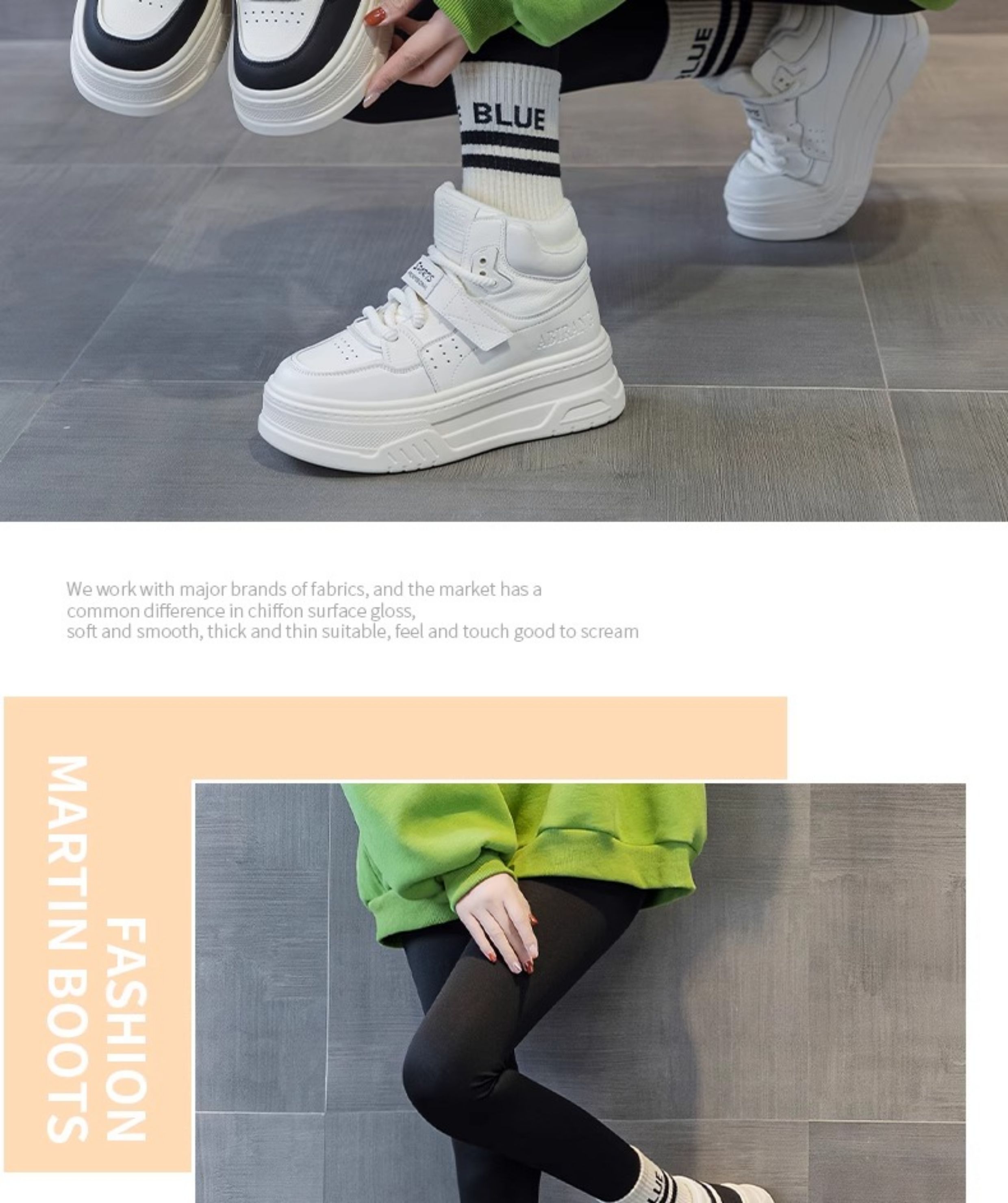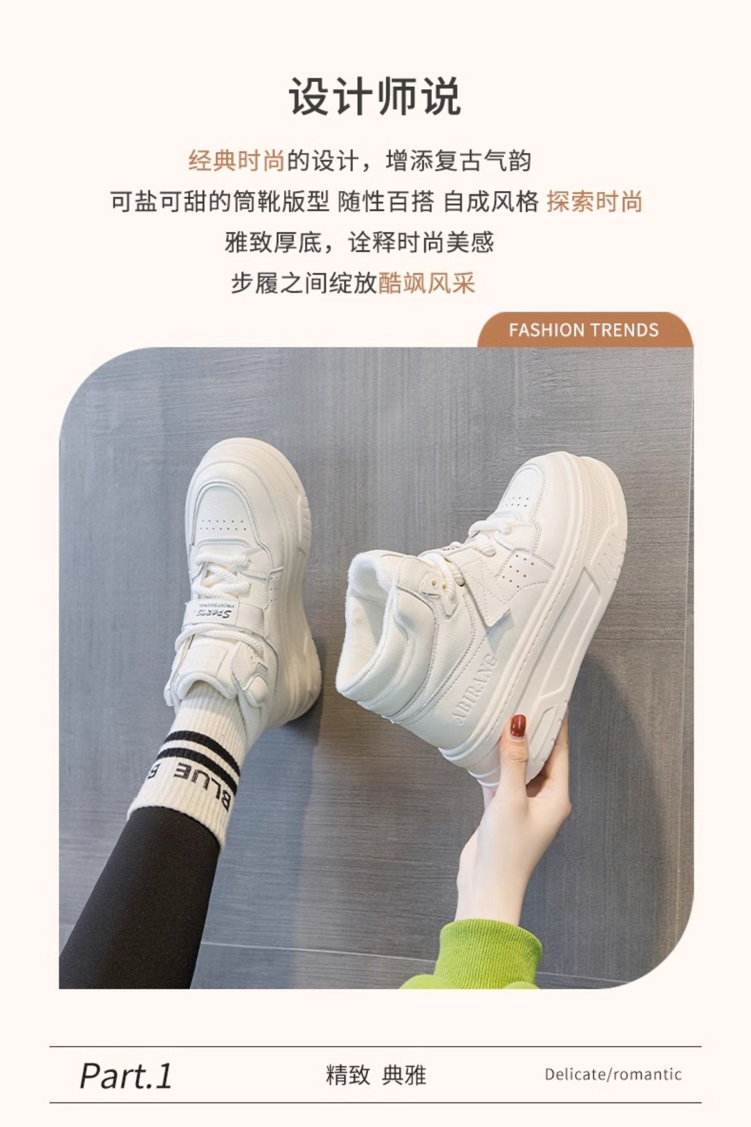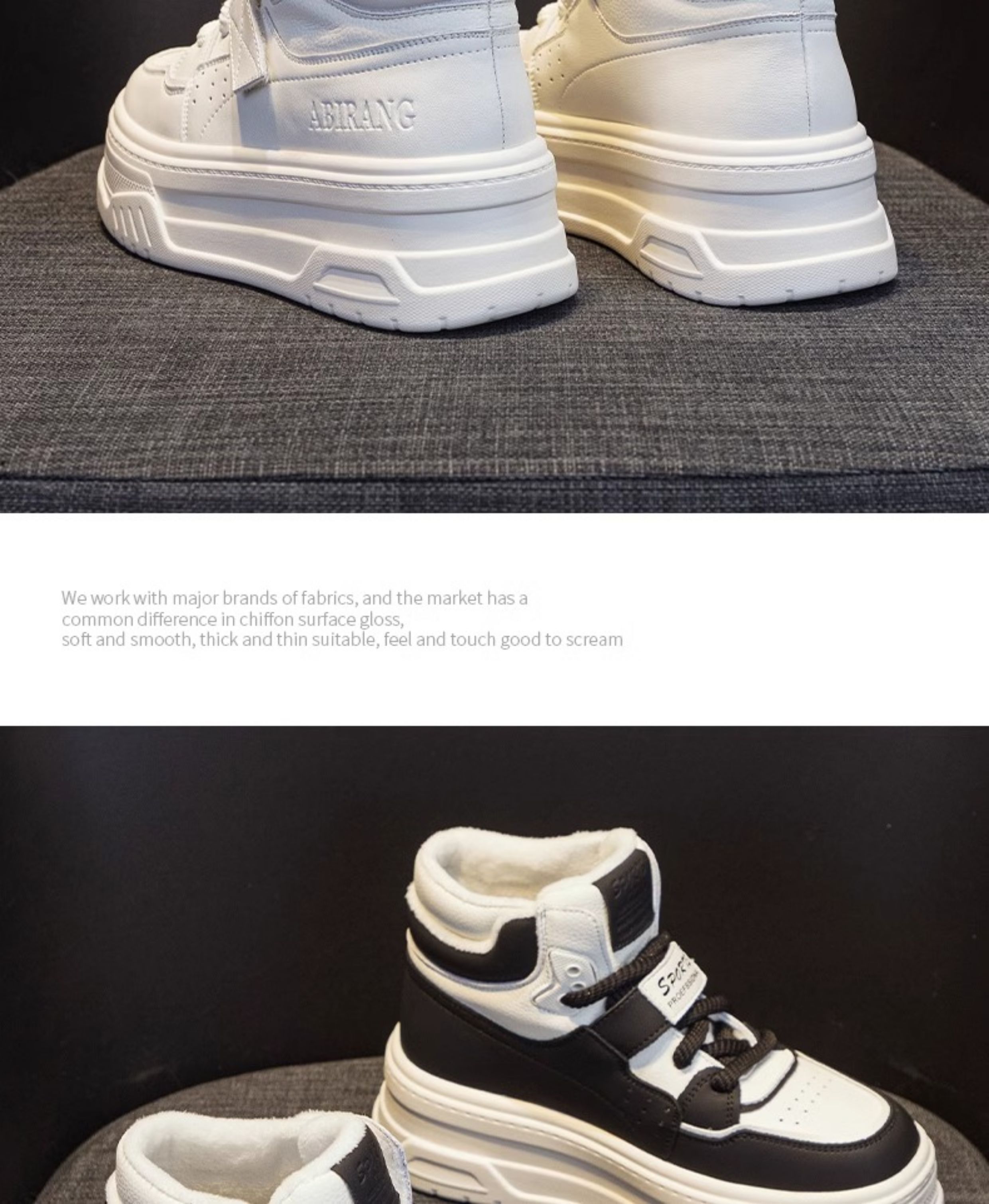 Hong Kong Genuine Leather White High-Top Shoes for Women 2025 New Spring Thick-Soled Versatile Velcro Sports Casual Sneakers
