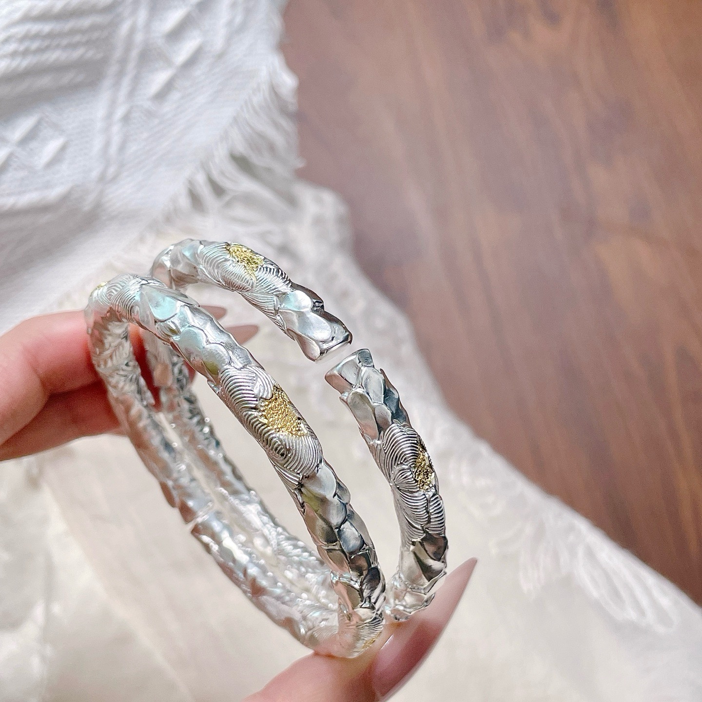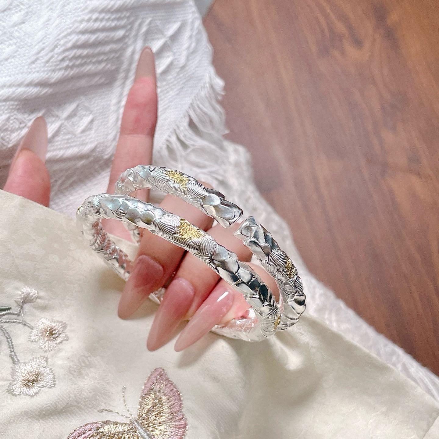 Round Stick Peony Foot Silver 9999 Gold Peony Flower Bracelet Women's New Chinese Exquisite Easiest for match Silver Bracelet as Gift