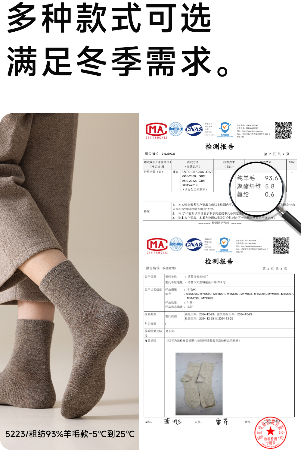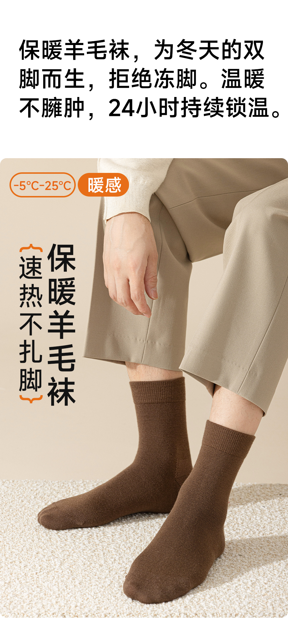 93% Pure Wool Socks for Men and Women, Autumn and Winter Warm Mid-Calf Socks, Fleece-Lined and Thickened, Suitable for the Elderly in Cold Weather, Cashmere Socks