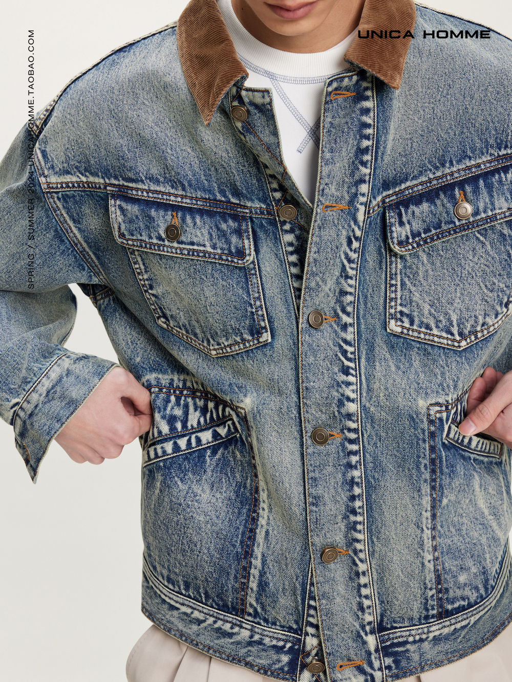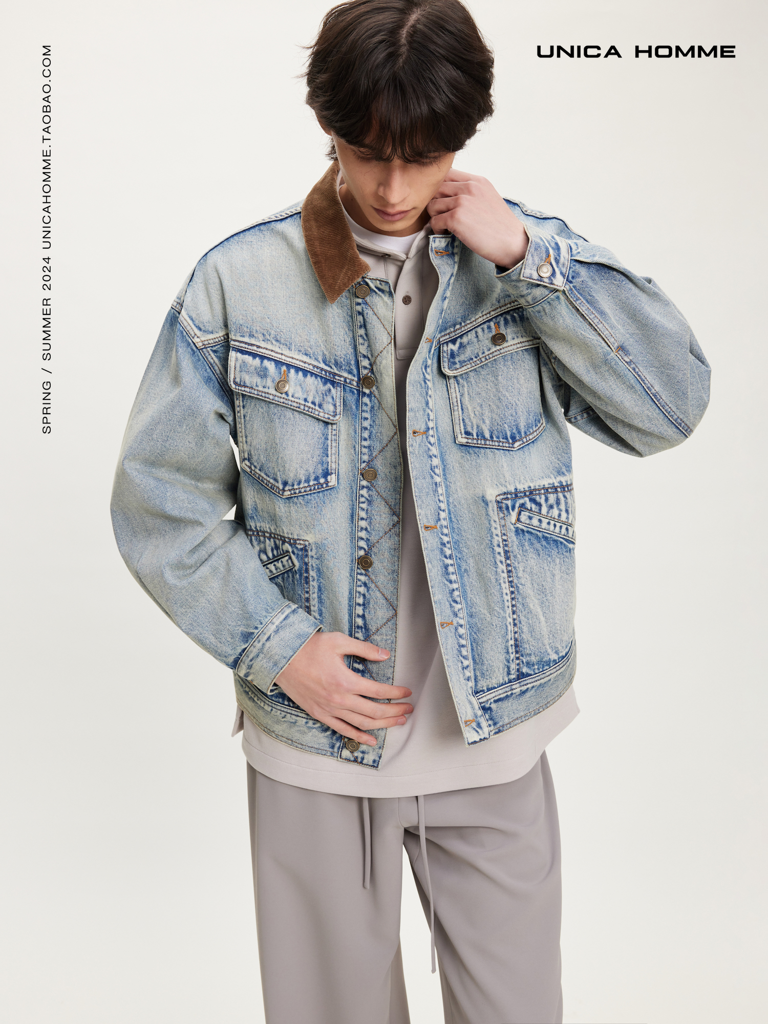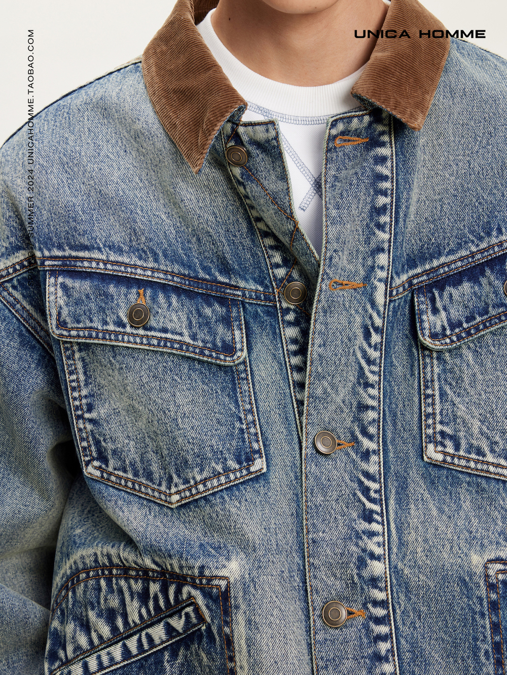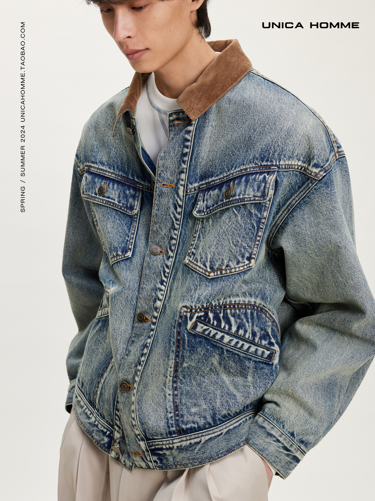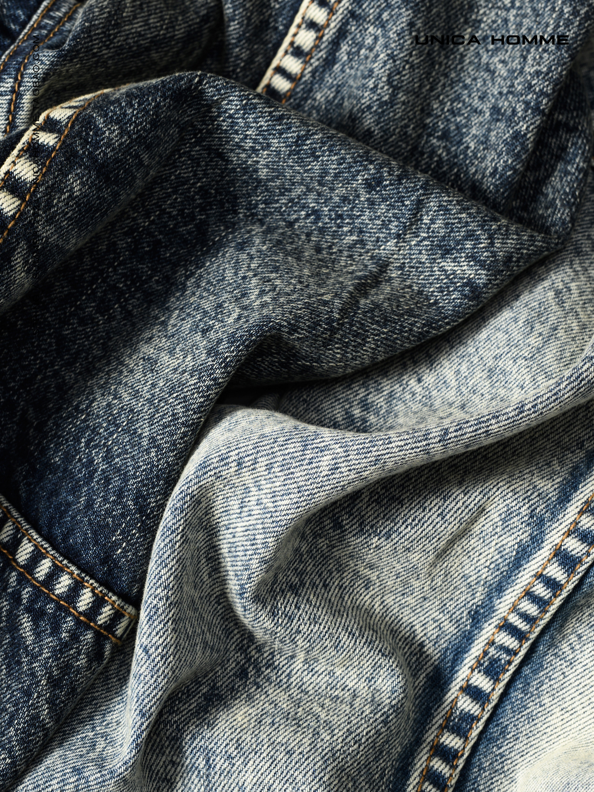 Unica Homme/Retro Storm Rider Denim Jacket Men's Trendy Brand Workwear