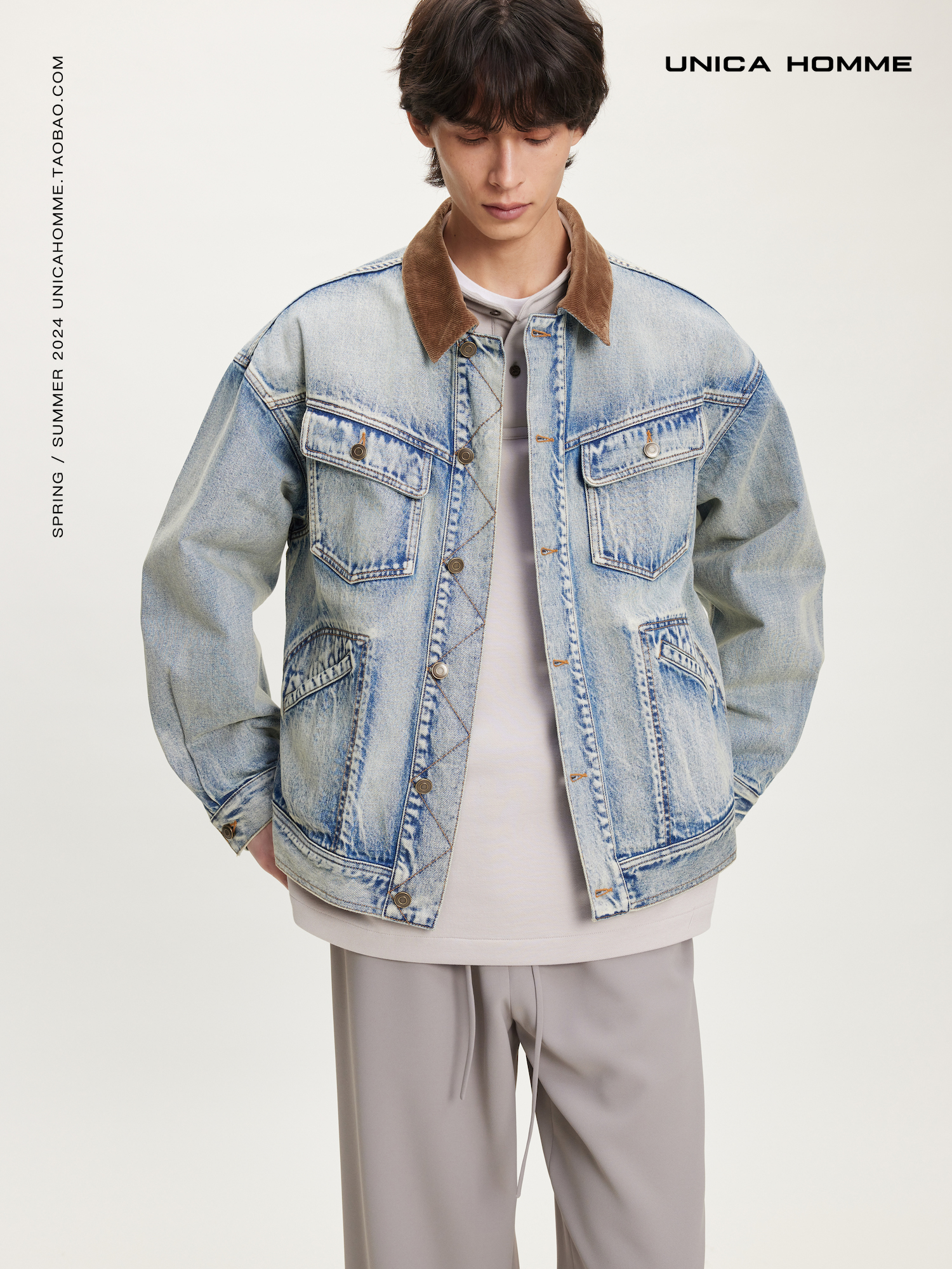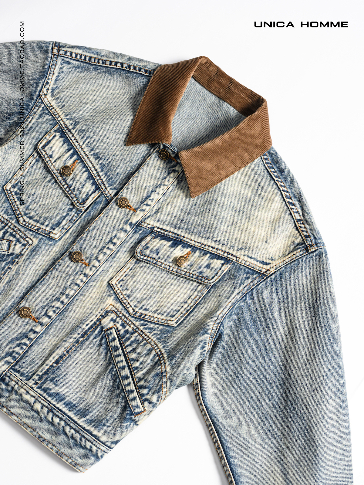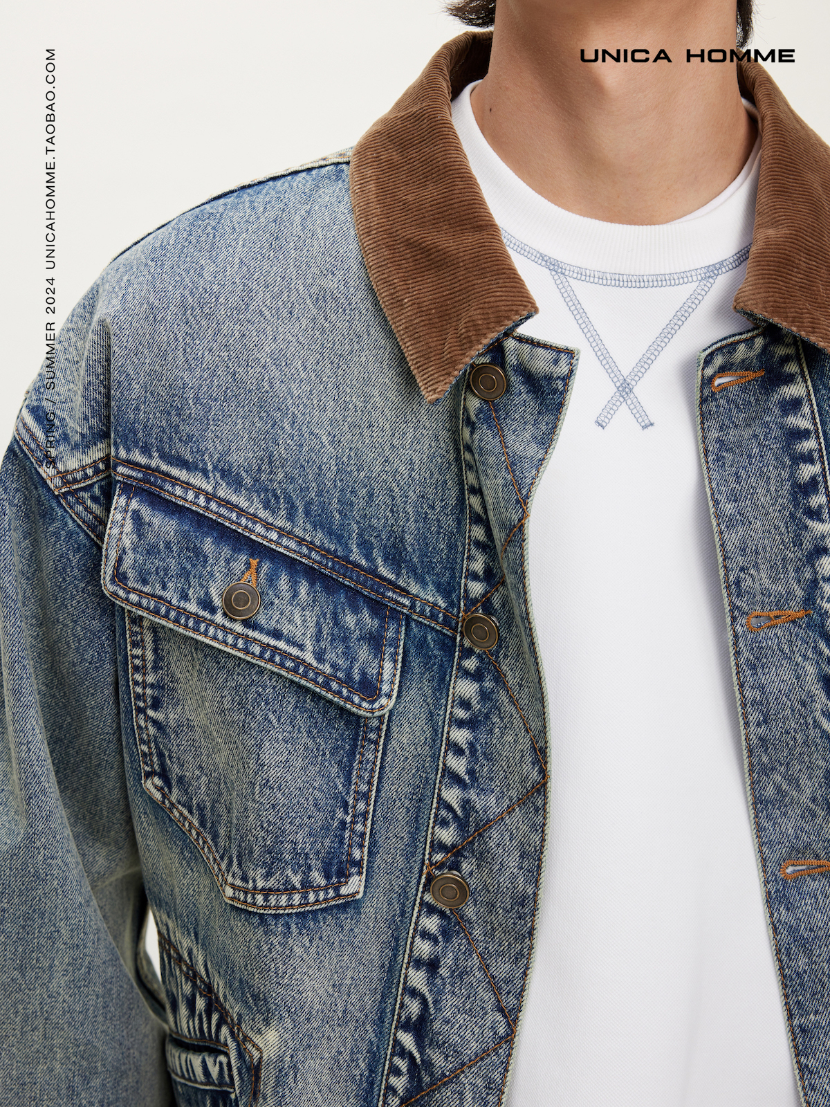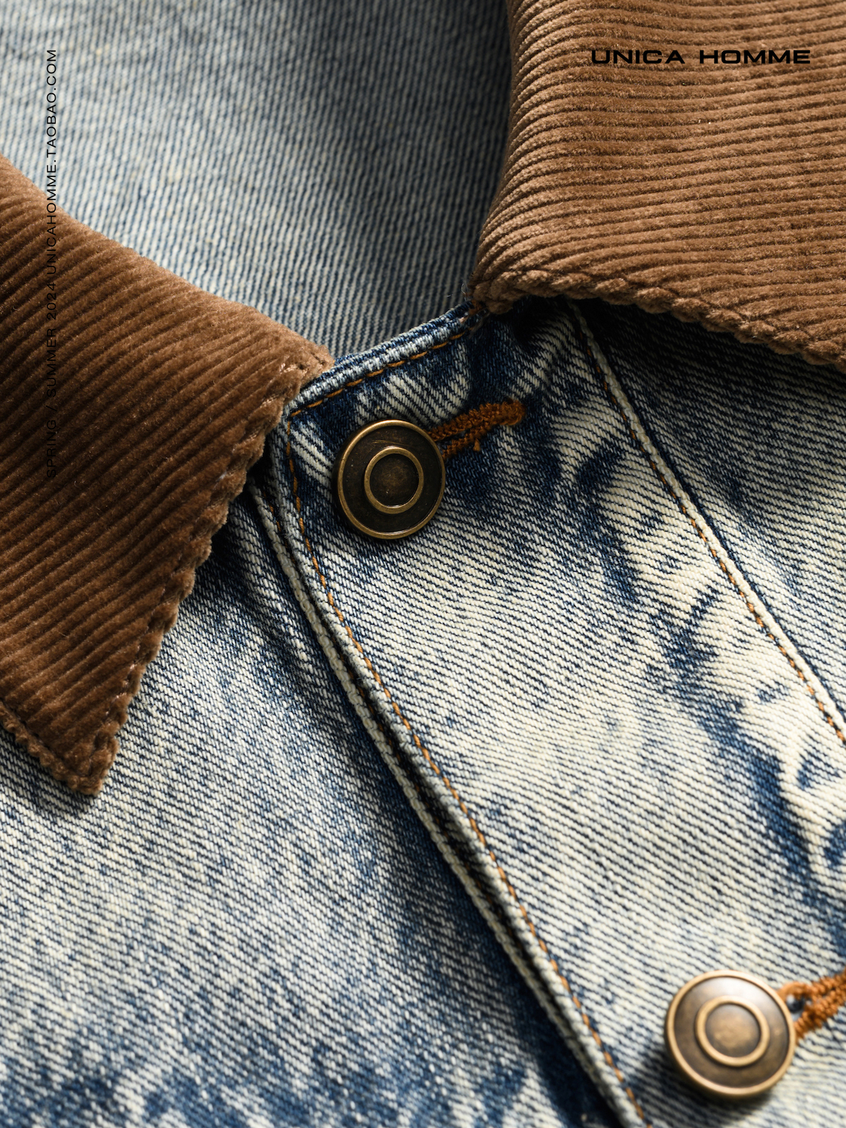 Unica Homme/Retro Storm Rider Denim Jacket Men's Trendy Brand Workwear