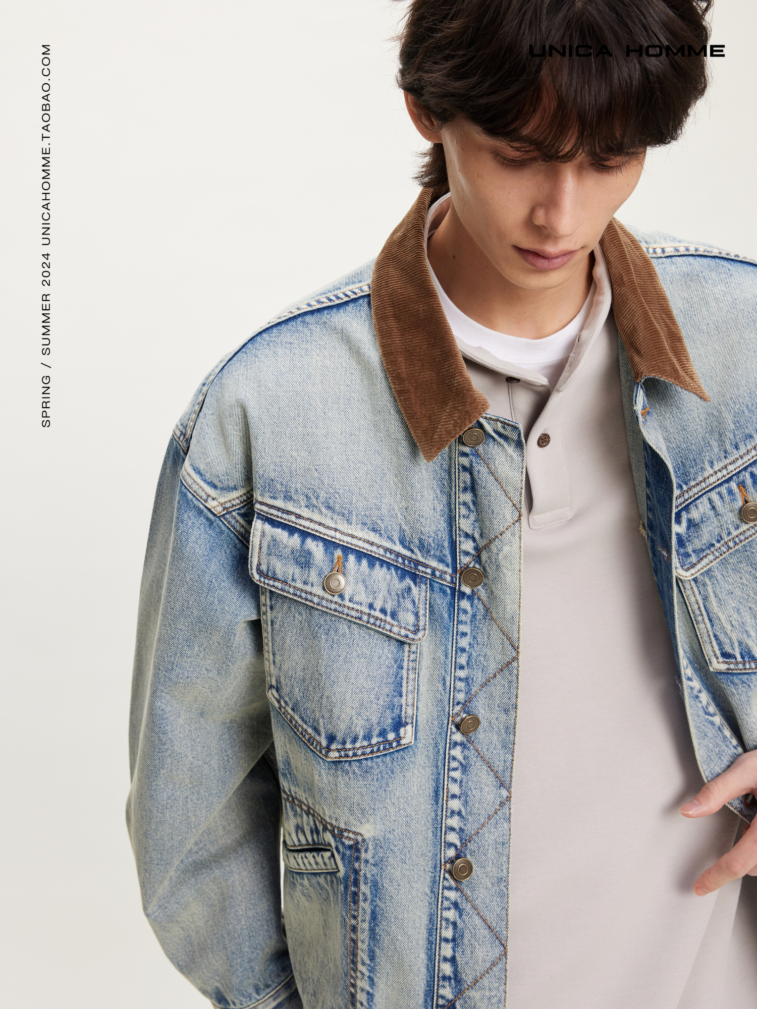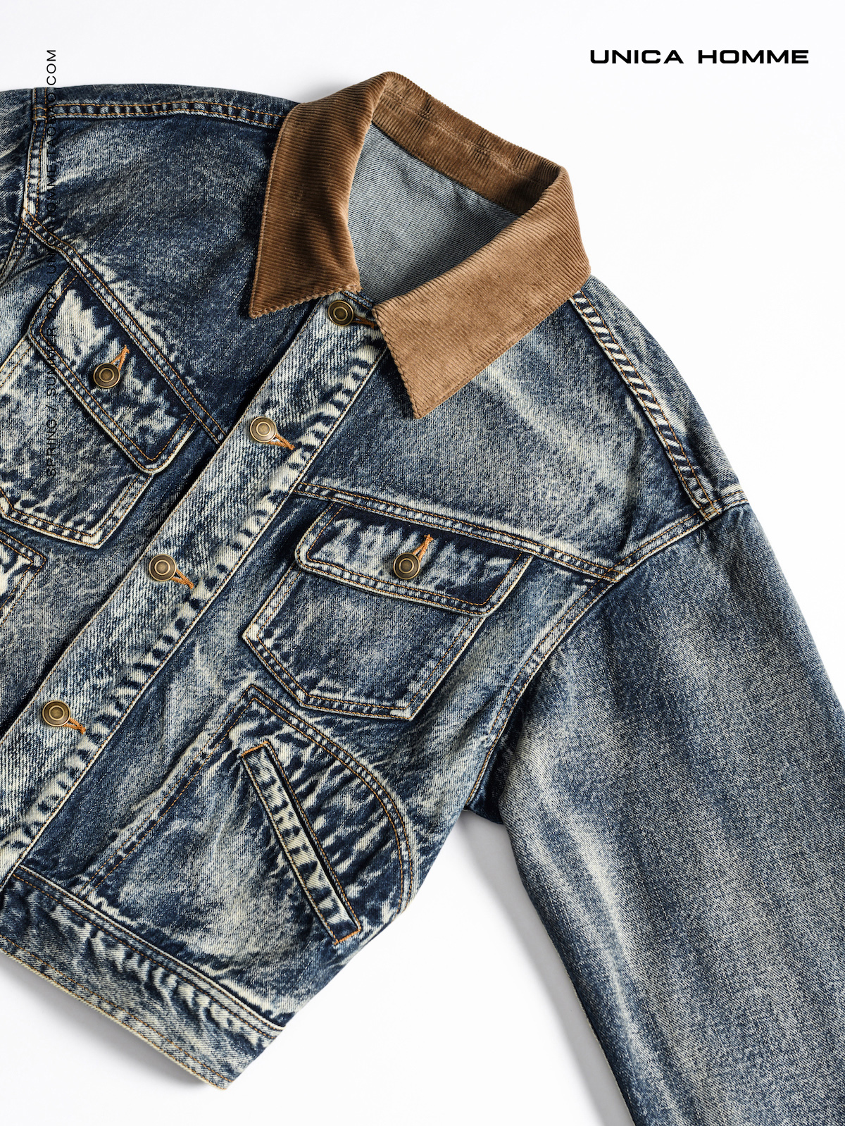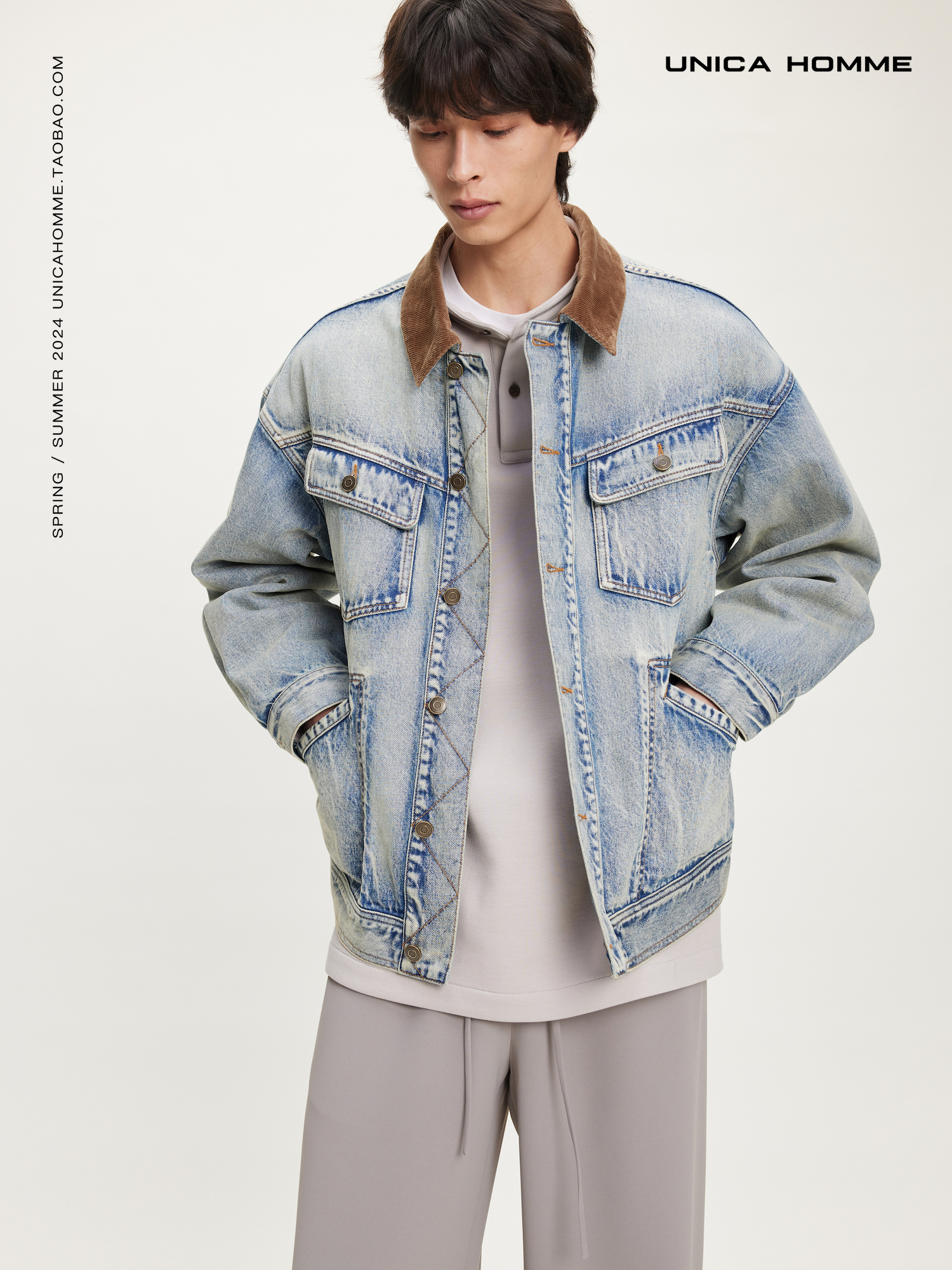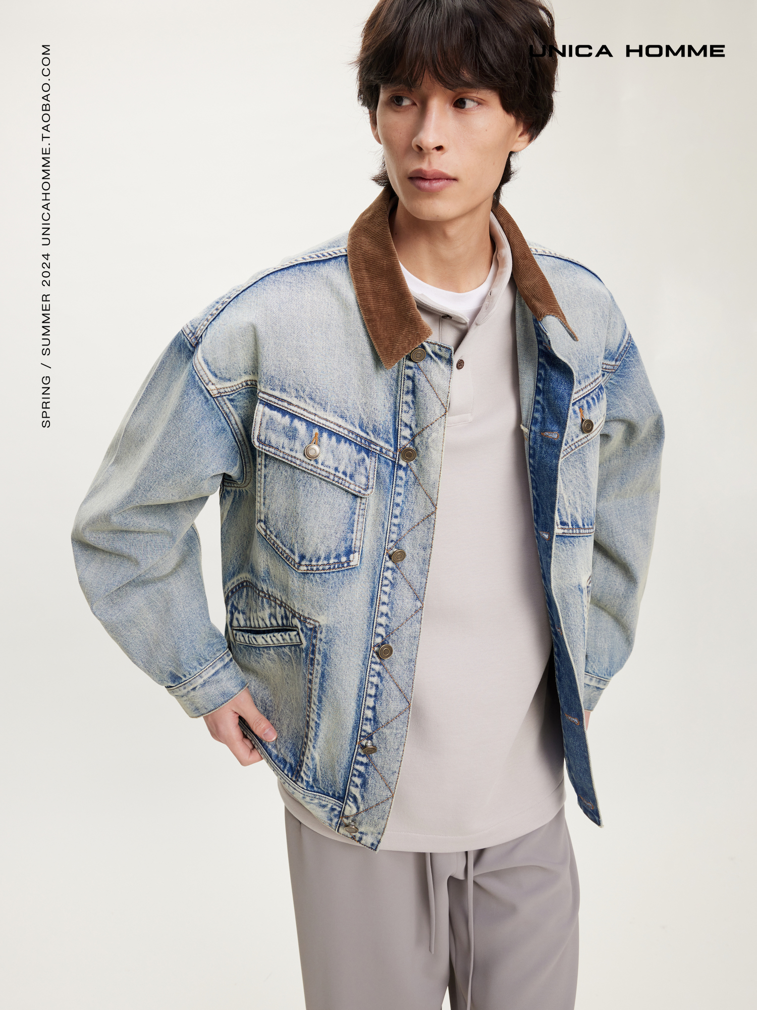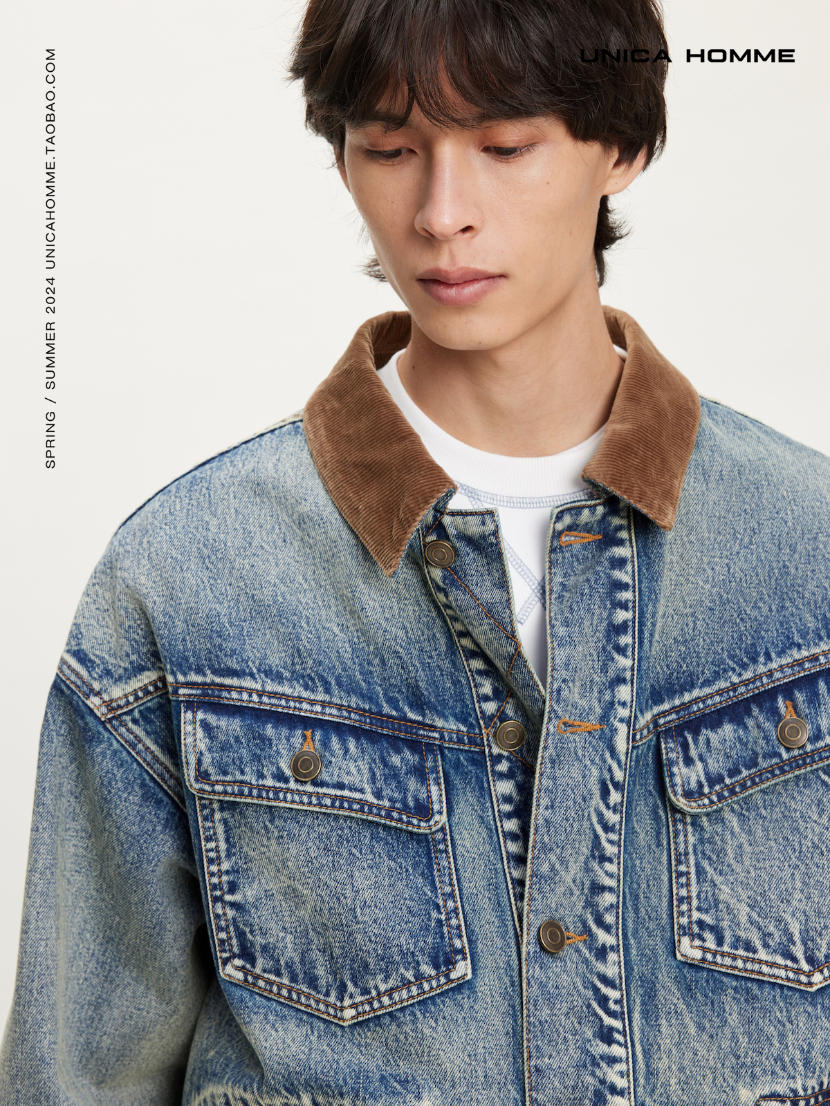 Unica Homme/Retro Storm Rider Denim Jacket Men's Trendy Brand Workwear