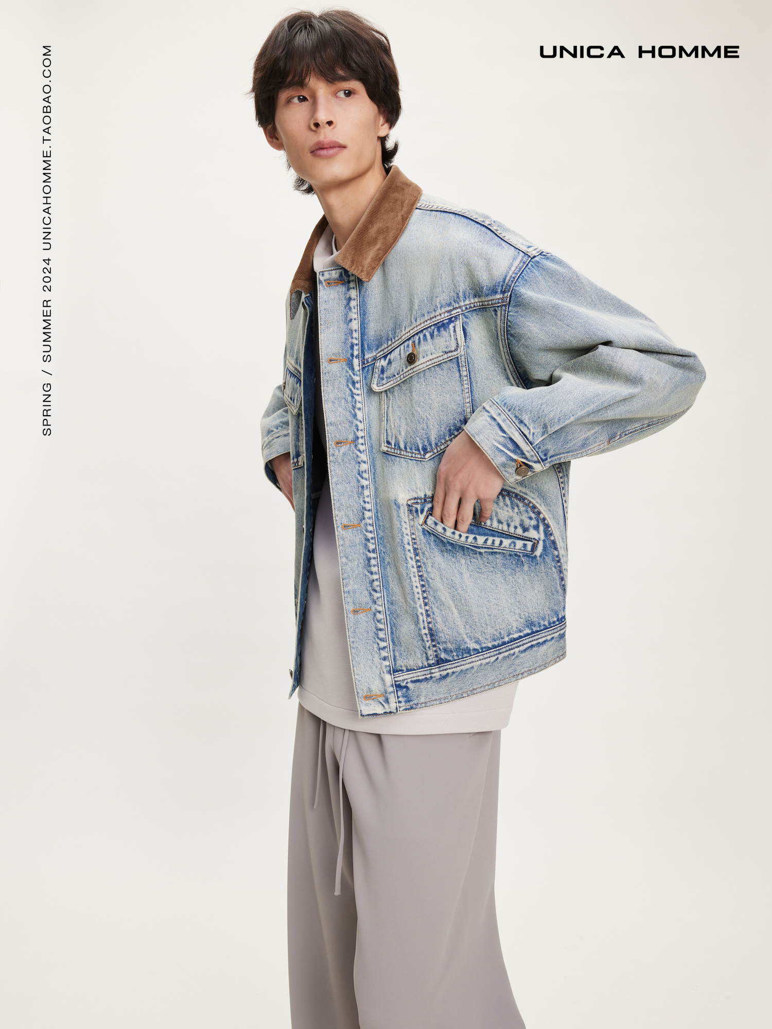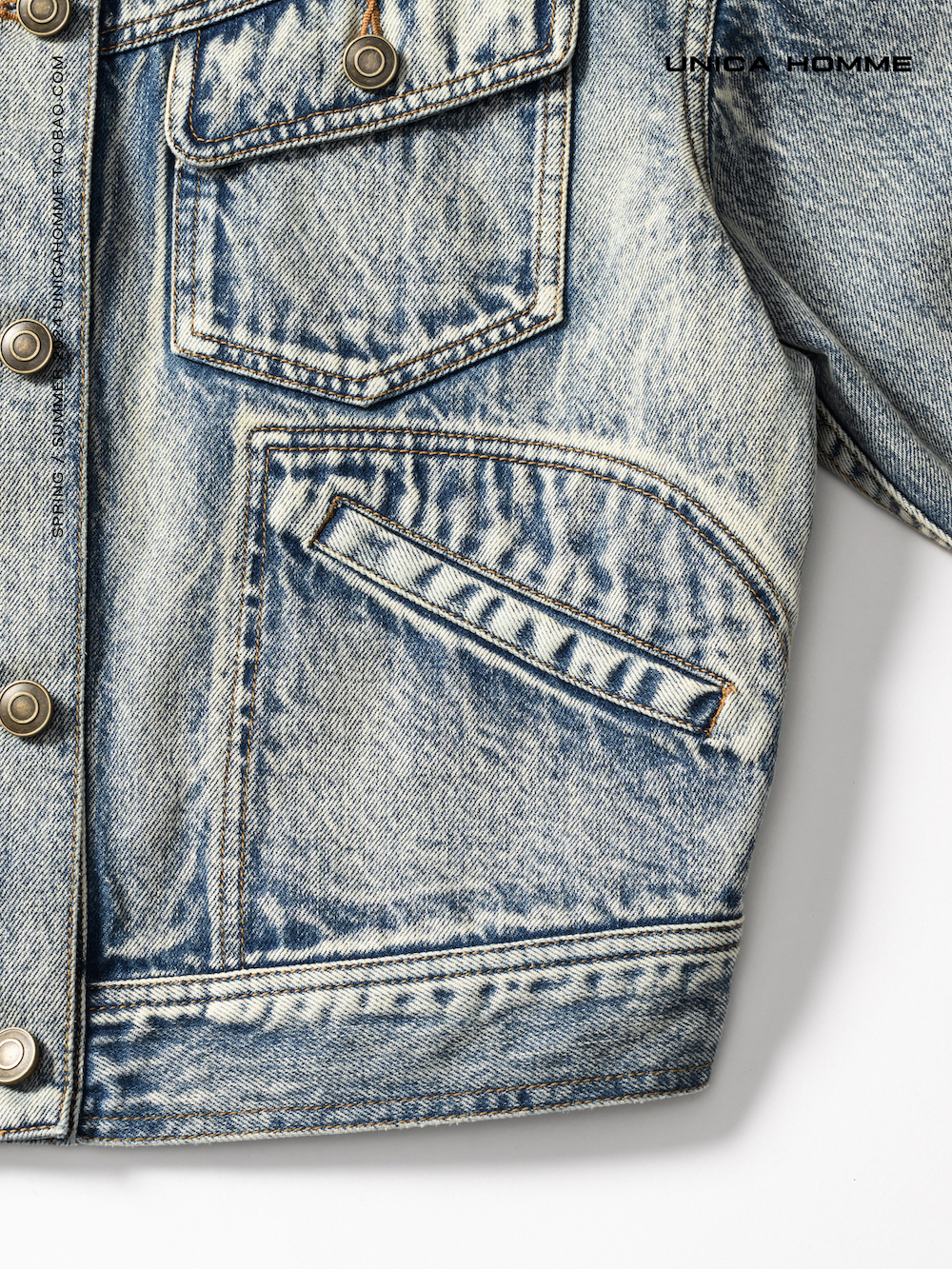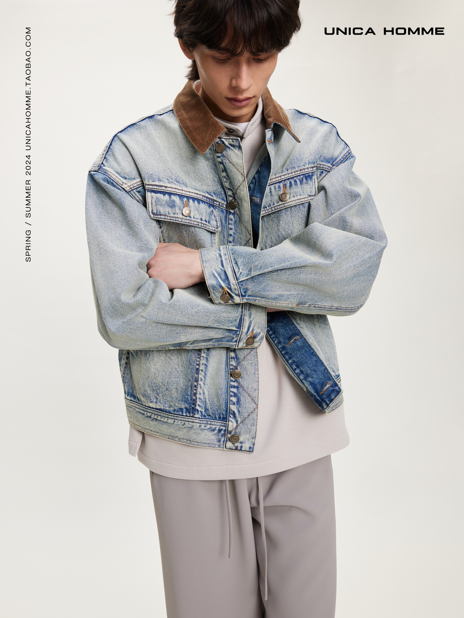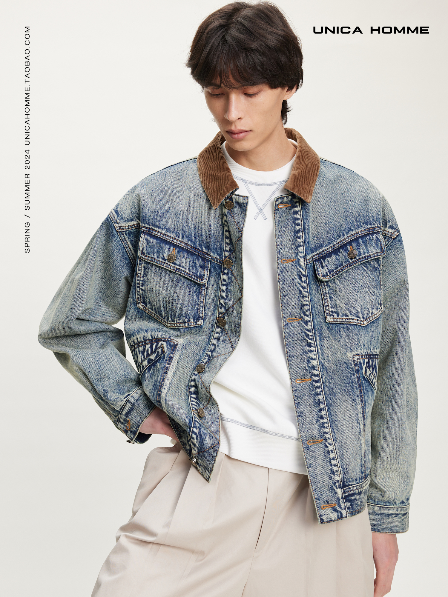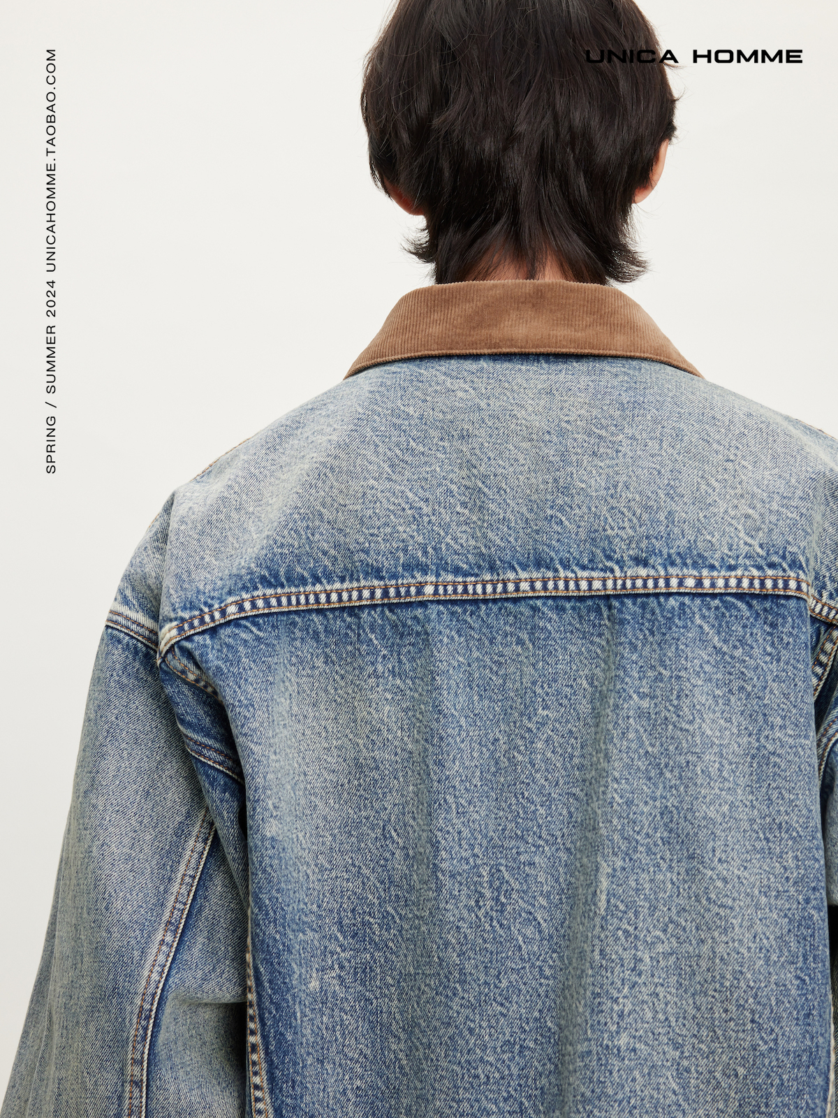 Unica Homme/Retro Storm Rider Denim Jacket Men's Trendy Brand Workwear