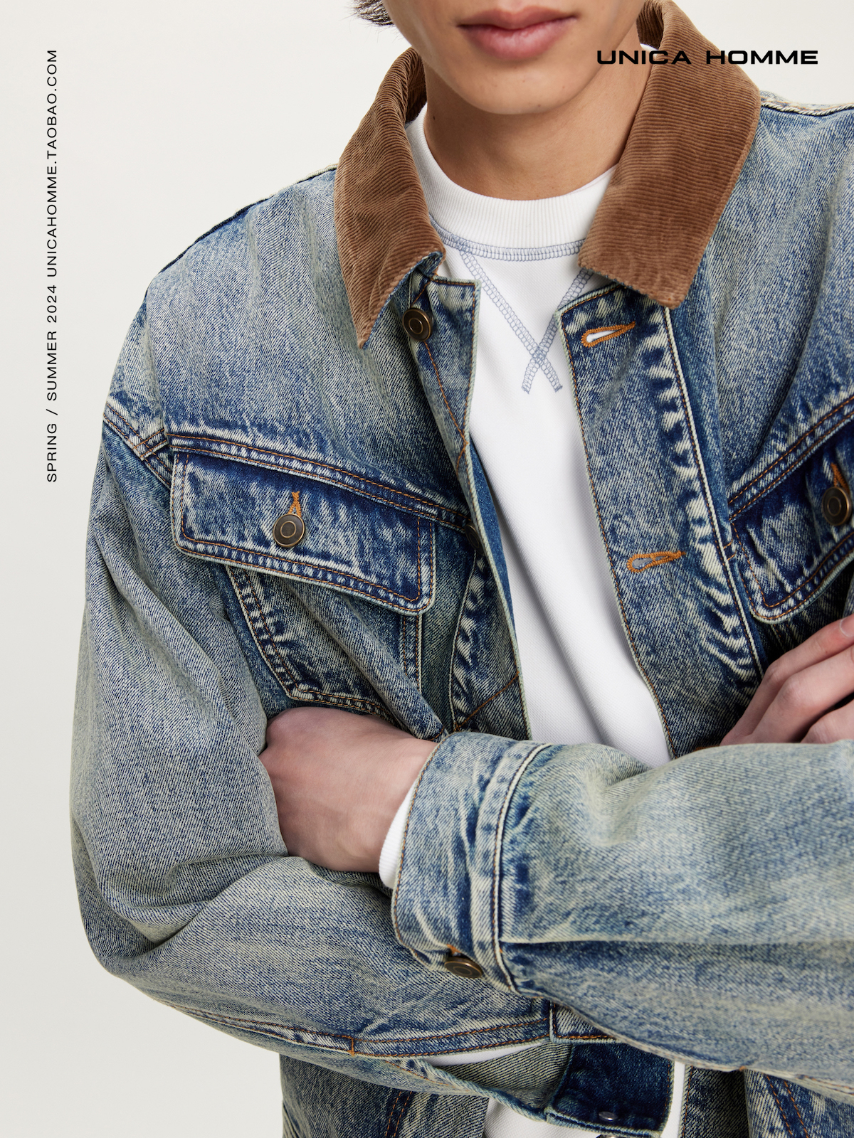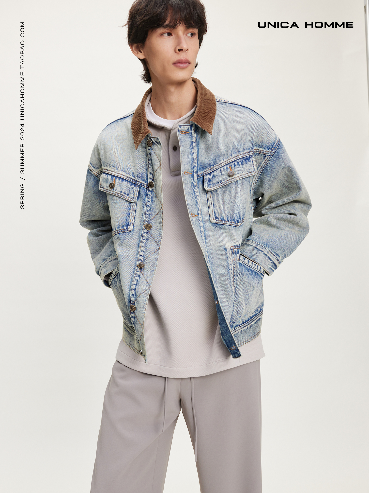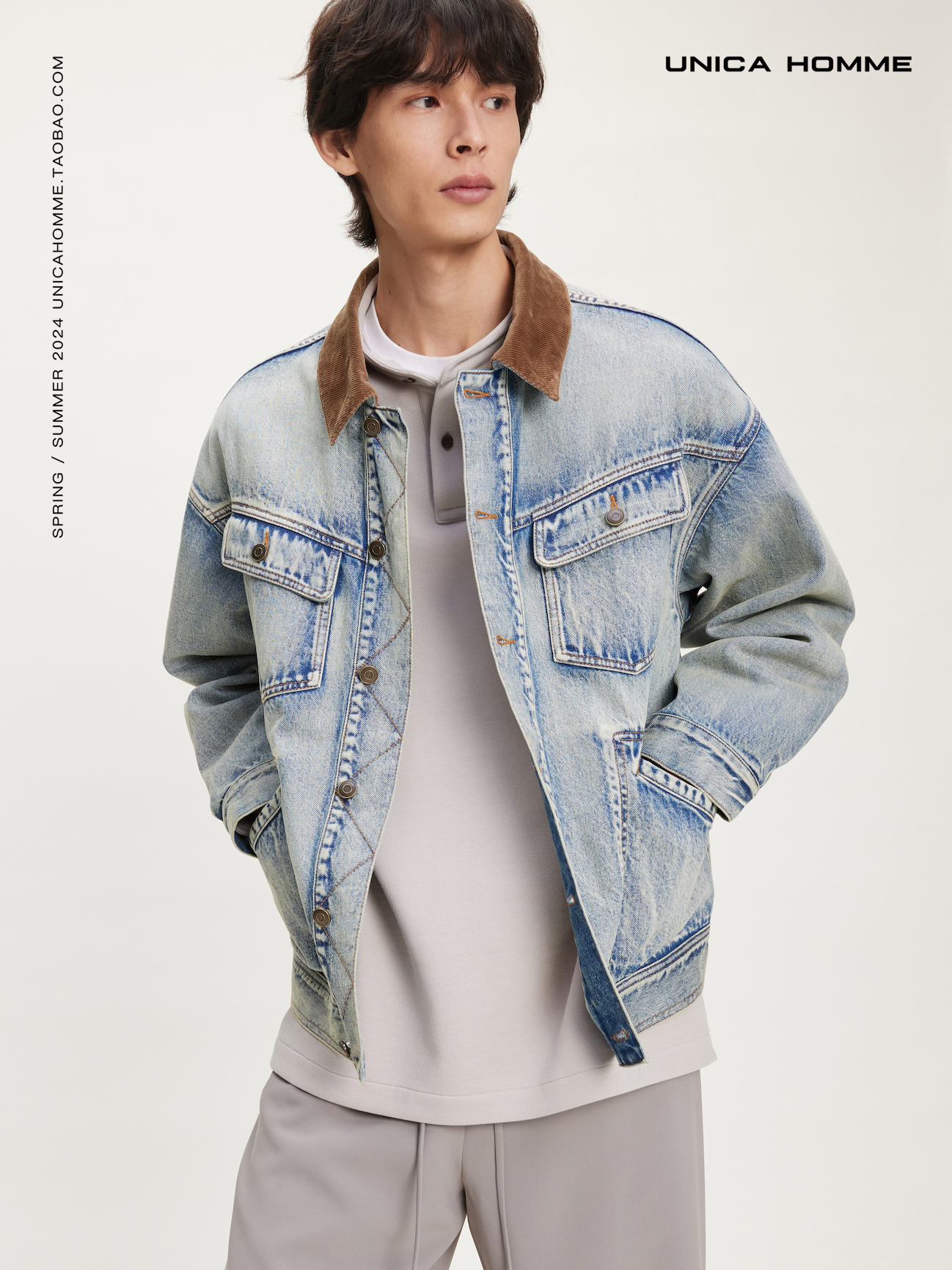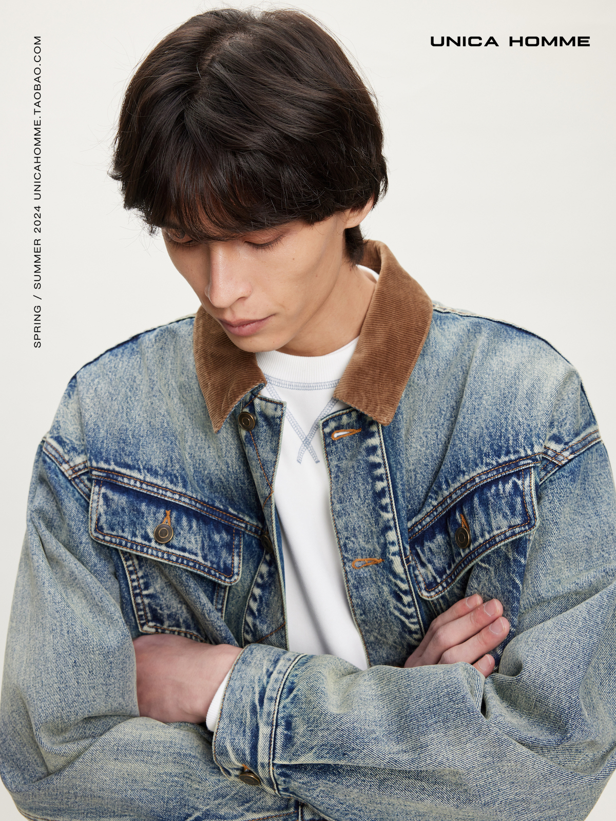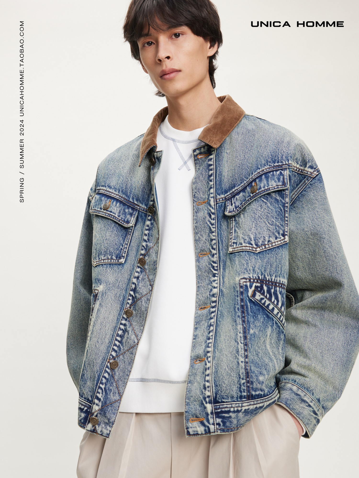 Unica Homme/Retro Storm Rider Denim Jacket Men's Trendy Brand Workwear