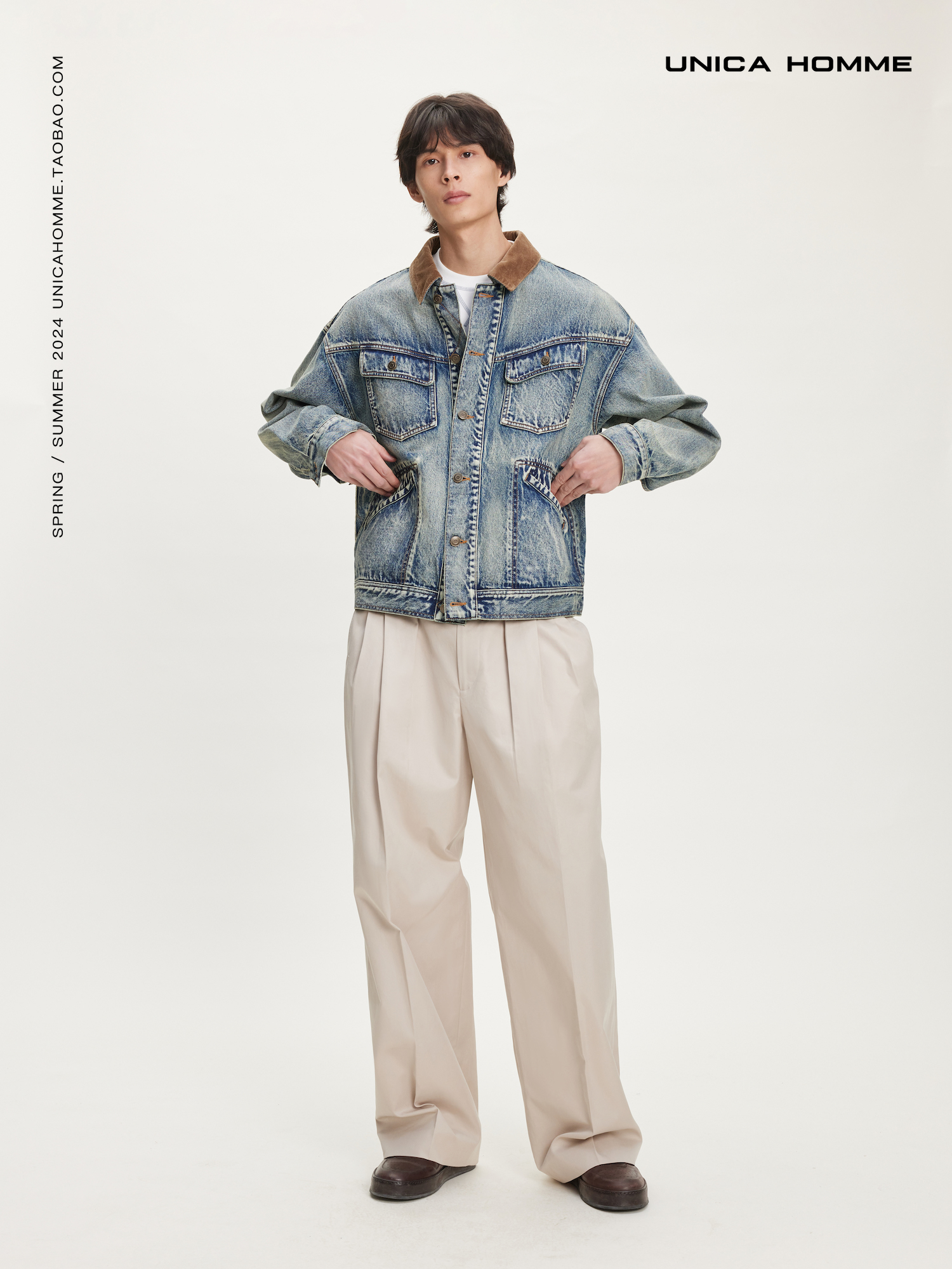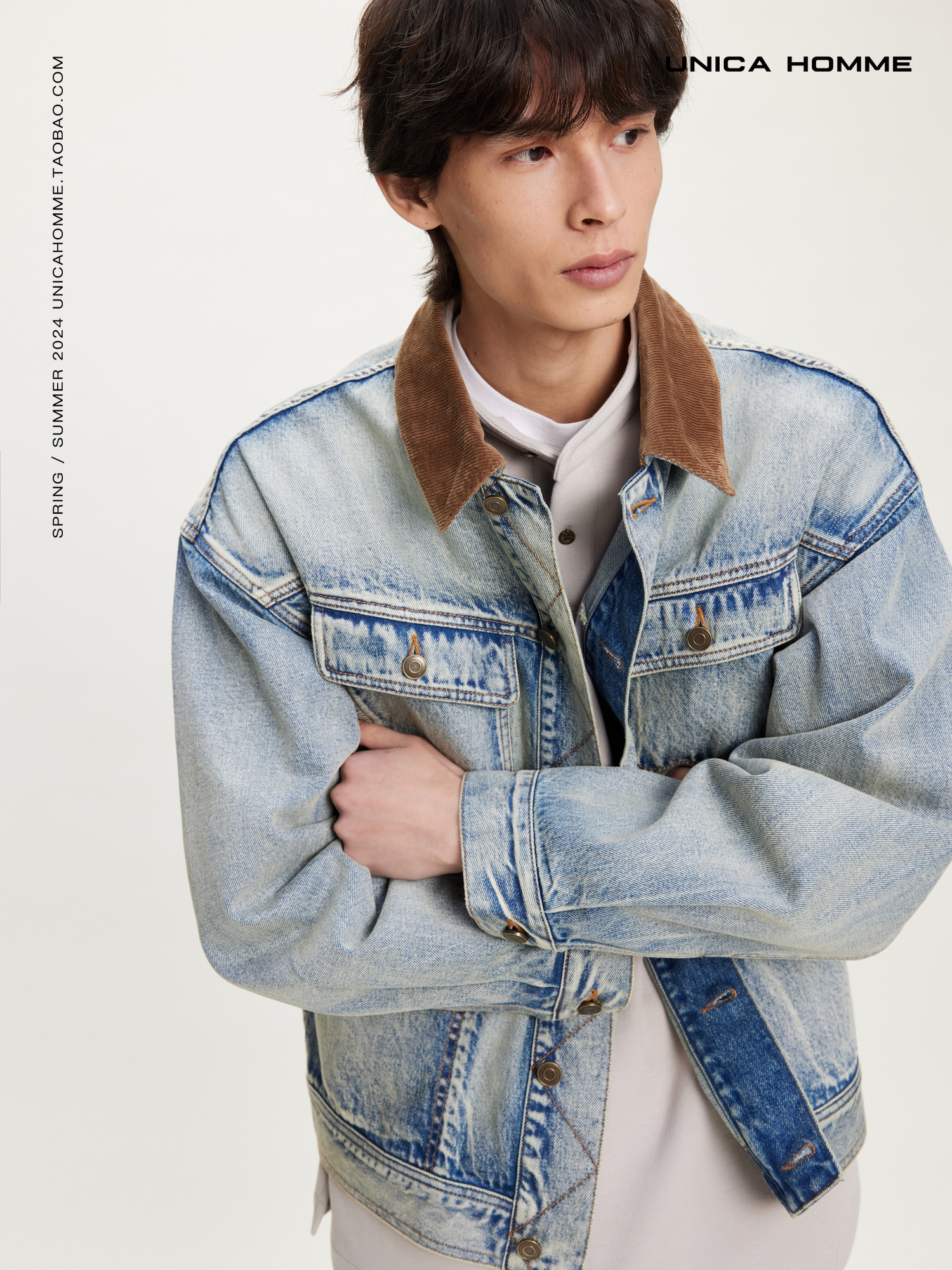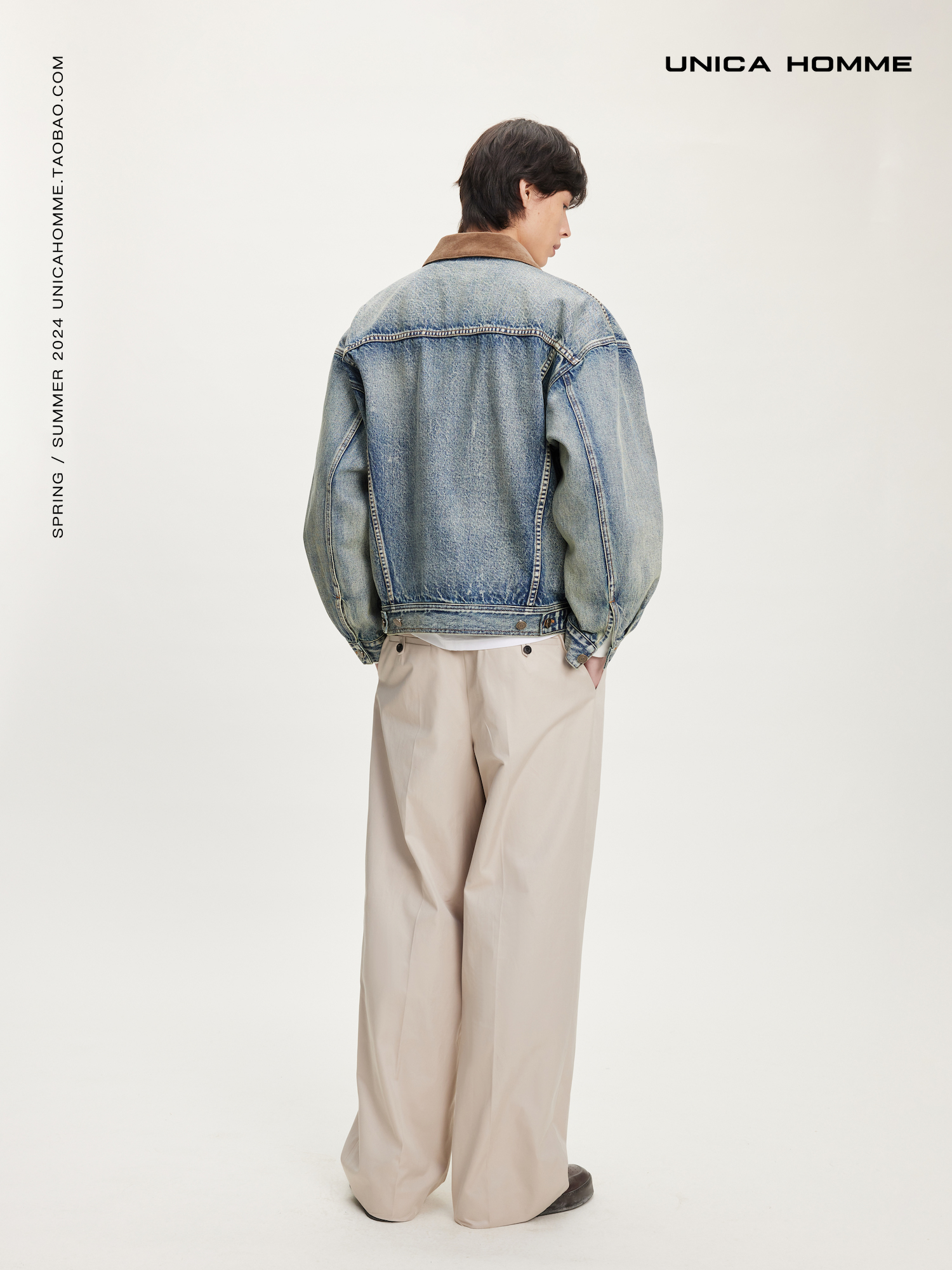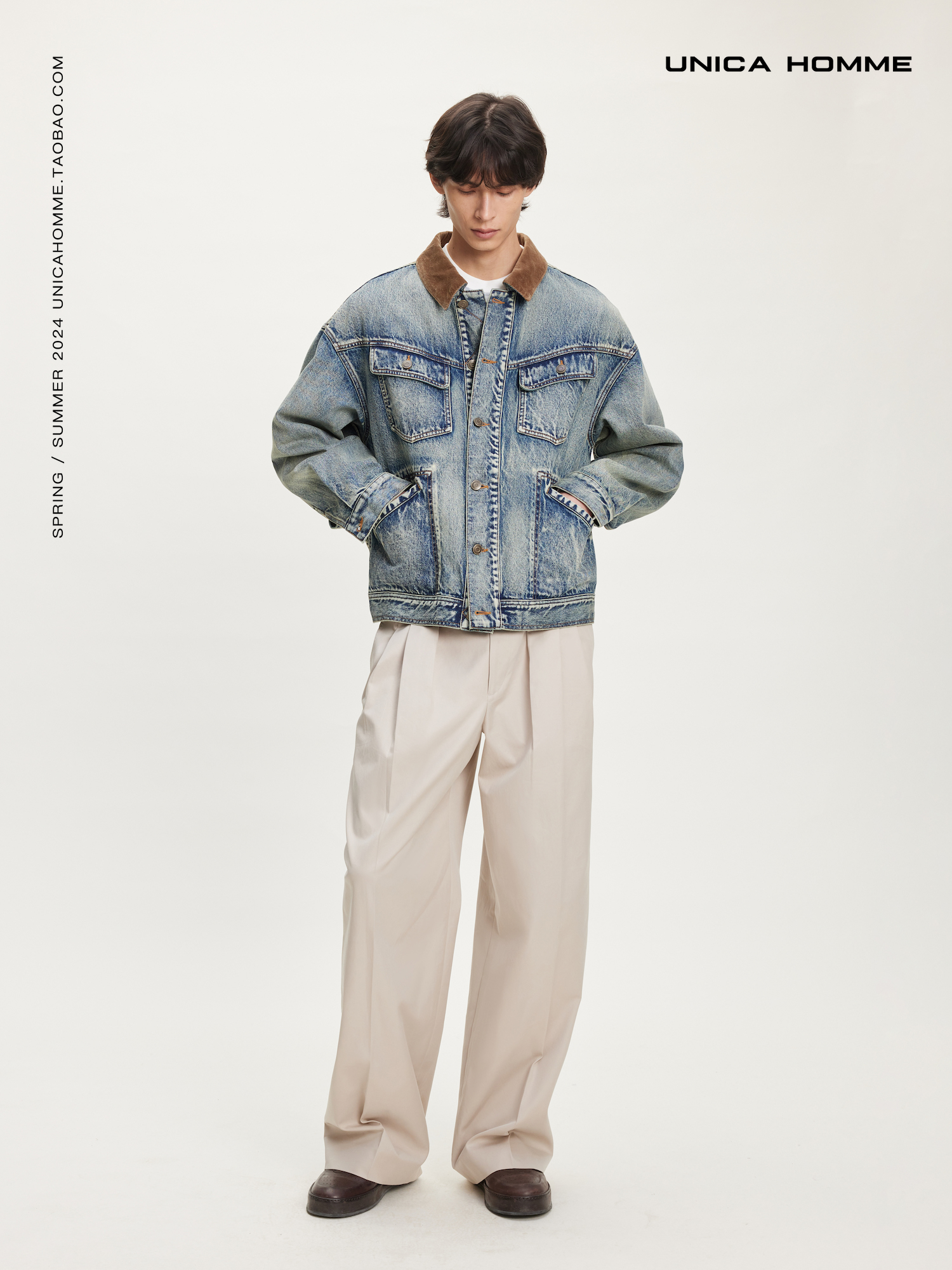 Unica Homme/Retro Storm Rider Denim Jacket Men's Trendy Brand Workwear