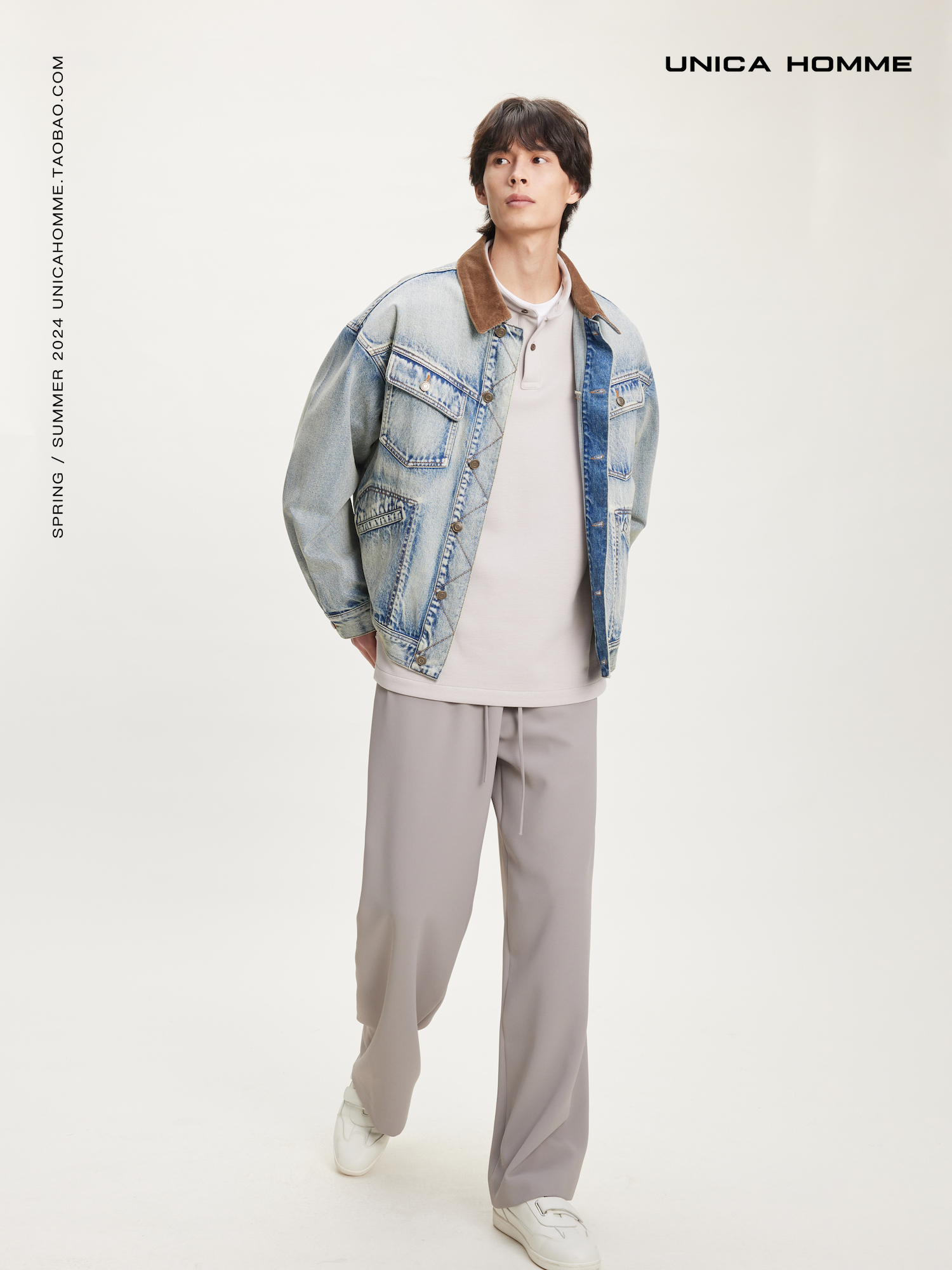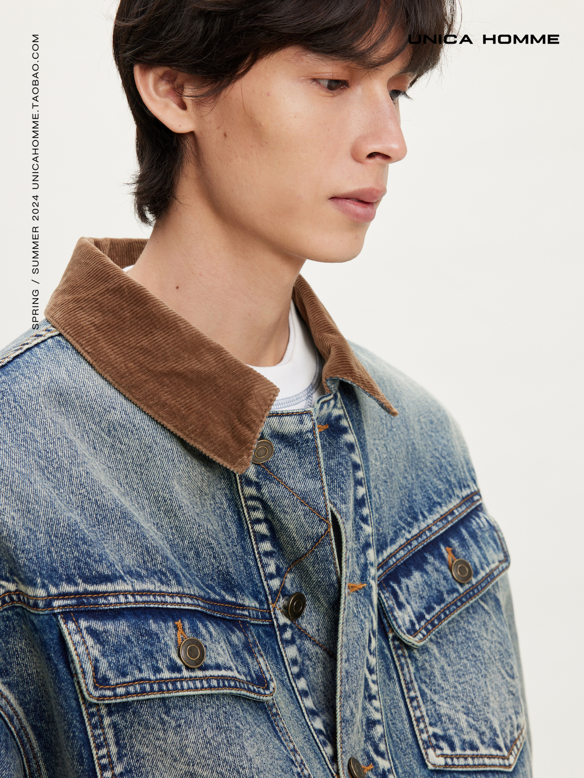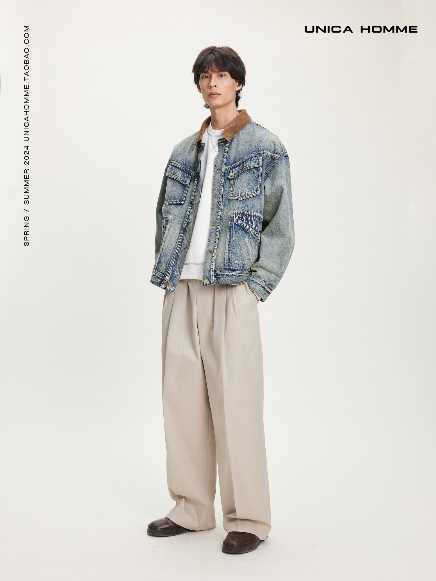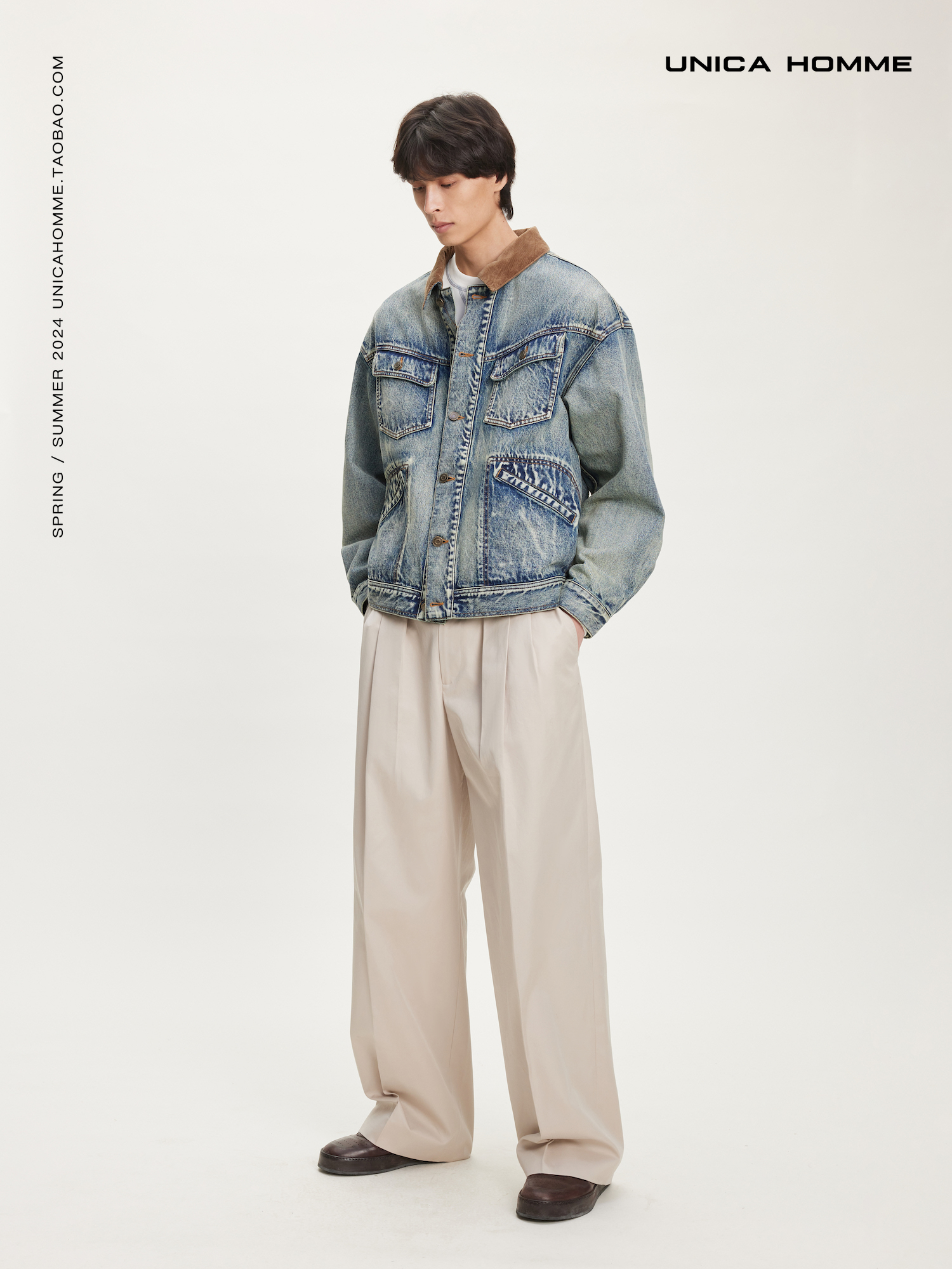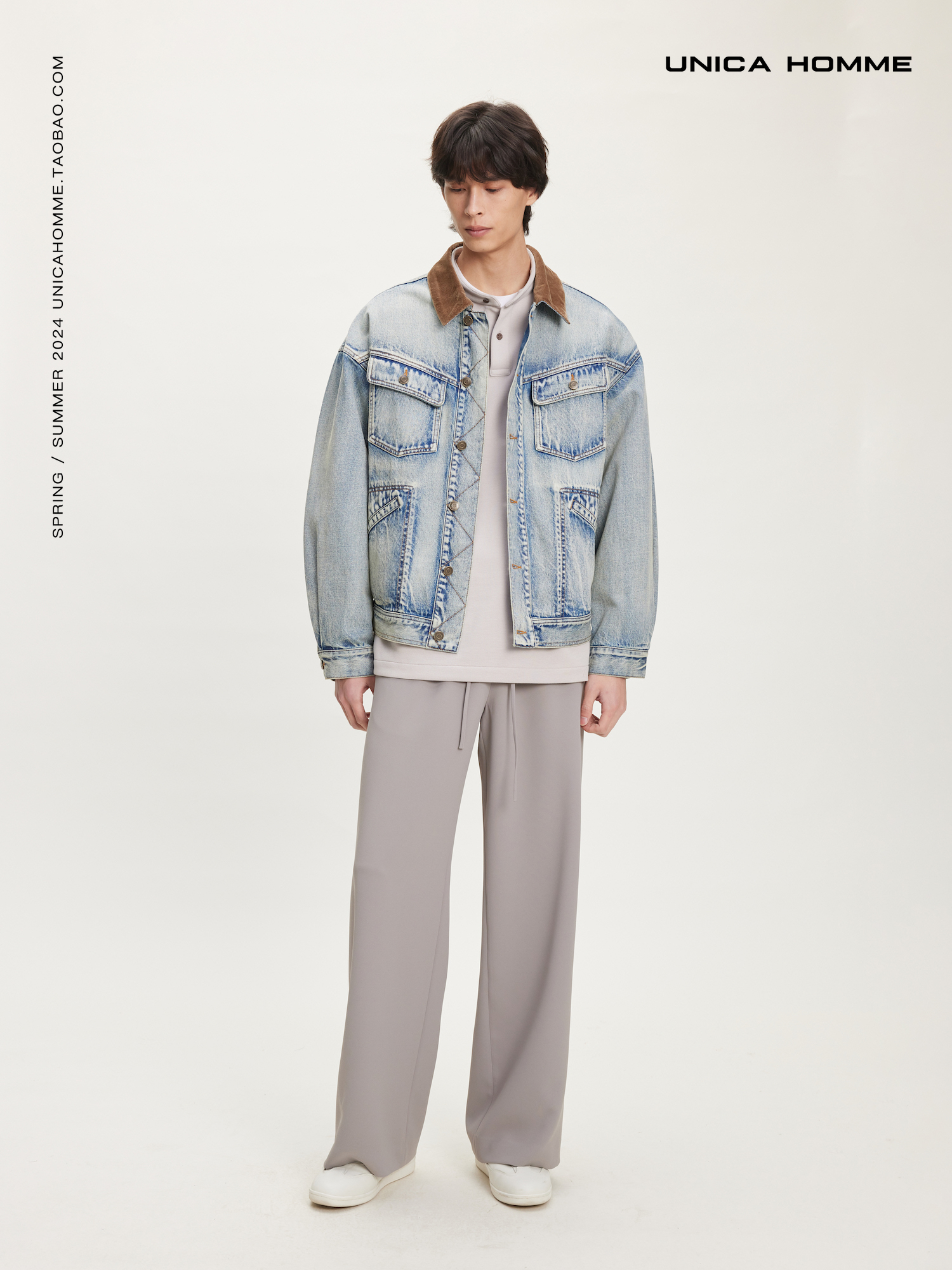 Unica Homme/Retro Storm Rider Denim Jacket Men's Trendy Brand Workwear
