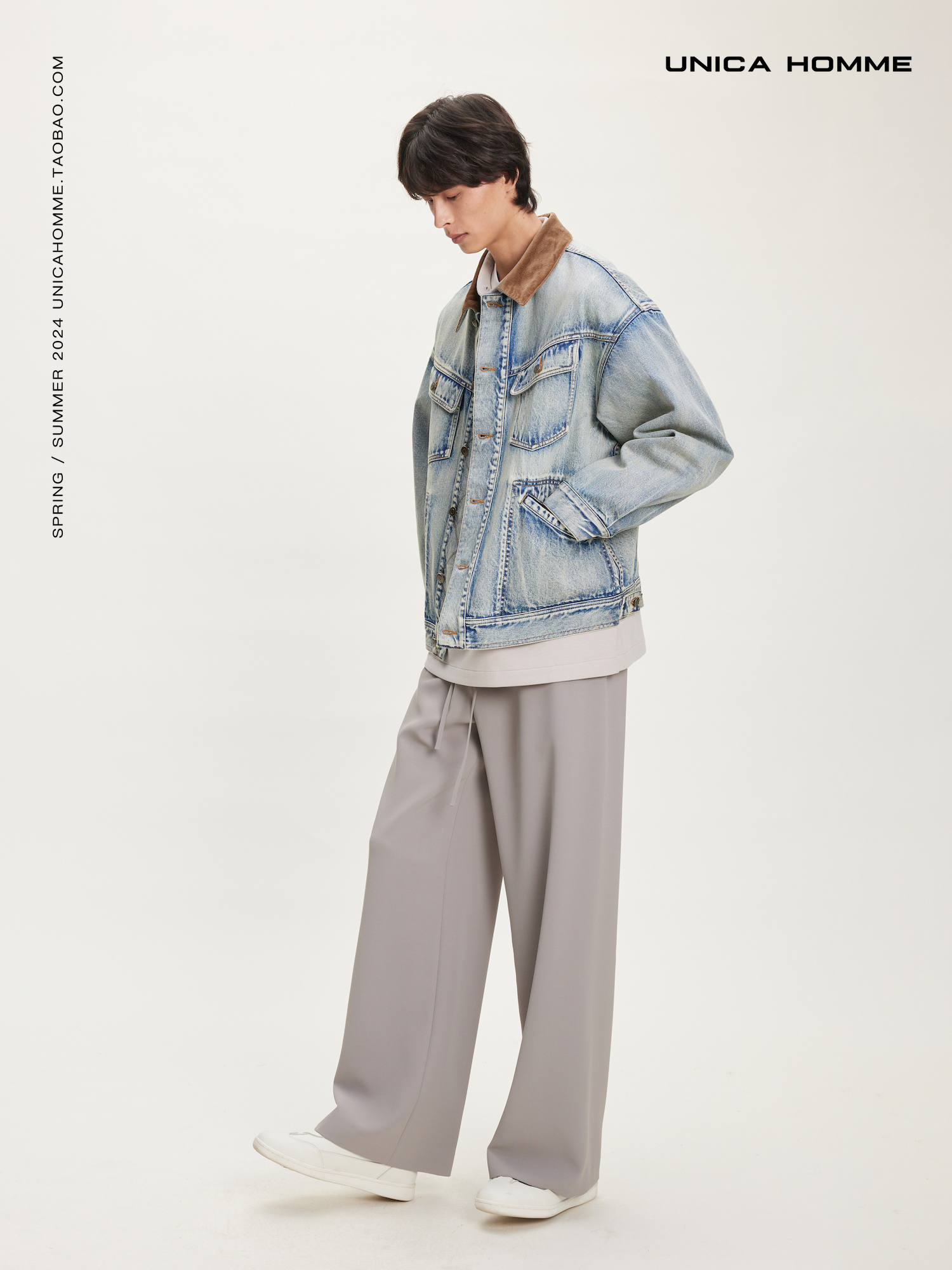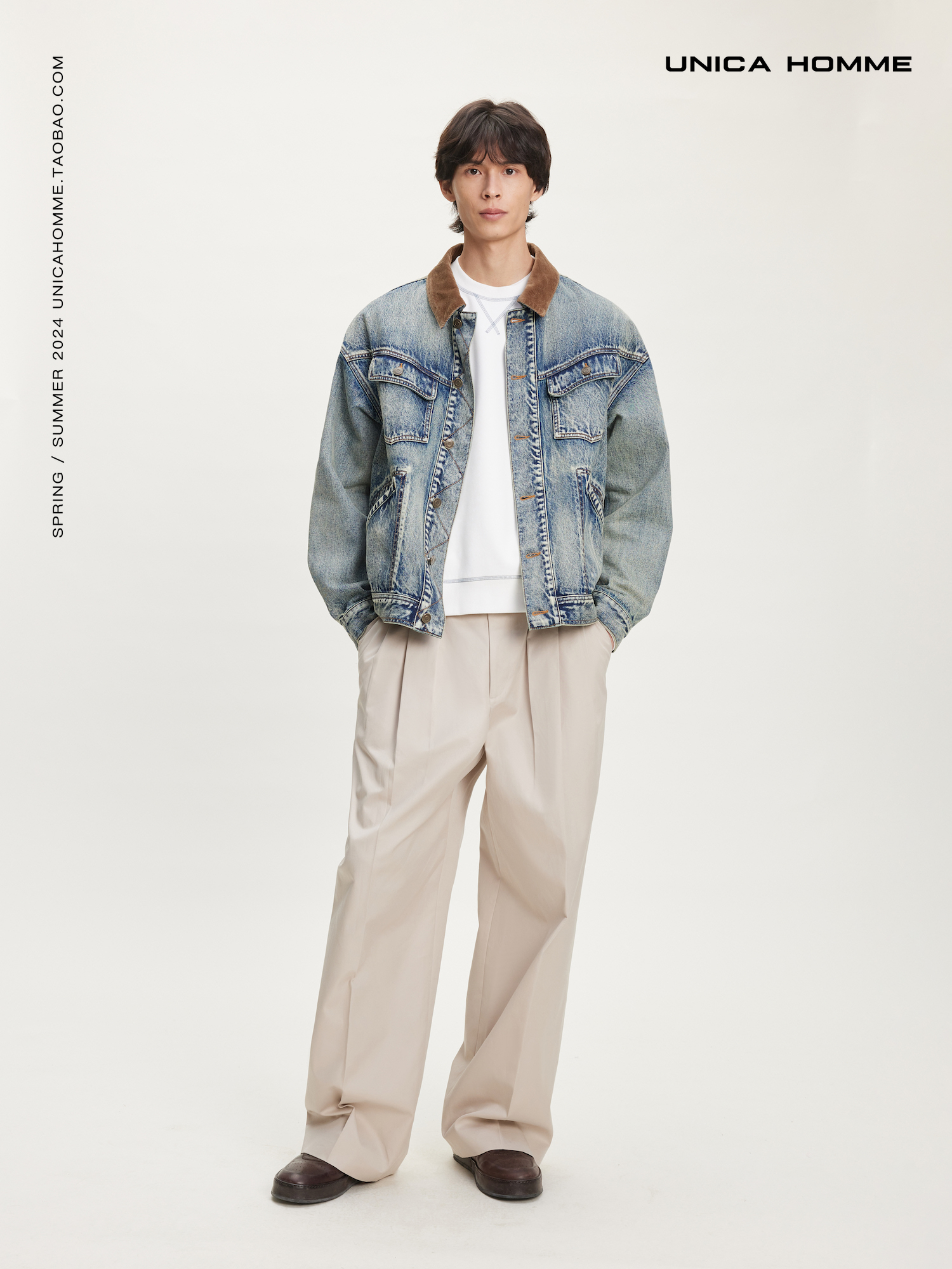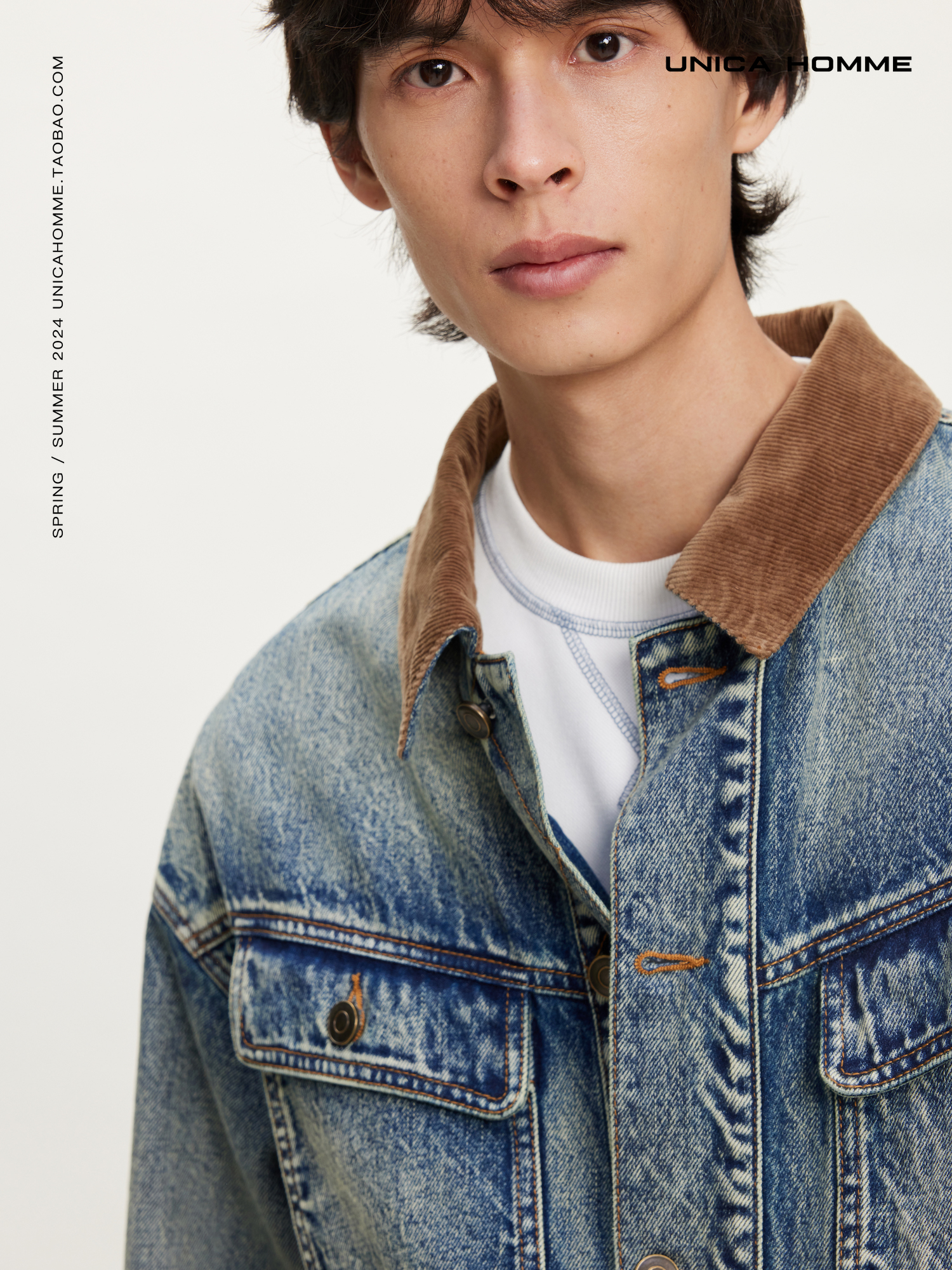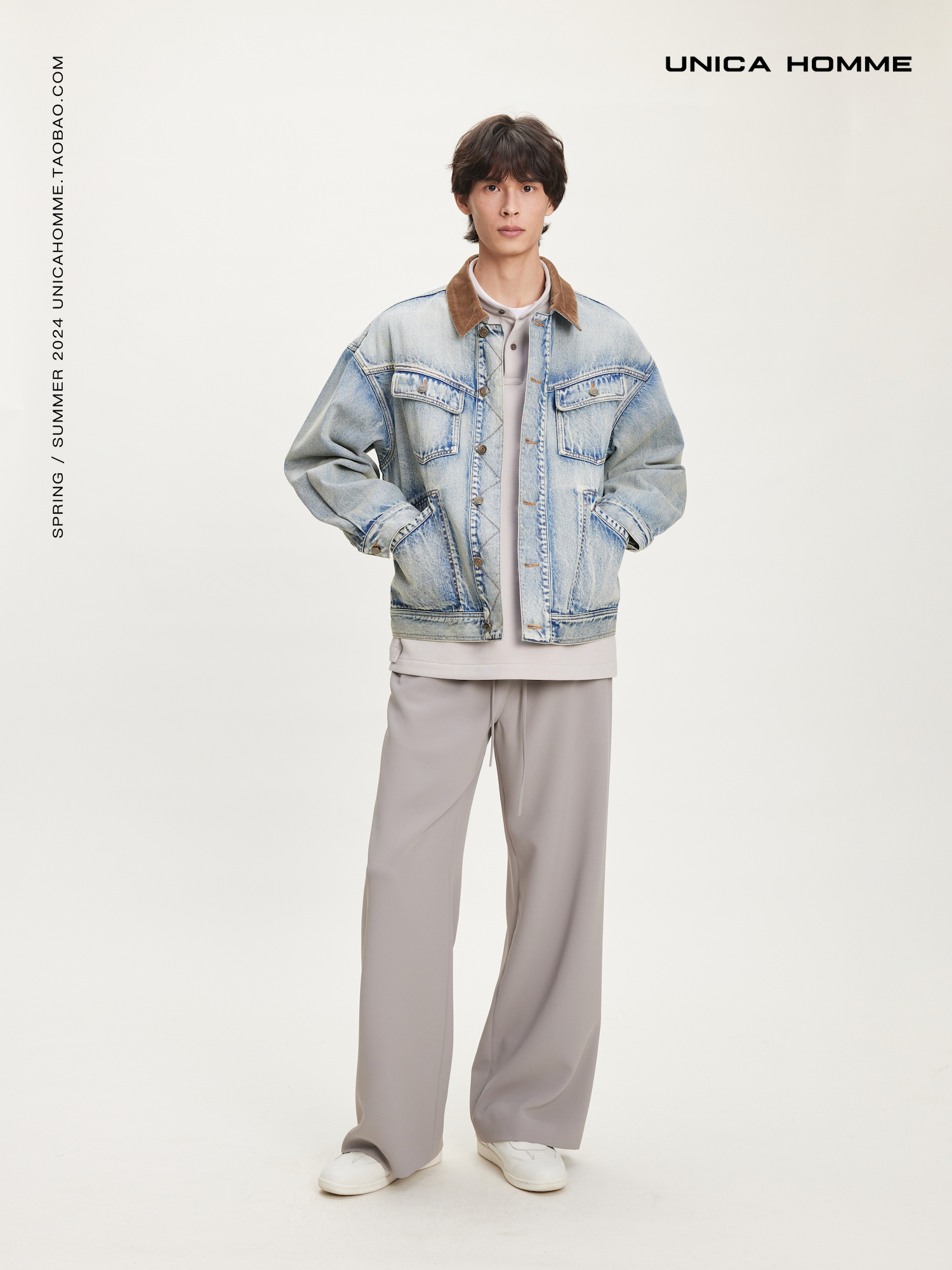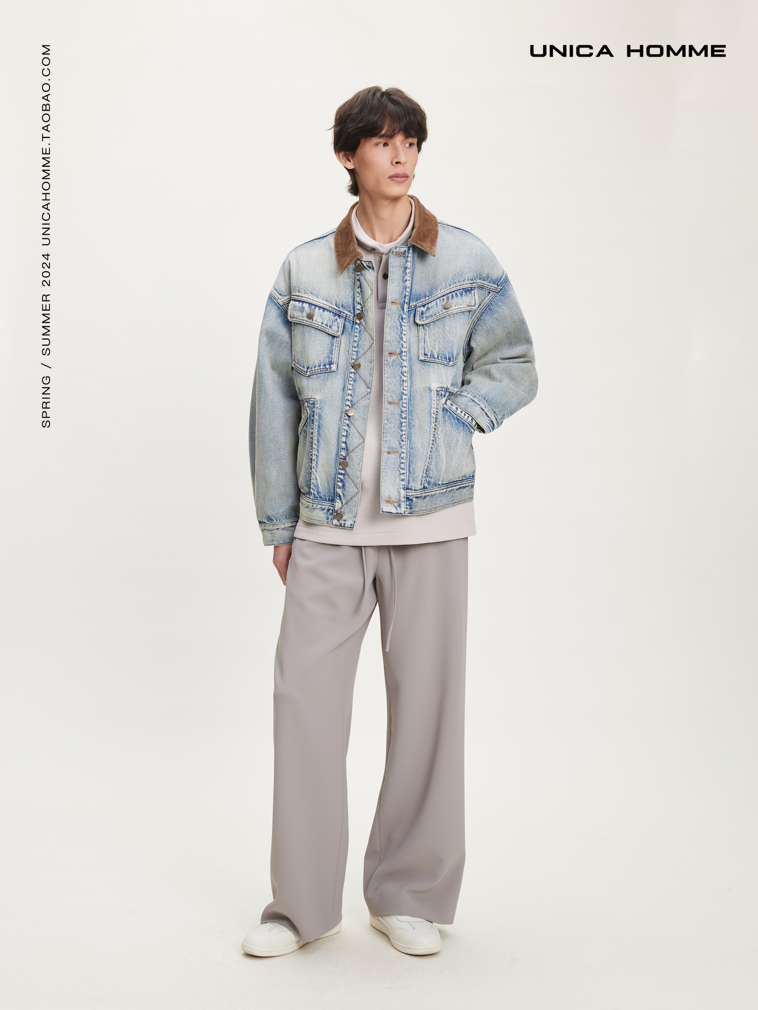 Unica Homme/Retro Storm Rider Denim Jacket Men's Trendy Brand Workwear