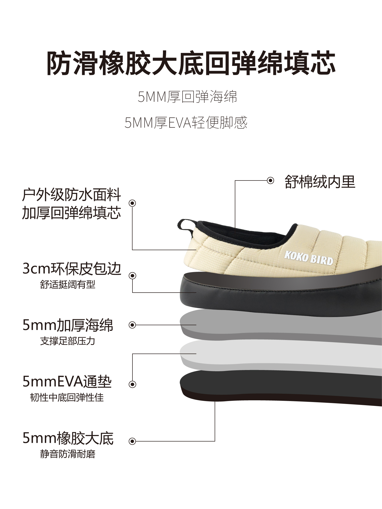 Japanese Koko Bird Men's and Women's Cotton Shoes, Couple Style, Winter Outdoor Wear, Non-Slip, Fleece-Lined, Home Loafers, Camping Shoes