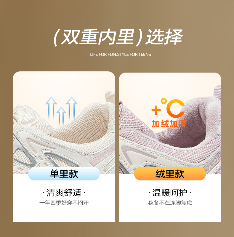 Camel Ugly-Cute Shoes 2025 Autumn New Women's Shoes Outdoor Hiking Shoes Mountaineering Shoes Fleece-Lined Sneakers Casual Shoes
