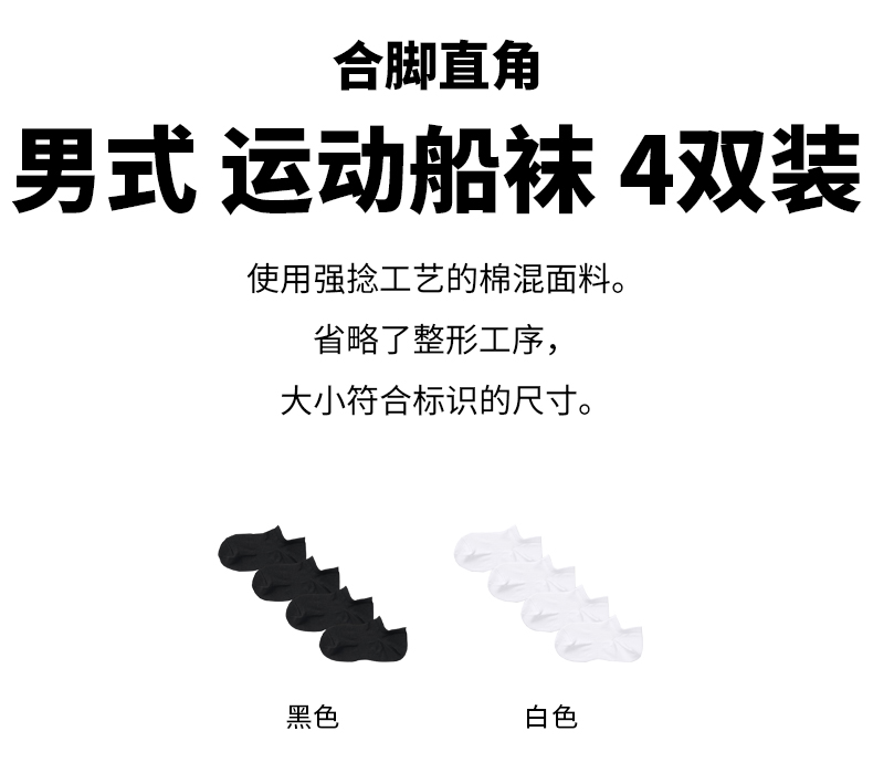 Muji Men's Fitted Right-Angle Sports Boat Socks 4-Pack Men's Invisible Short Socks