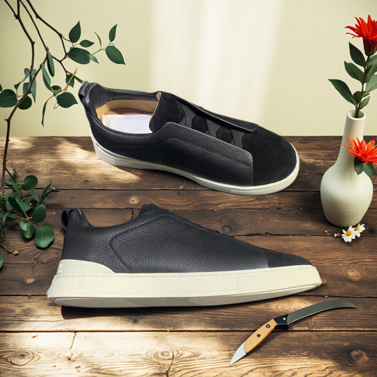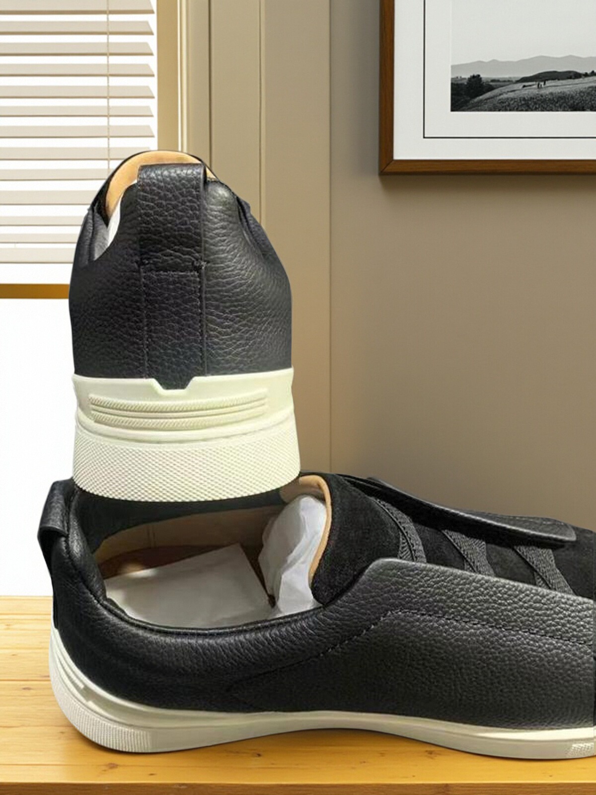 Z's Jinya Men's Shoes 2025 New Model Elastic Slip-On Luxury Breathable Genuine Leather Casual Sneakers