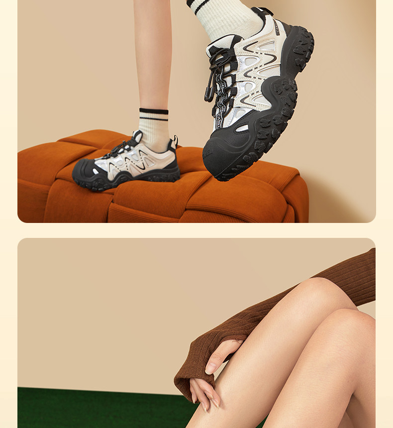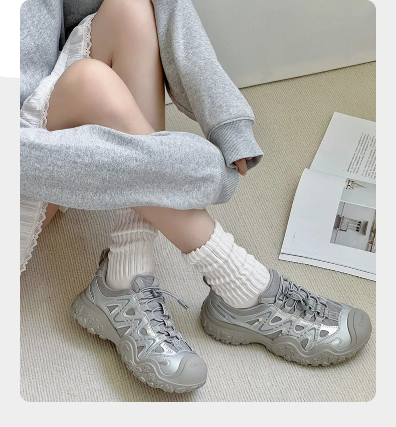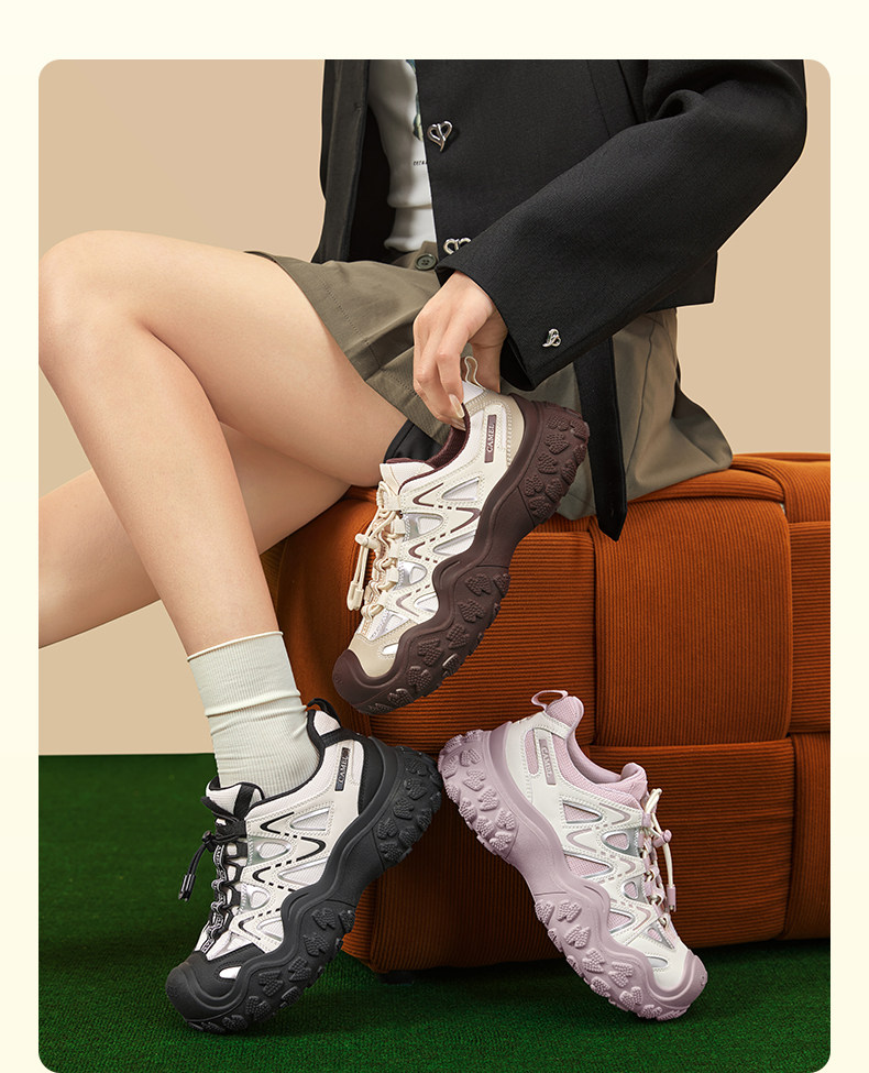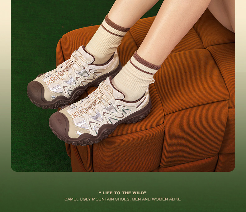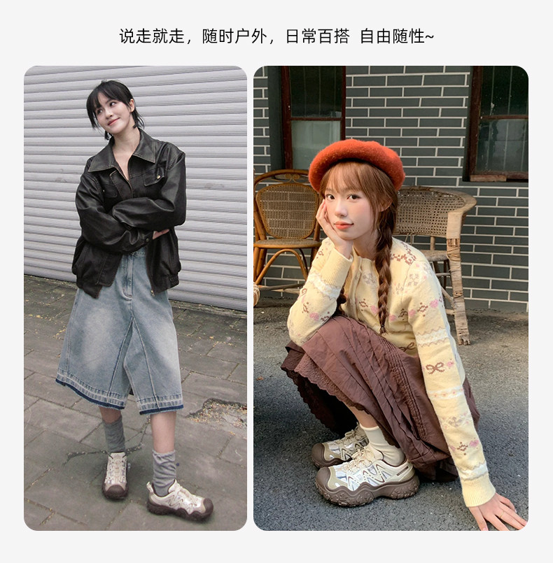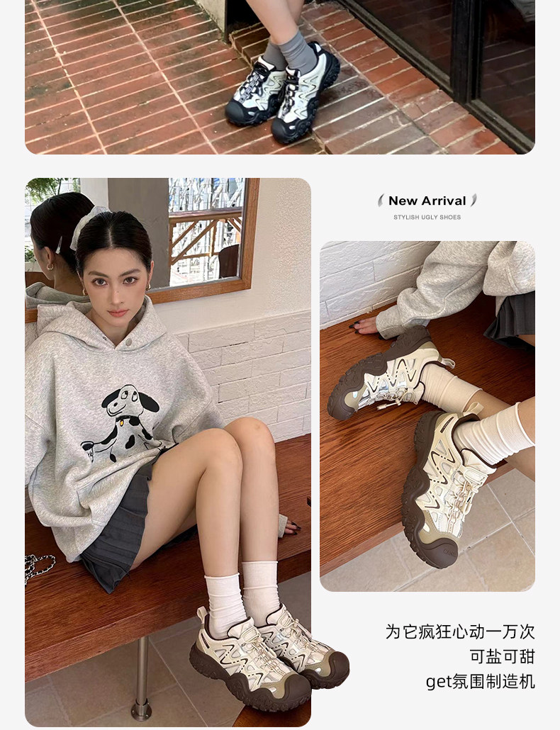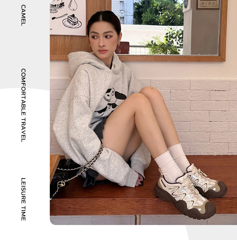 Camel Ugly-Cute Shoes for Women, 2025 Autumn New Sports Shoes, Outdoor Hiking and Mountaineering Shoes, Fleece-Lined Dad Shoes