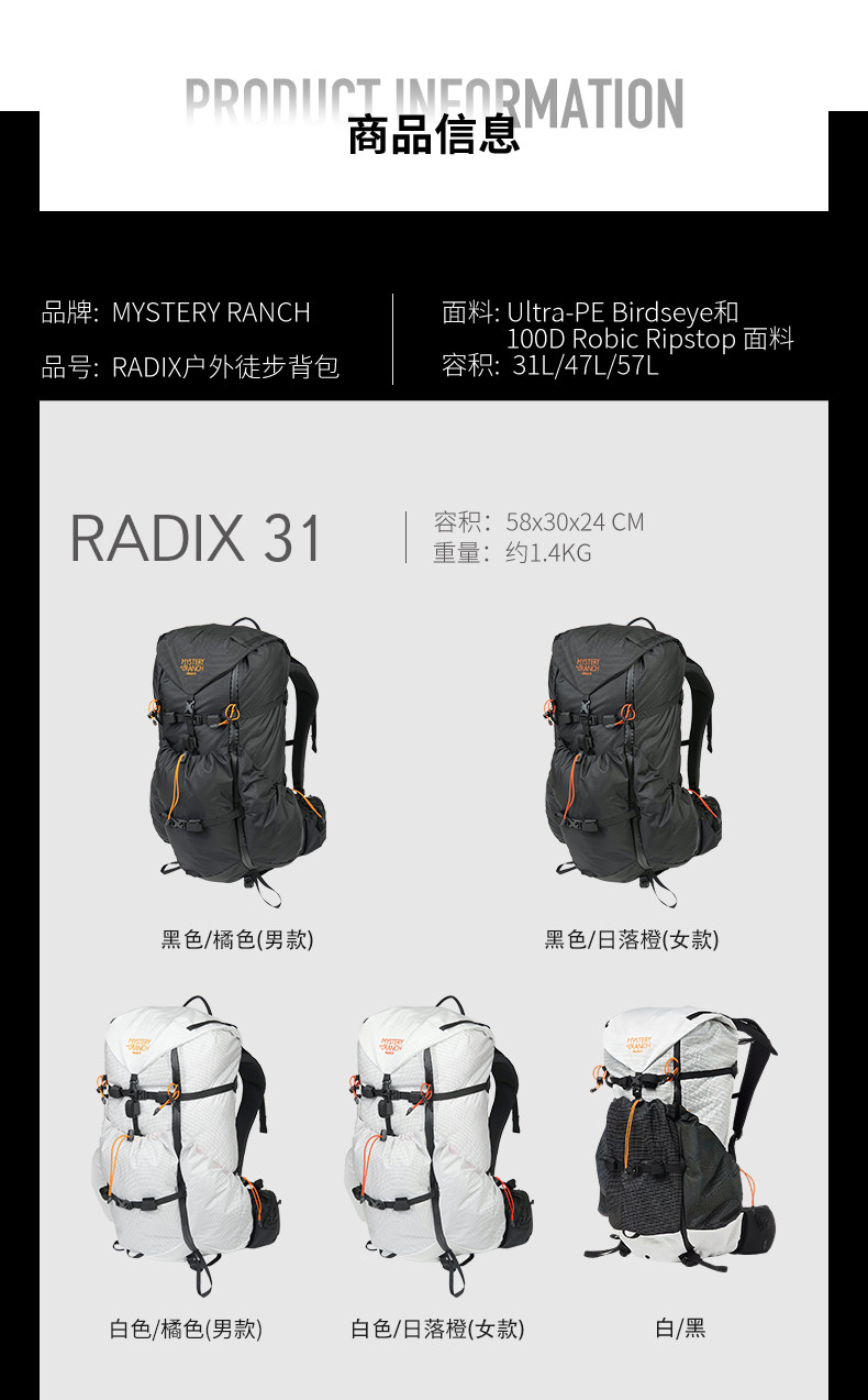 Mystery Ranch Radix Lightweight Outdoor Hiking Backpack Trekking Bag Double Shoulder Backpack