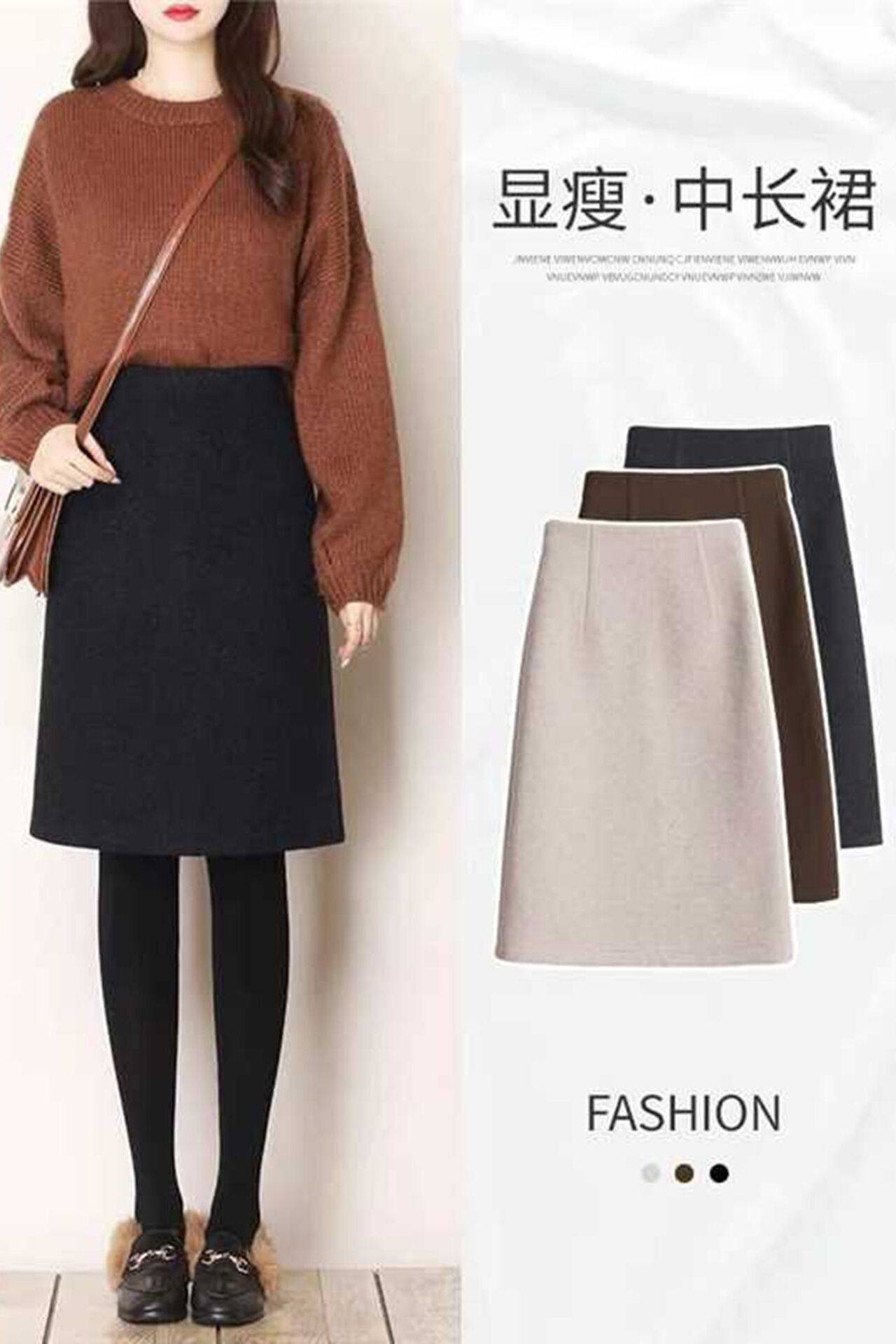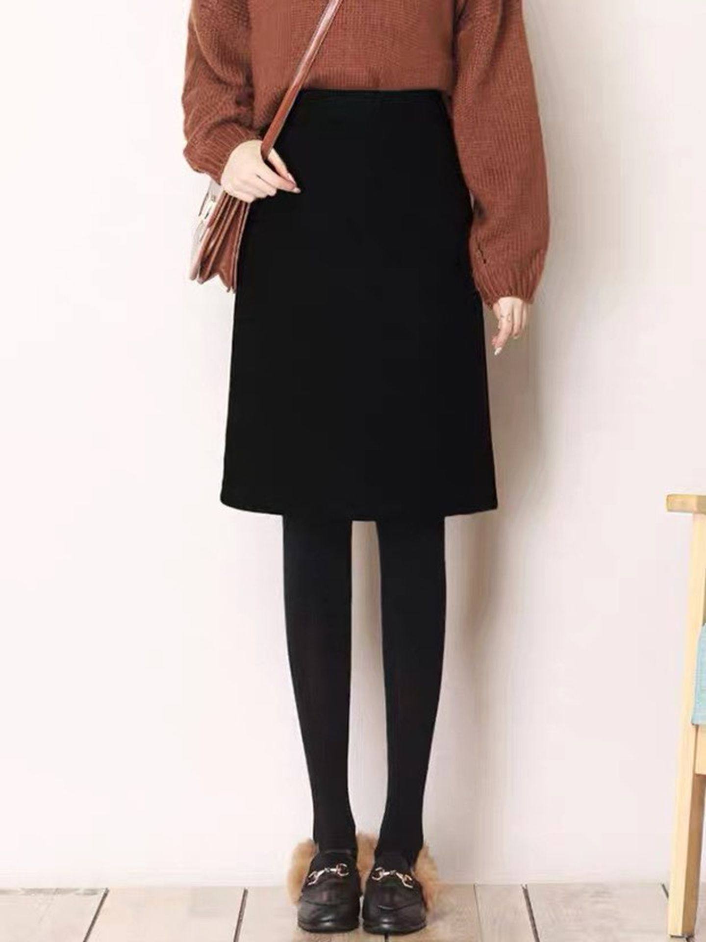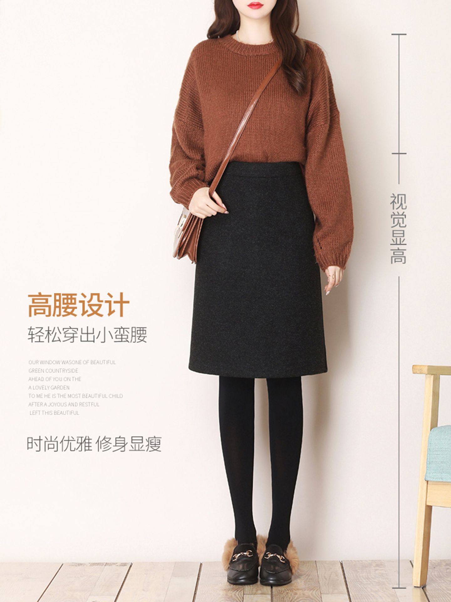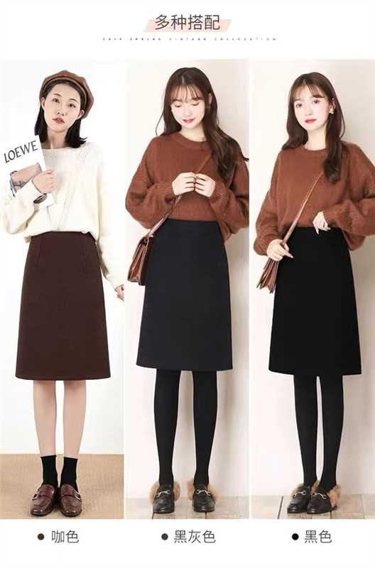 Woolen Straight Skirt, Autumn and Winter Simple High-Waisted Slimming A-Line Draped Anti-Wrinkle Versatile Mid-Length Skirt with Back Slit