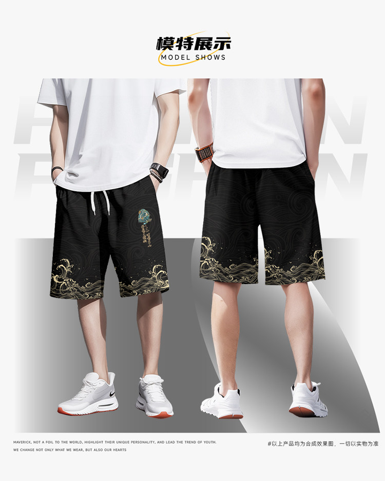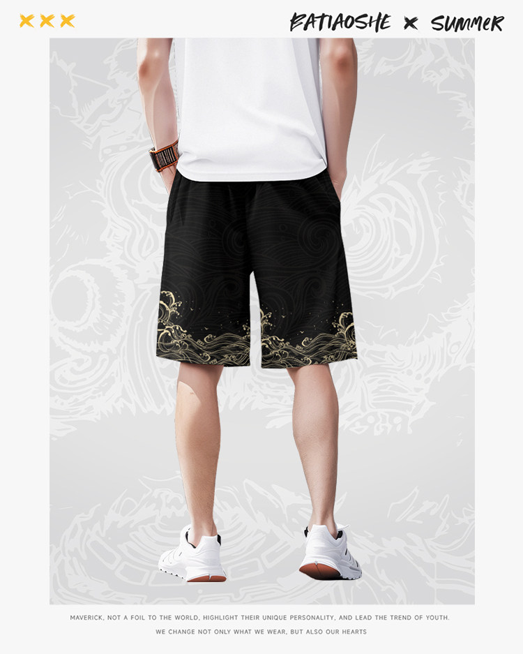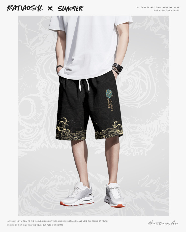 2025 Summer New Chinese Style Casual Shorts Men's Chinese-Inspired Sports Pants Loose Thin Beach Shorts