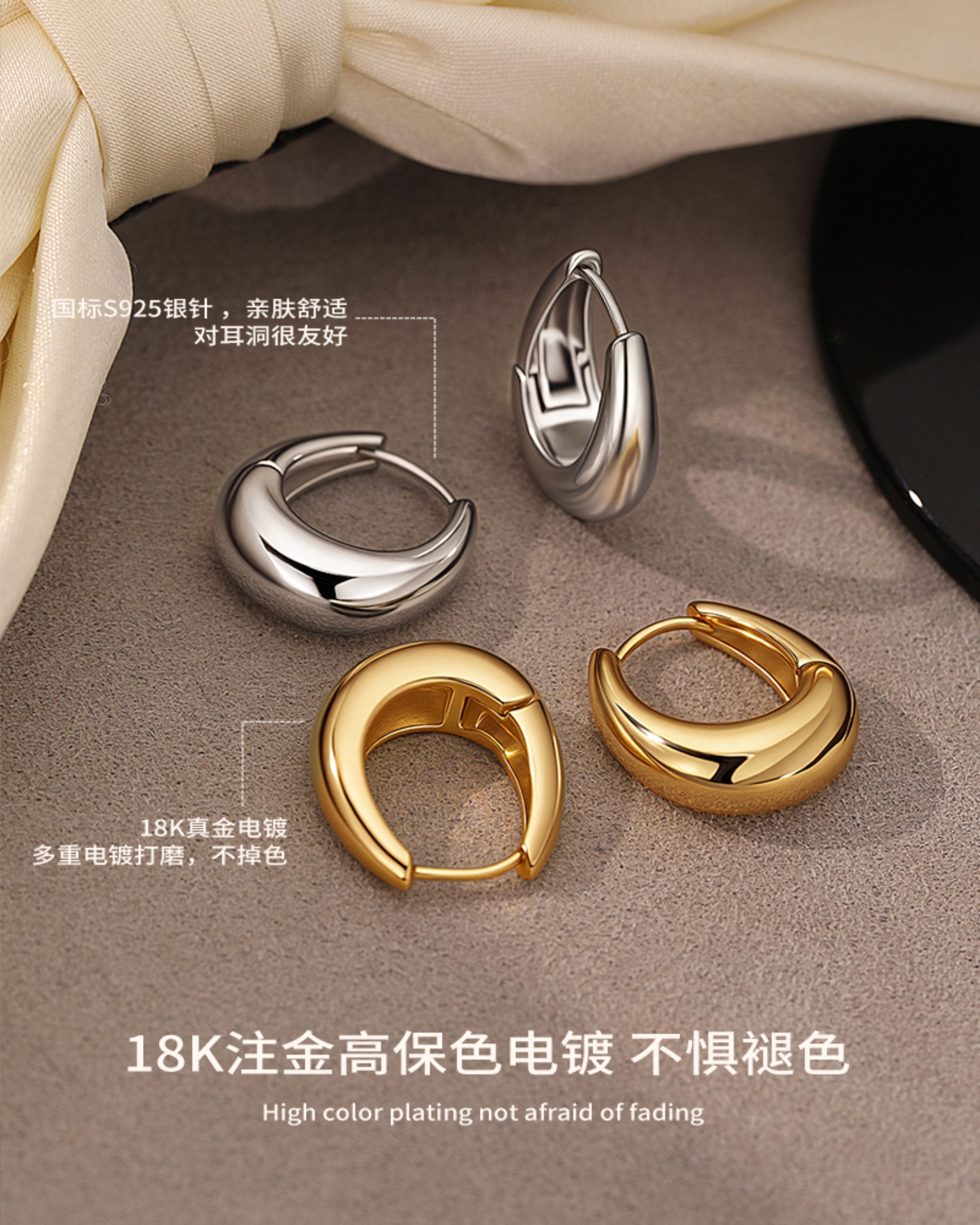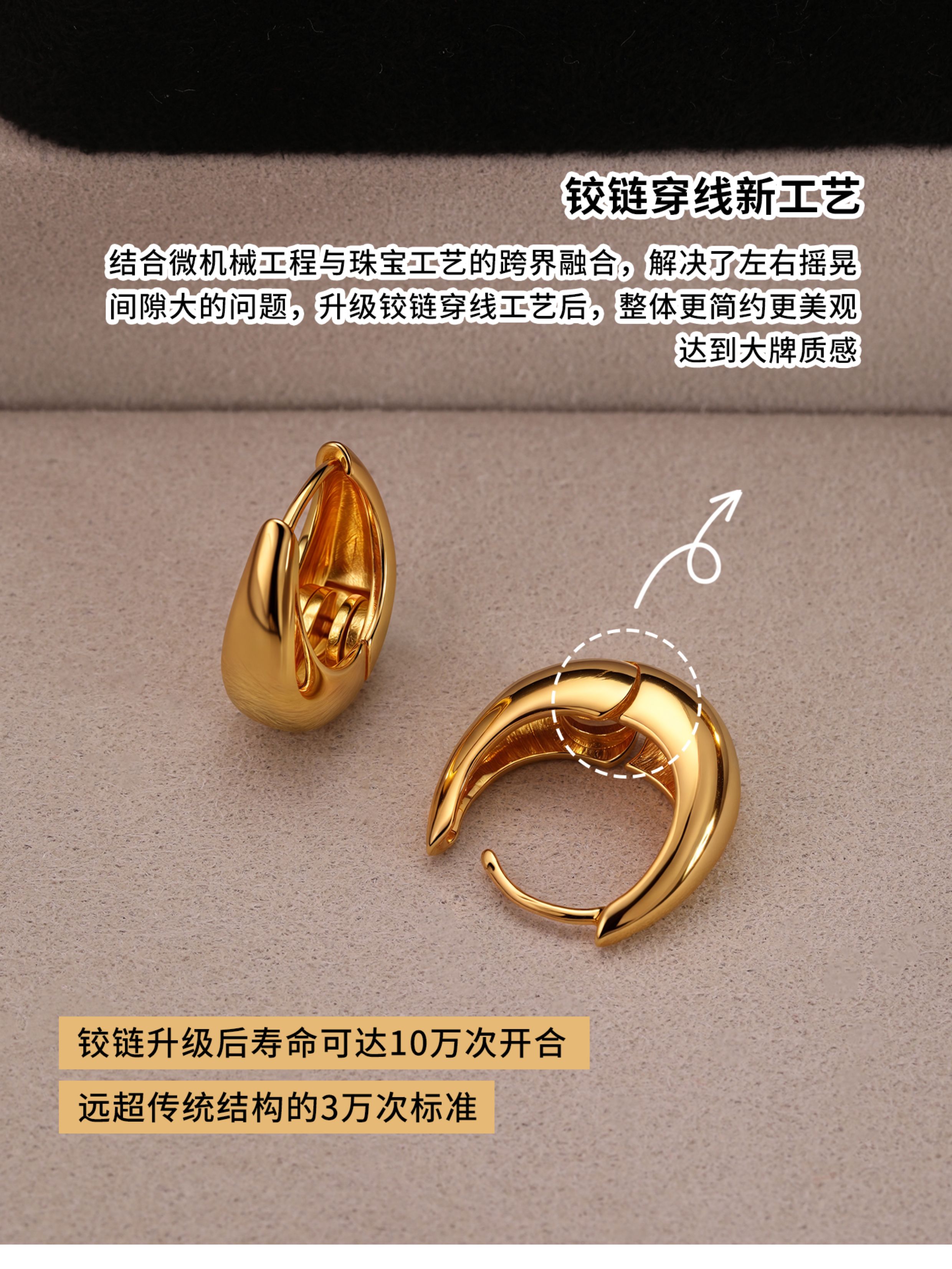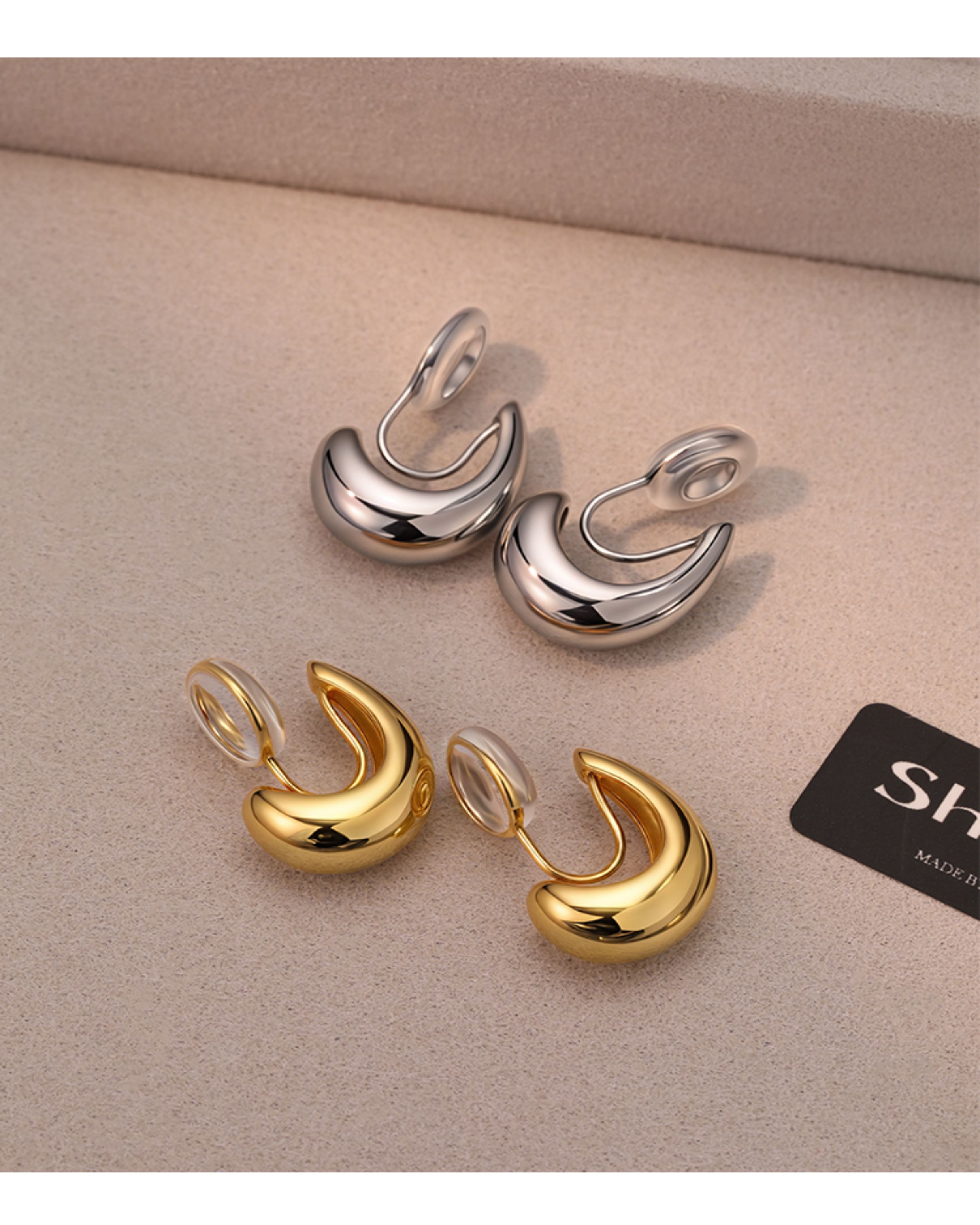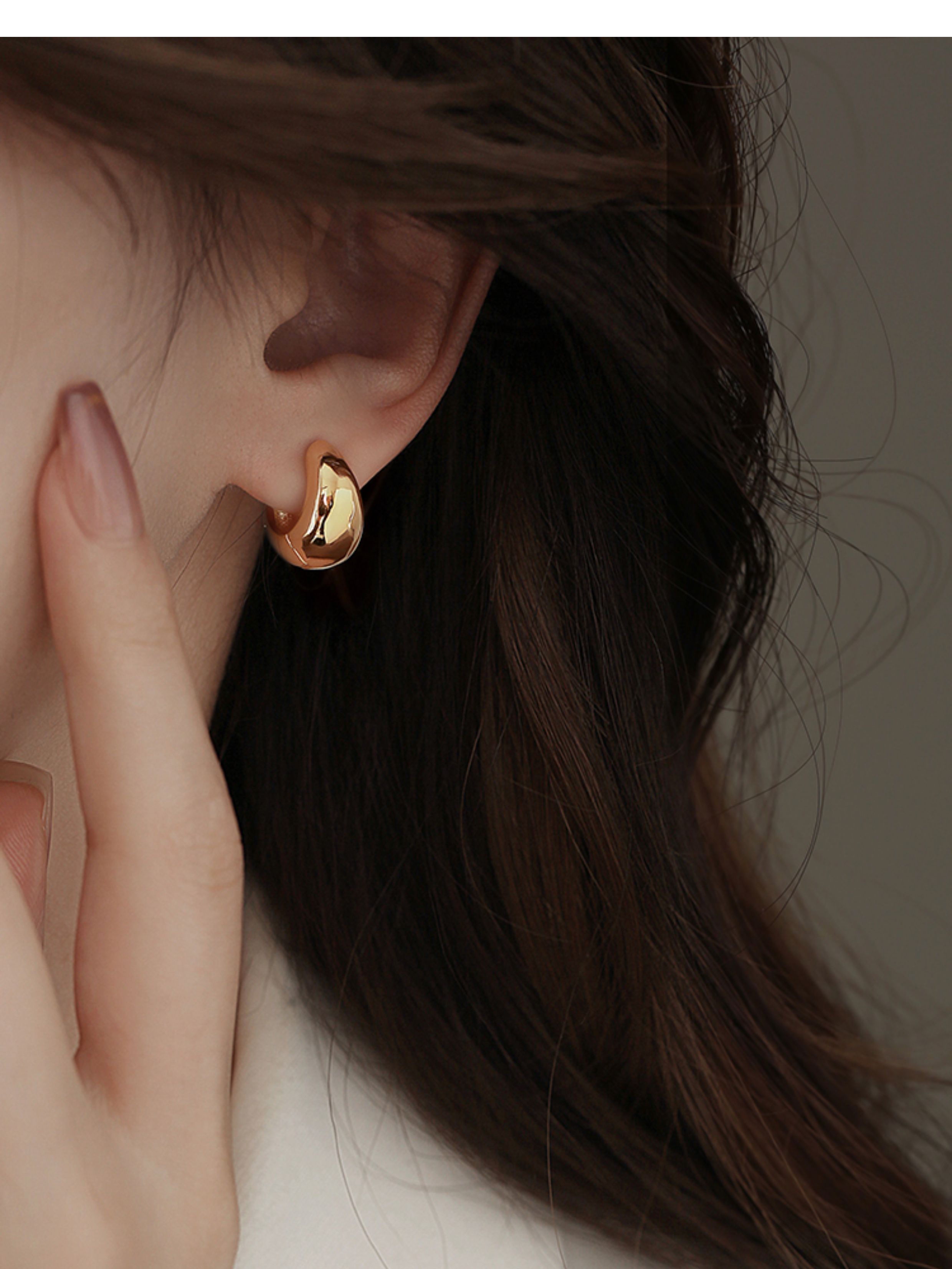Water Drop Circle Gold Earrings 2025 New Popular High-End Light Luxury Earrings for Women Metal Earrings Ear Hoops Ear Clips