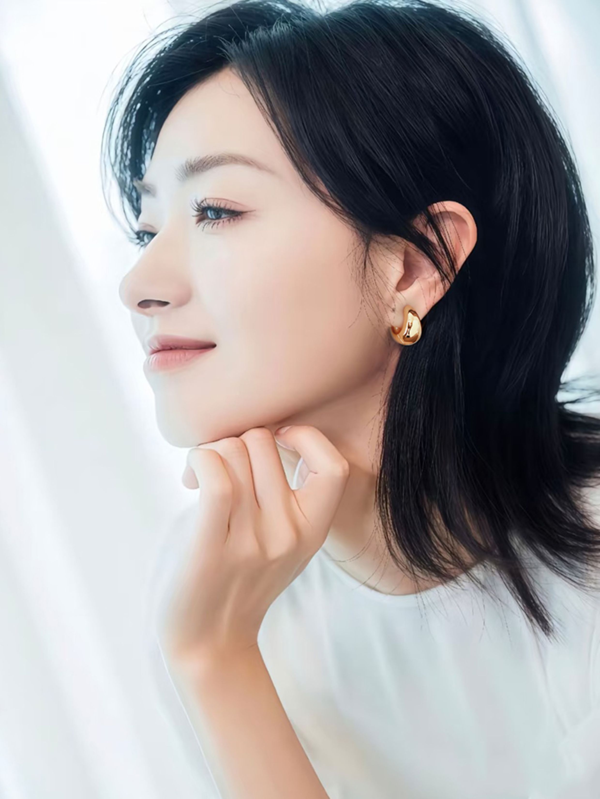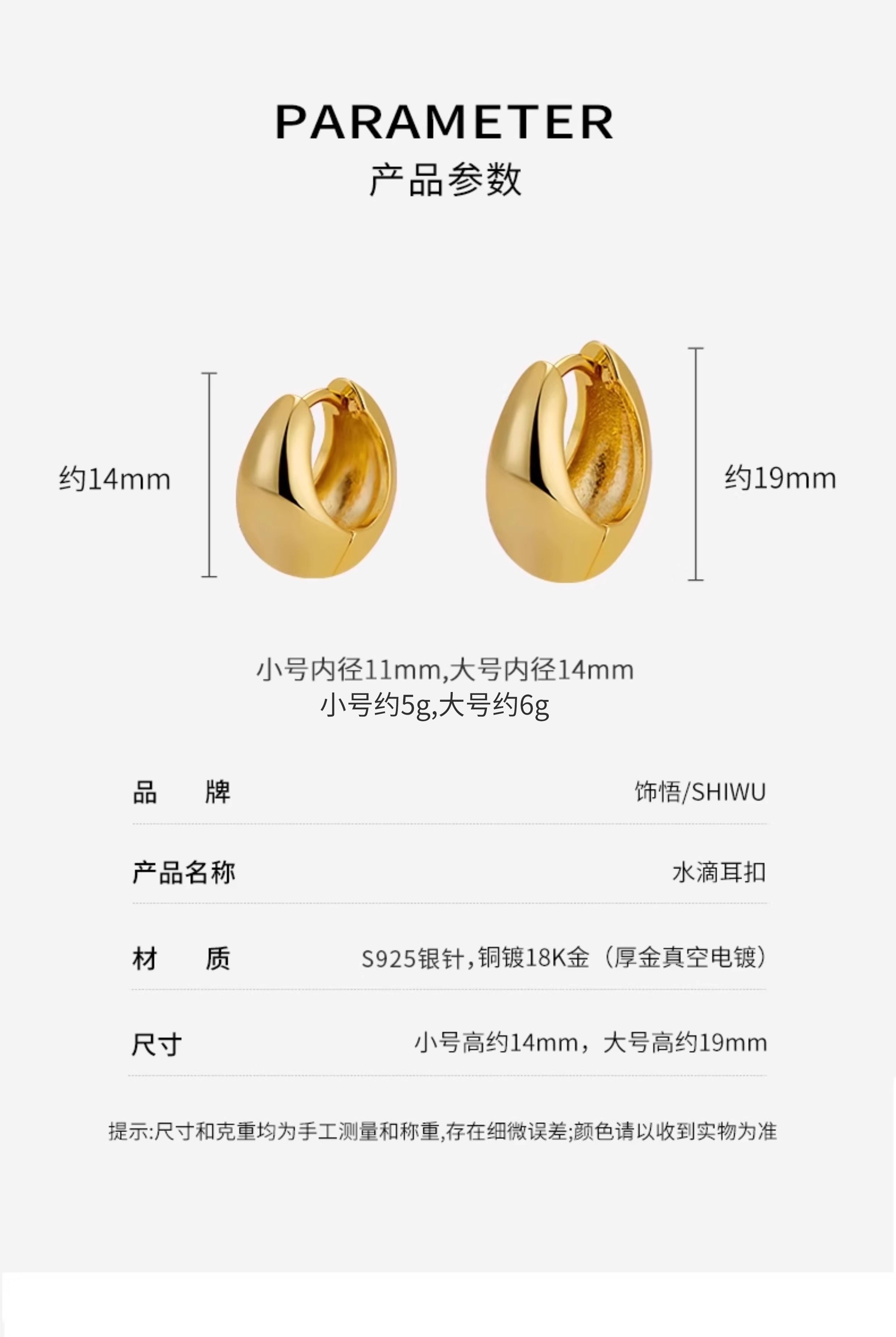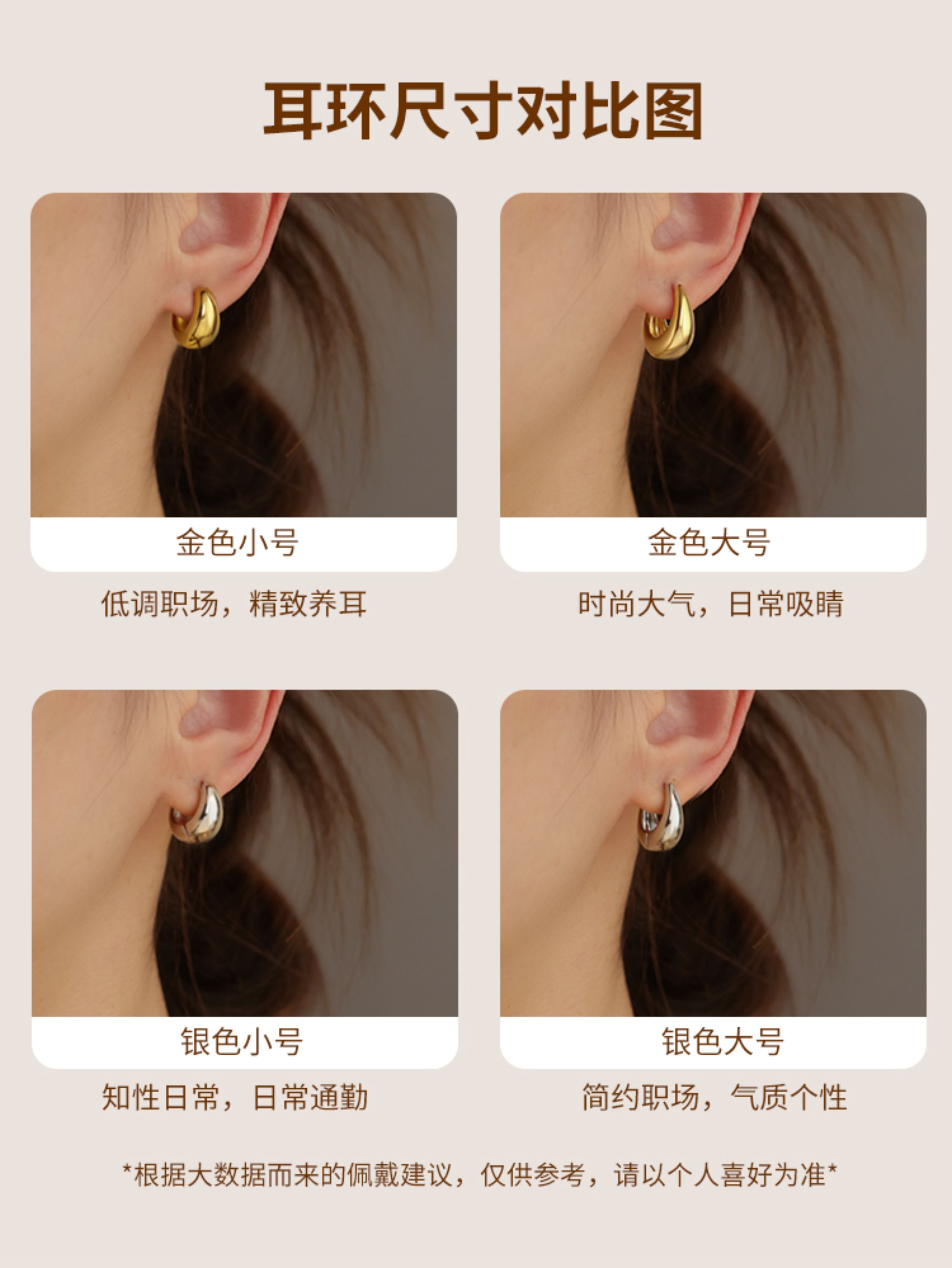 Water Drop Circle Gold Earrings 2025 New Popular High-End Light Luxury Earrings for Women Metal Earrings Ear Hoops Ear Clips