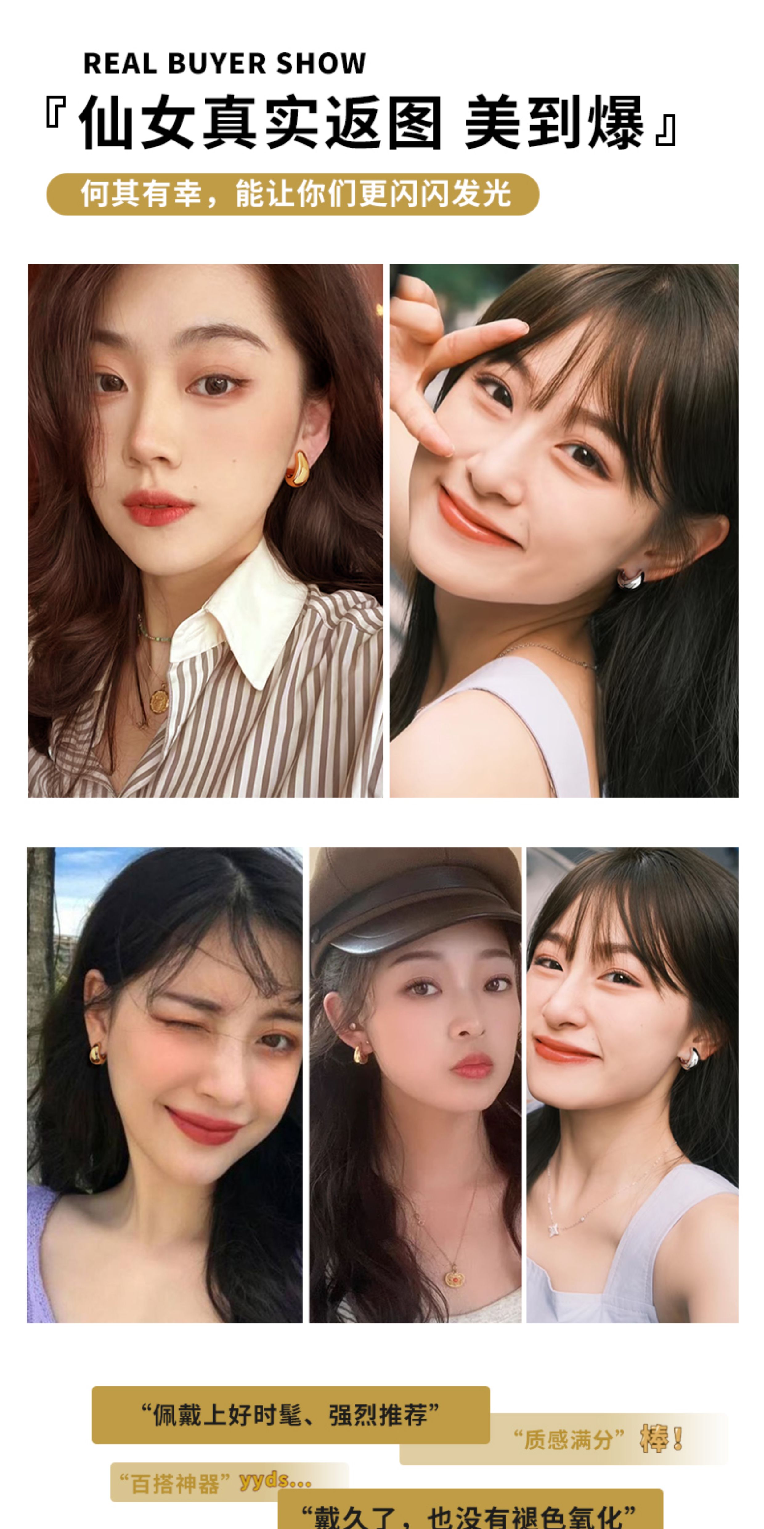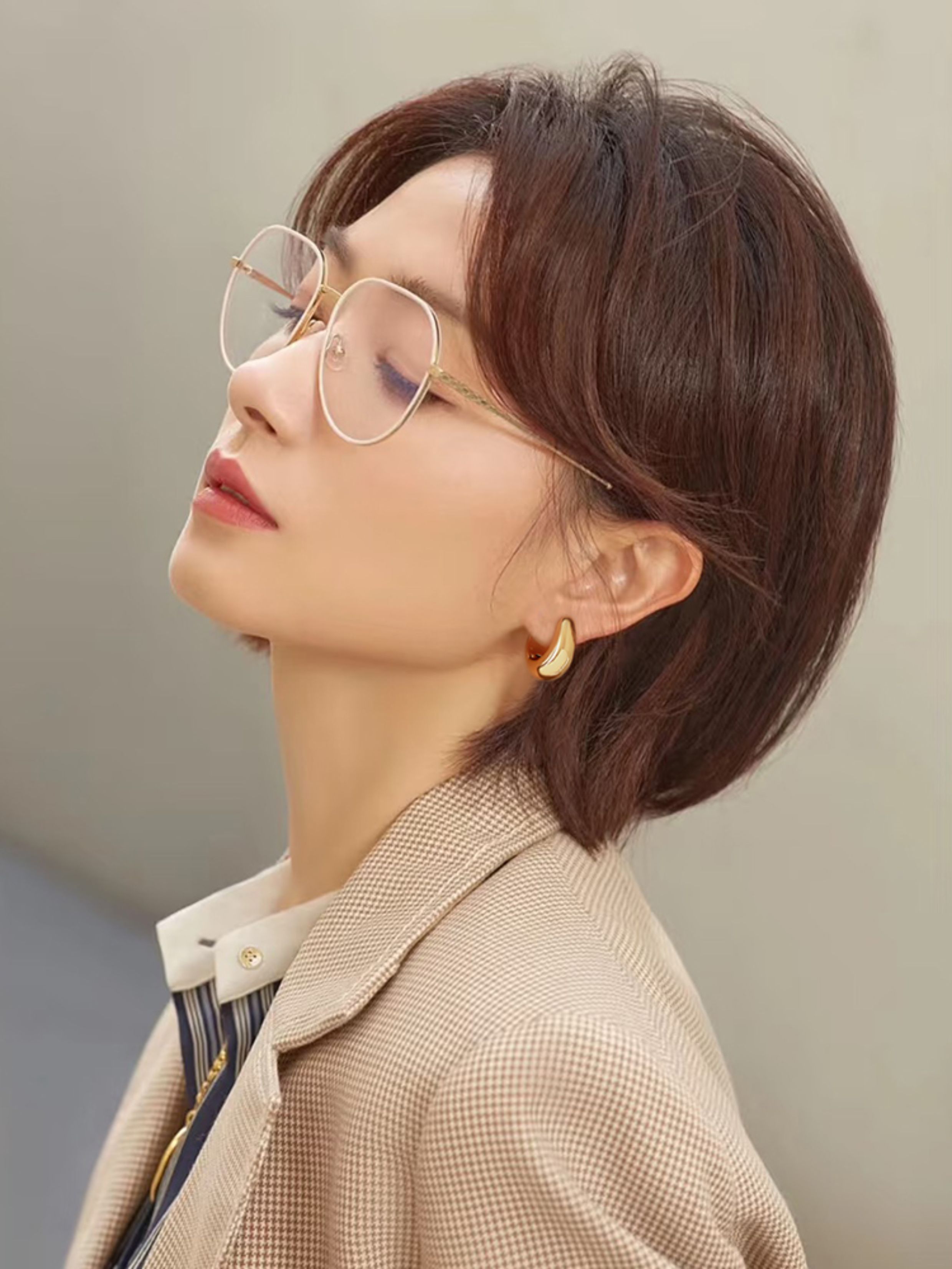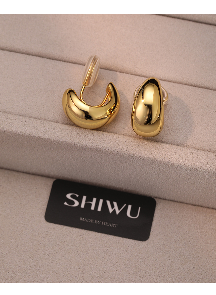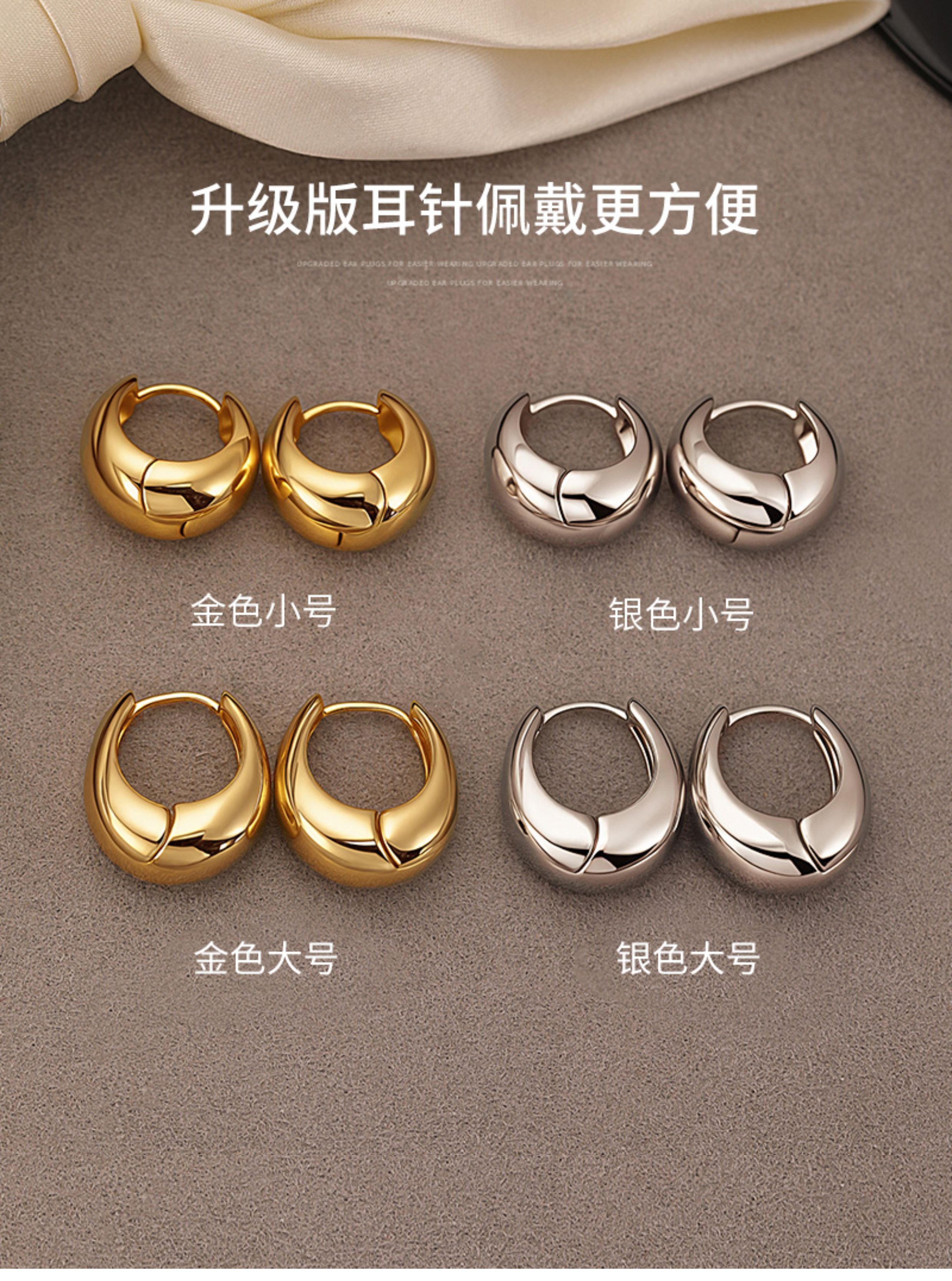 Water Drop Circle Gold Earrings 2025 New Popular High-End Light Luxury Earrings for Women Metal Earrings Ear Hoops Ear Clips