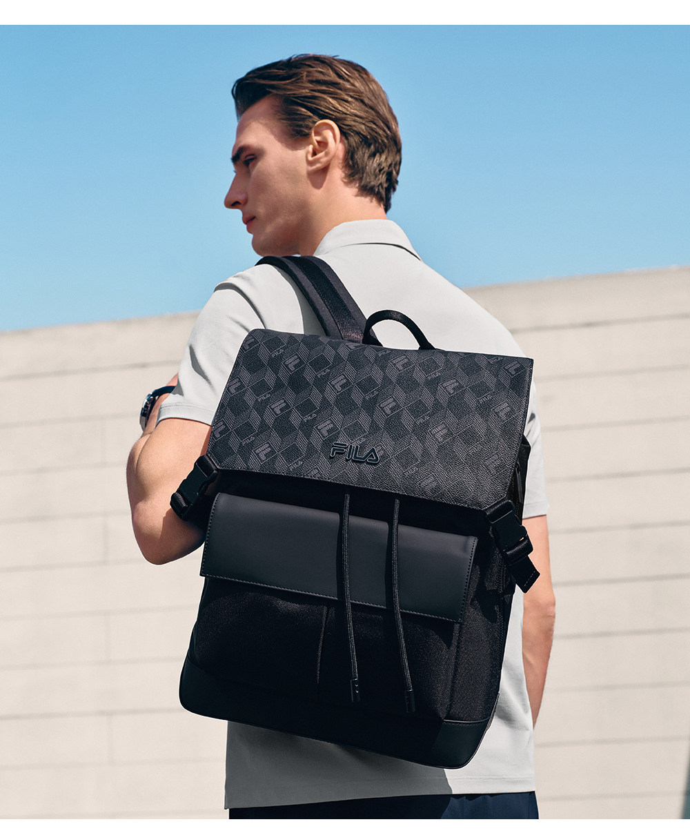 Black Warrior | Fila Men's Backpack Business Commuter Backpack Presbyopic Pattern School Bag Large Capacity Men's Computer Bag