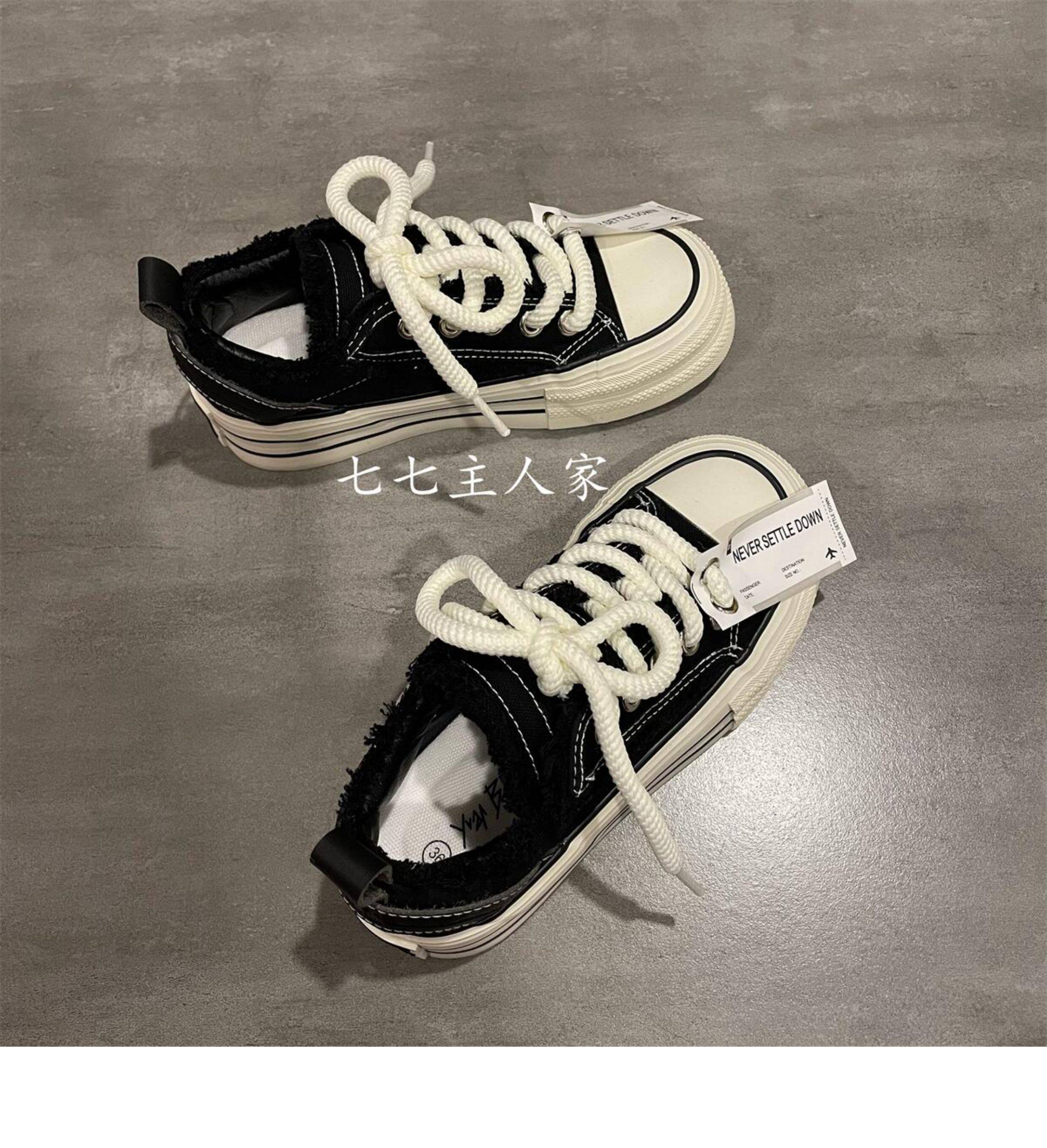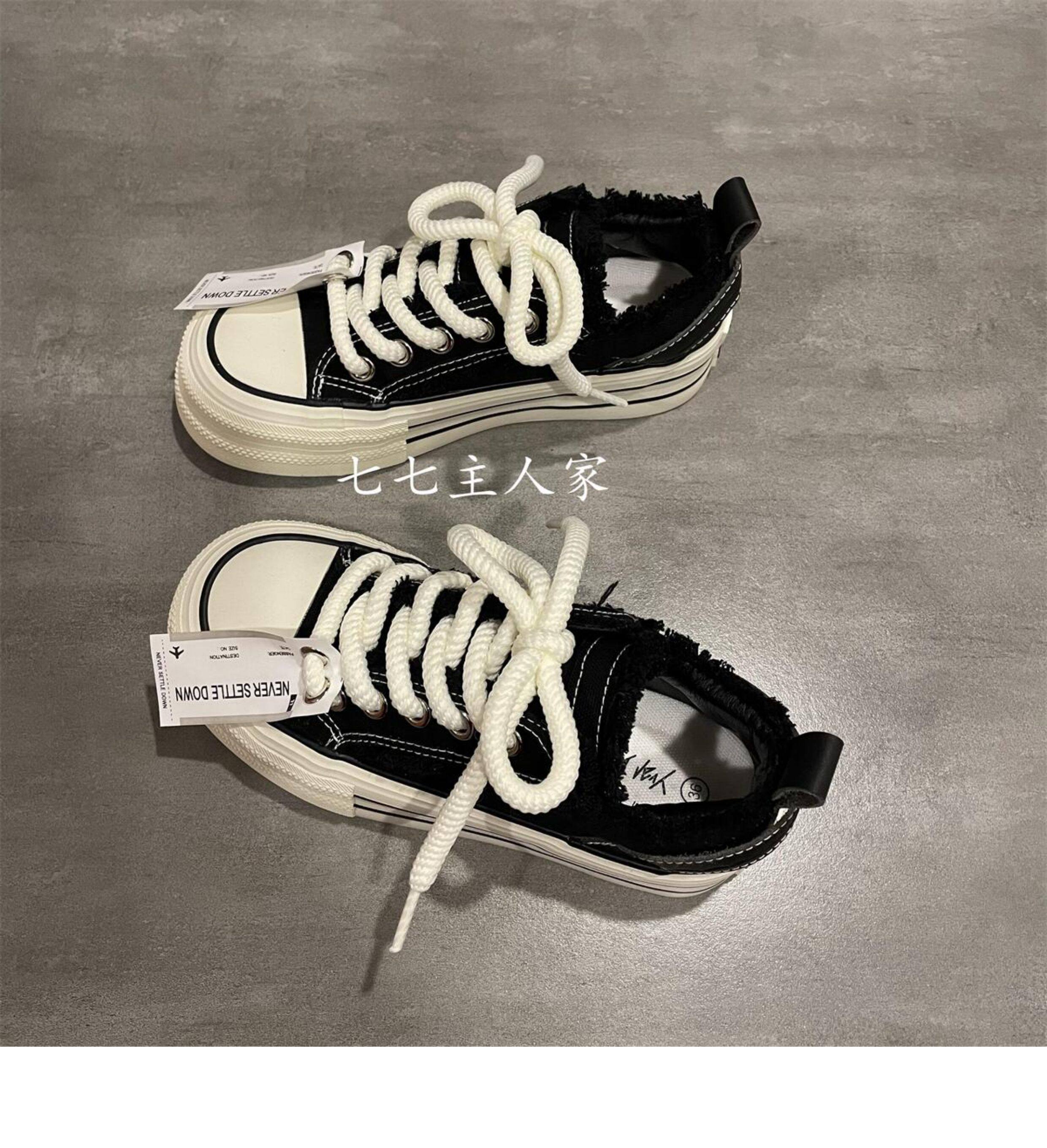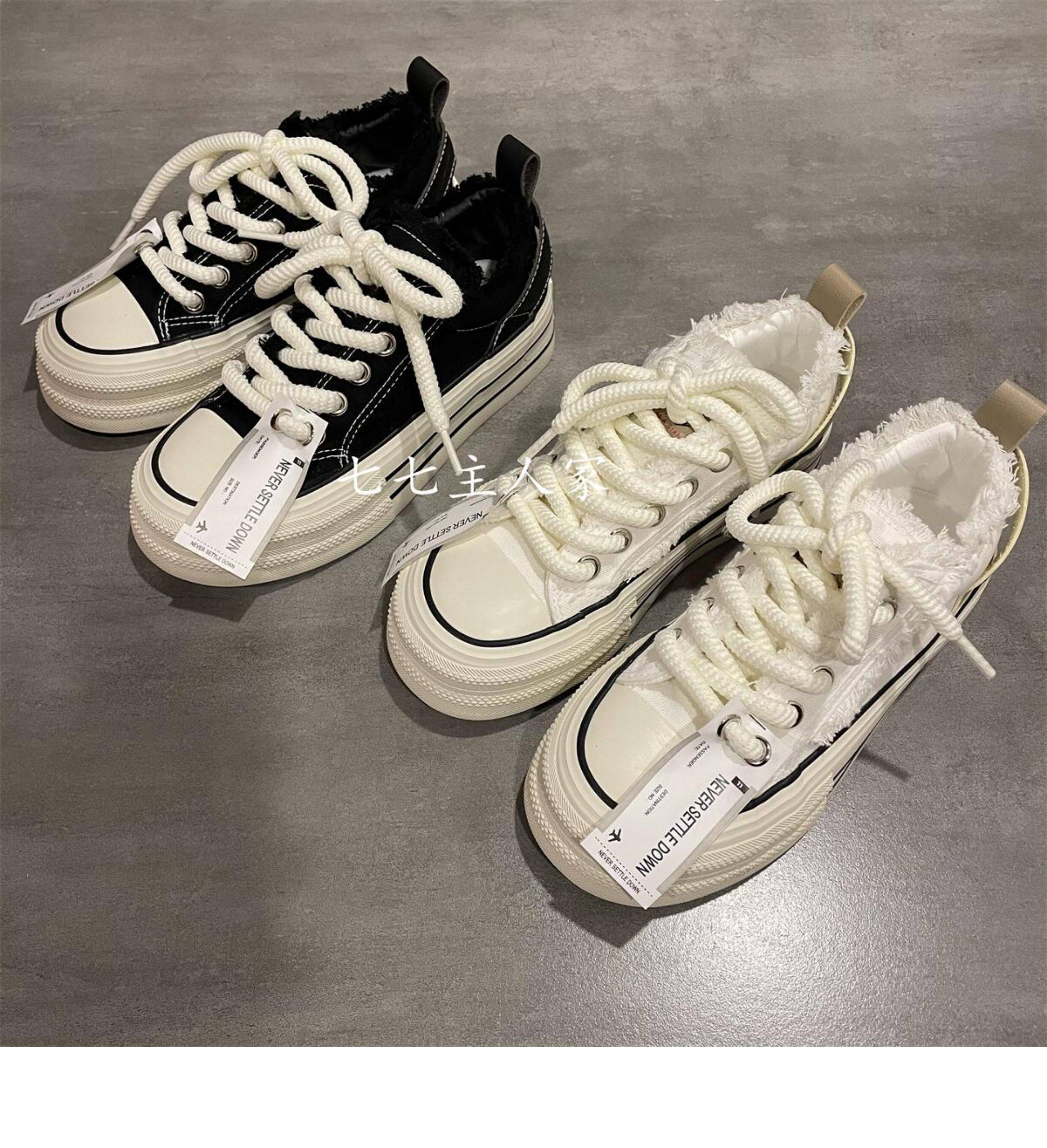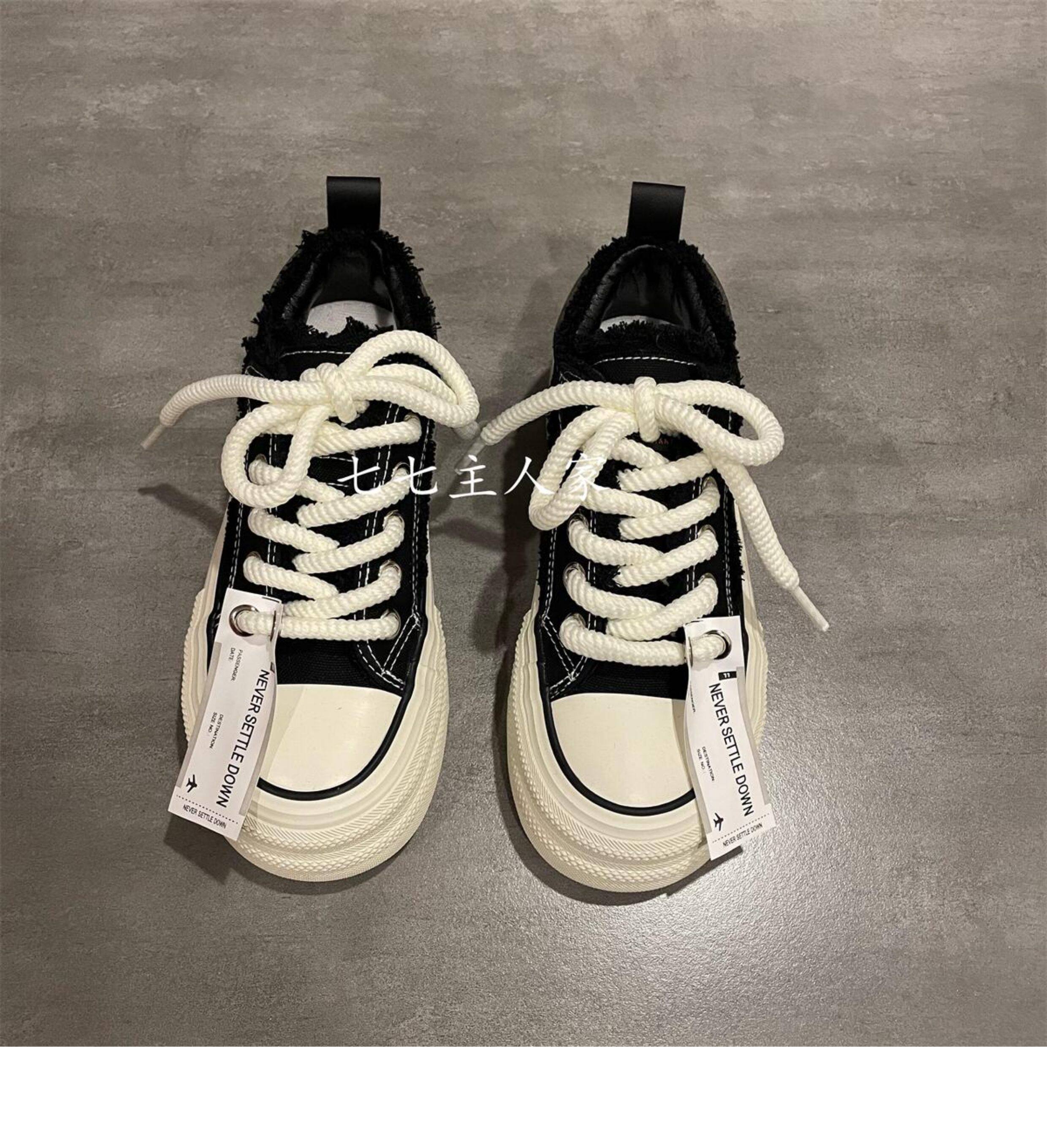 Qiqi Master's Home Black Height-Increasing Spring Canvas Shoes for Women 2024 Trendy Popular Versatile Women's Sneakers