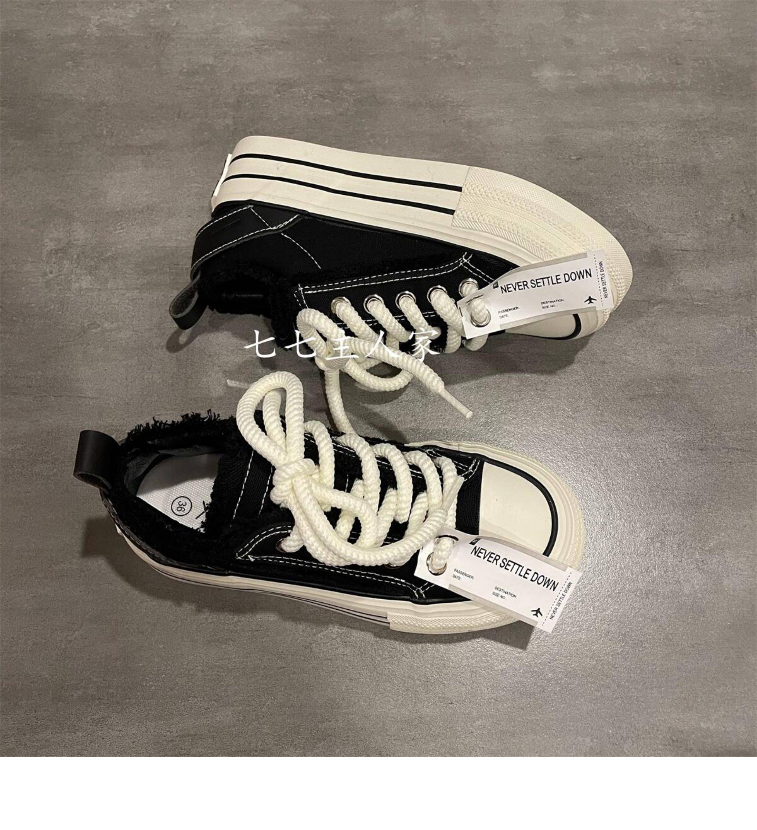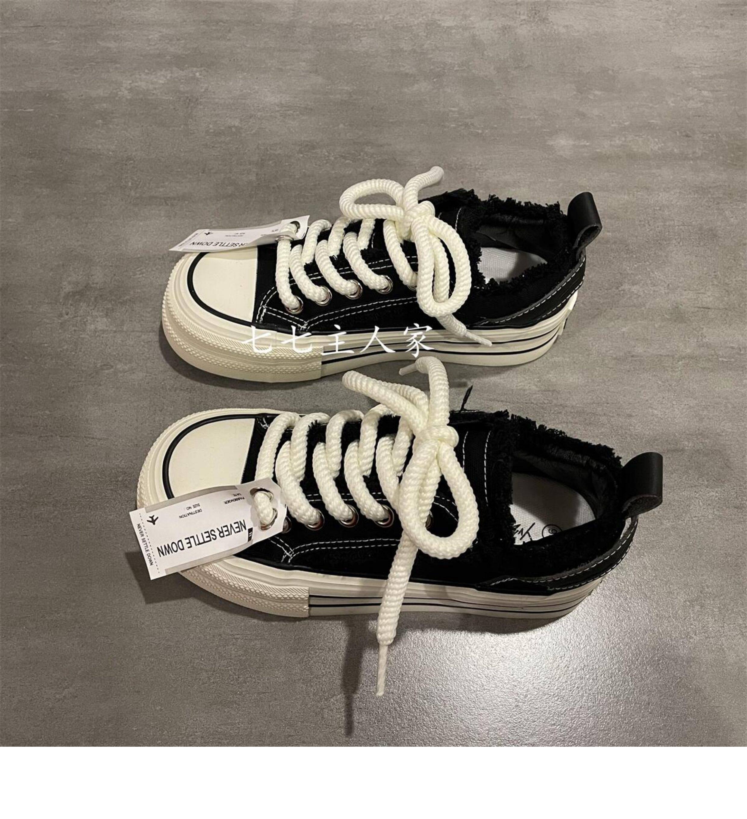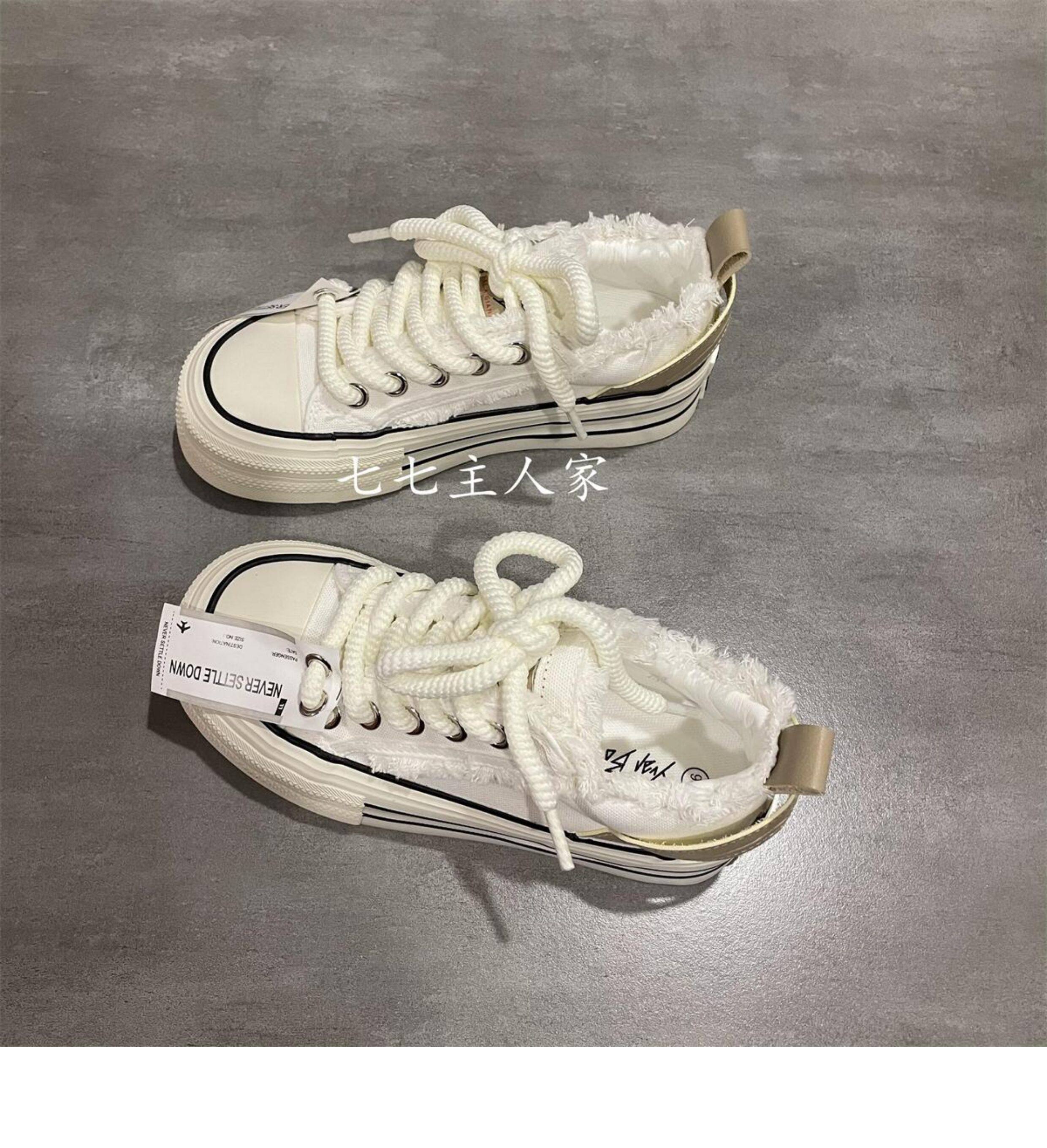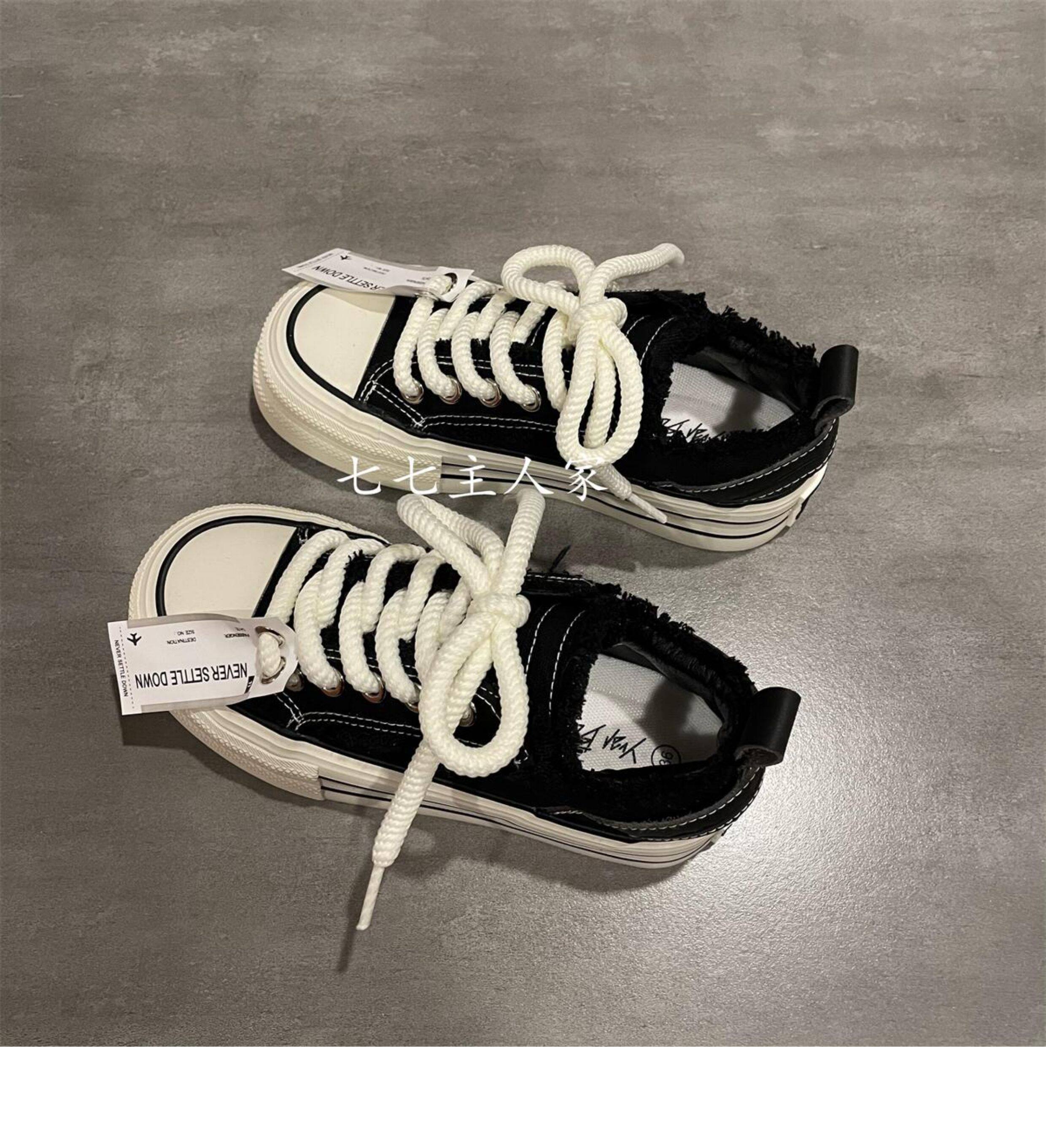 Qiqi Master's Home Black Height-Increasing Spring Canvas Shoes for Women 2024 Trendy Popular Versatile Women's Sneakers