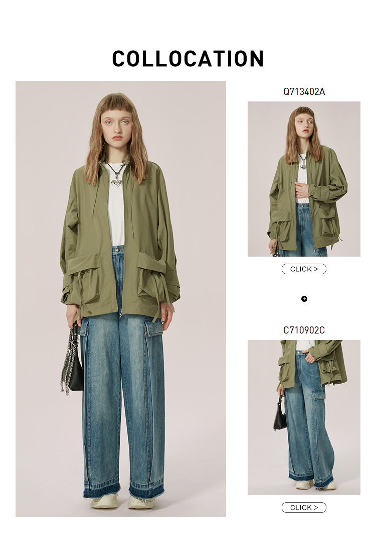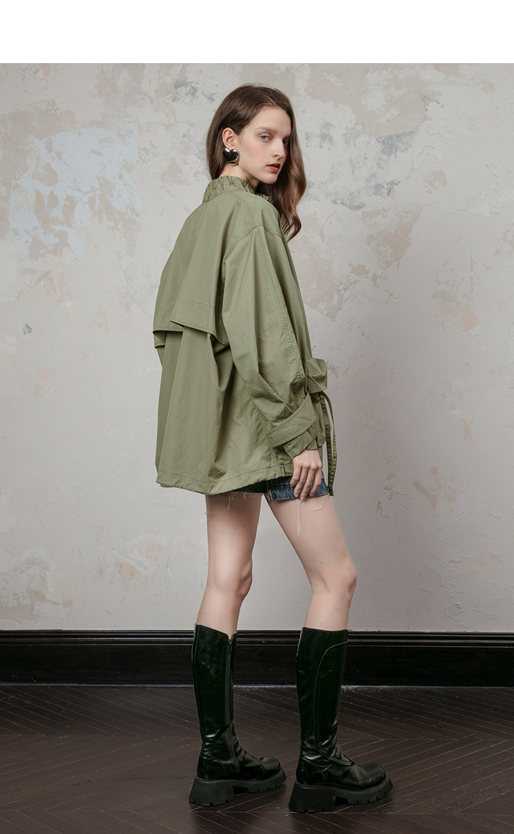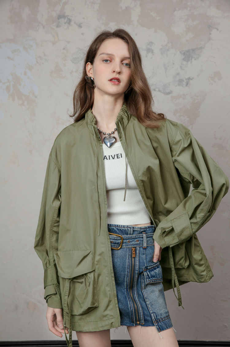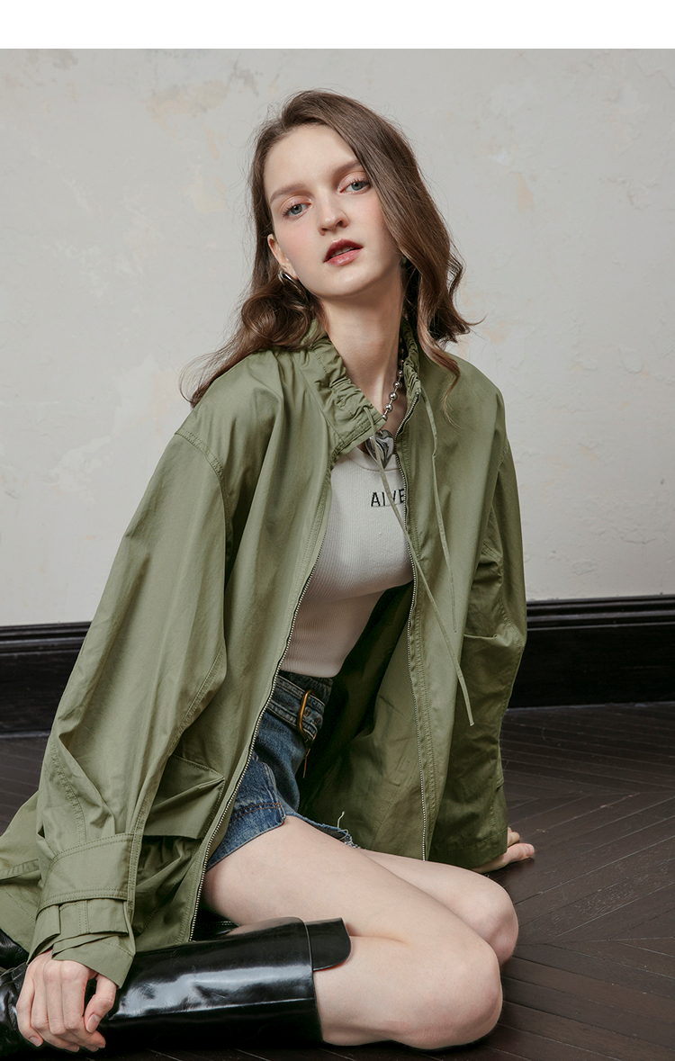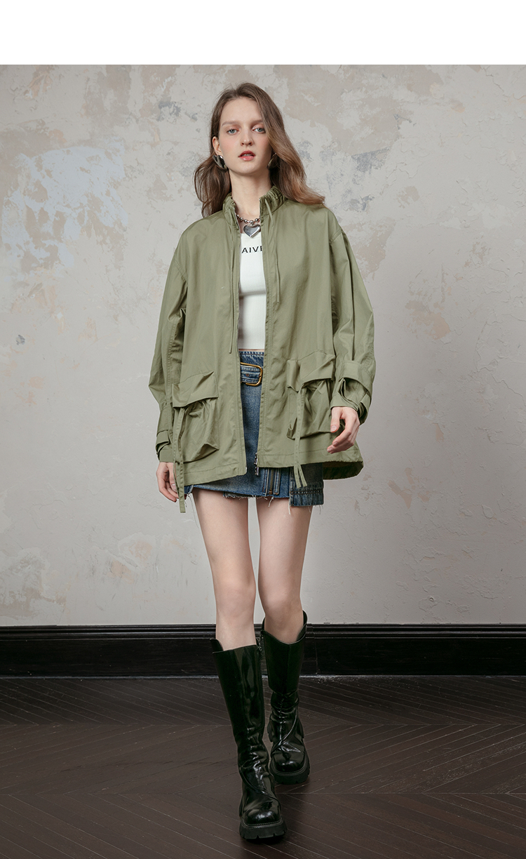 Aivei Xinhua Aiwei Celebrity Style Autumn Casual Retro Workwear Army Green Thin Windbreaker Q713402A
