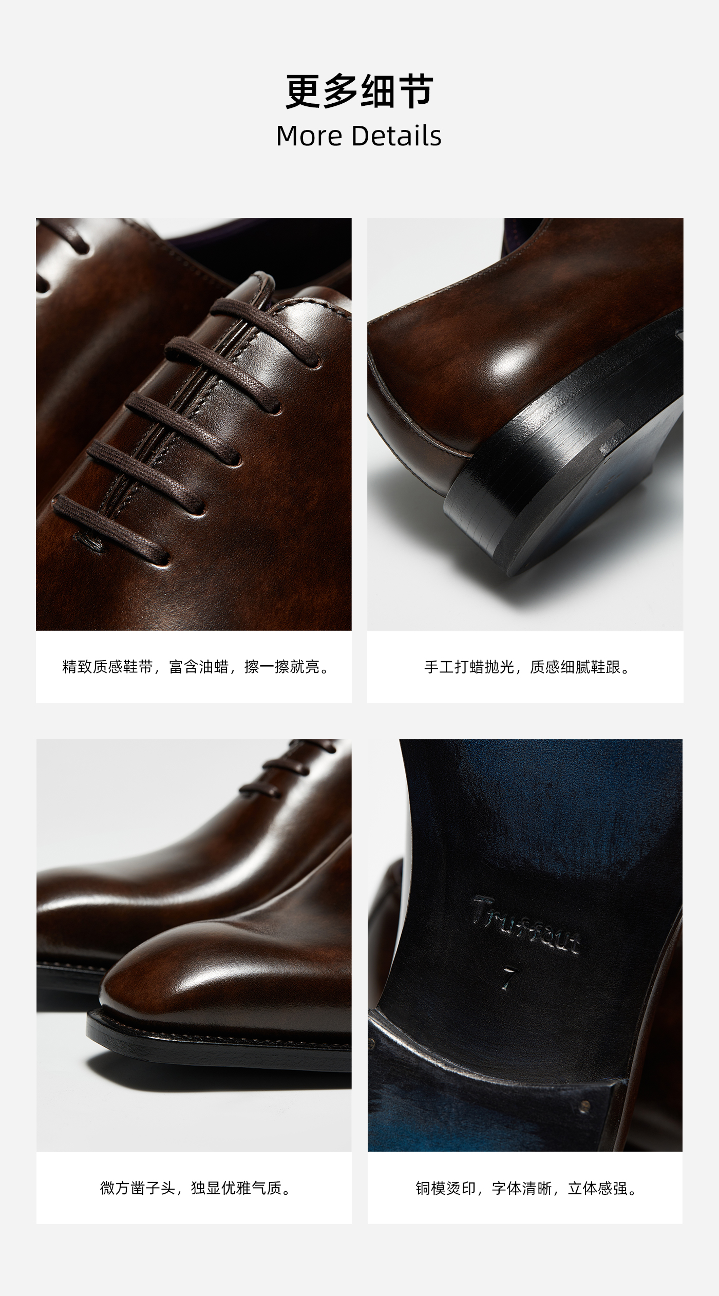 Truffaut Goodyear Men's Shoes Business Formal Leather Shoes Men's Museum Leather British Retro One-Piece Oxford Shoes